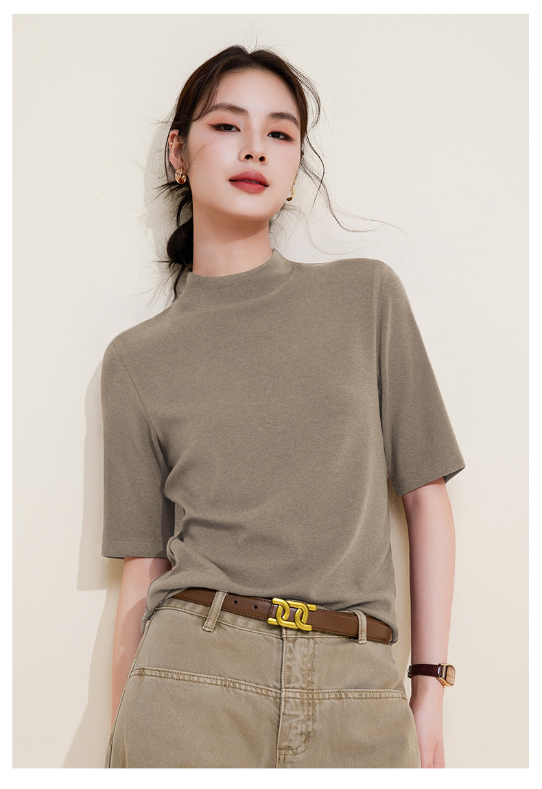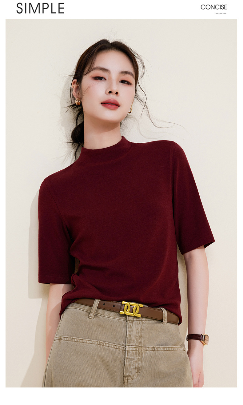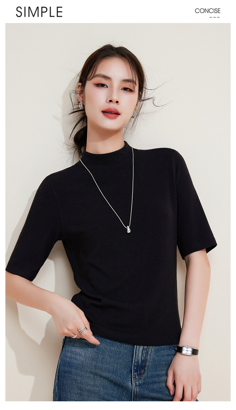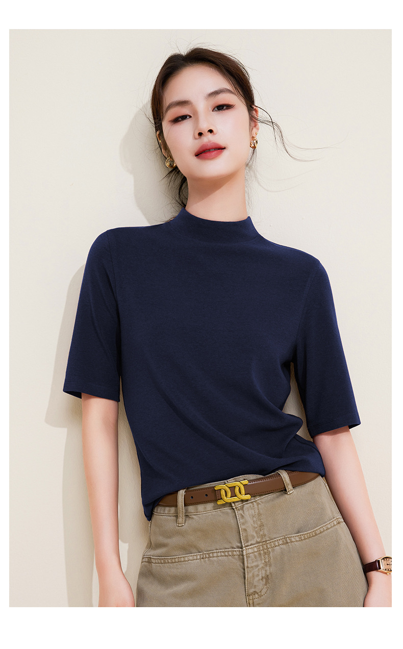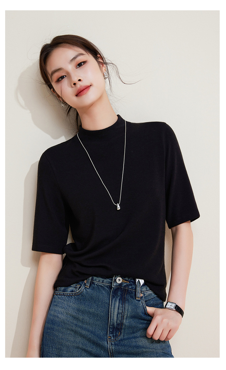 丁摩 半高领五分中袖女内搭春秋新款法式修身打底衫软糯中领上衣女5ZF-M933 商品图4