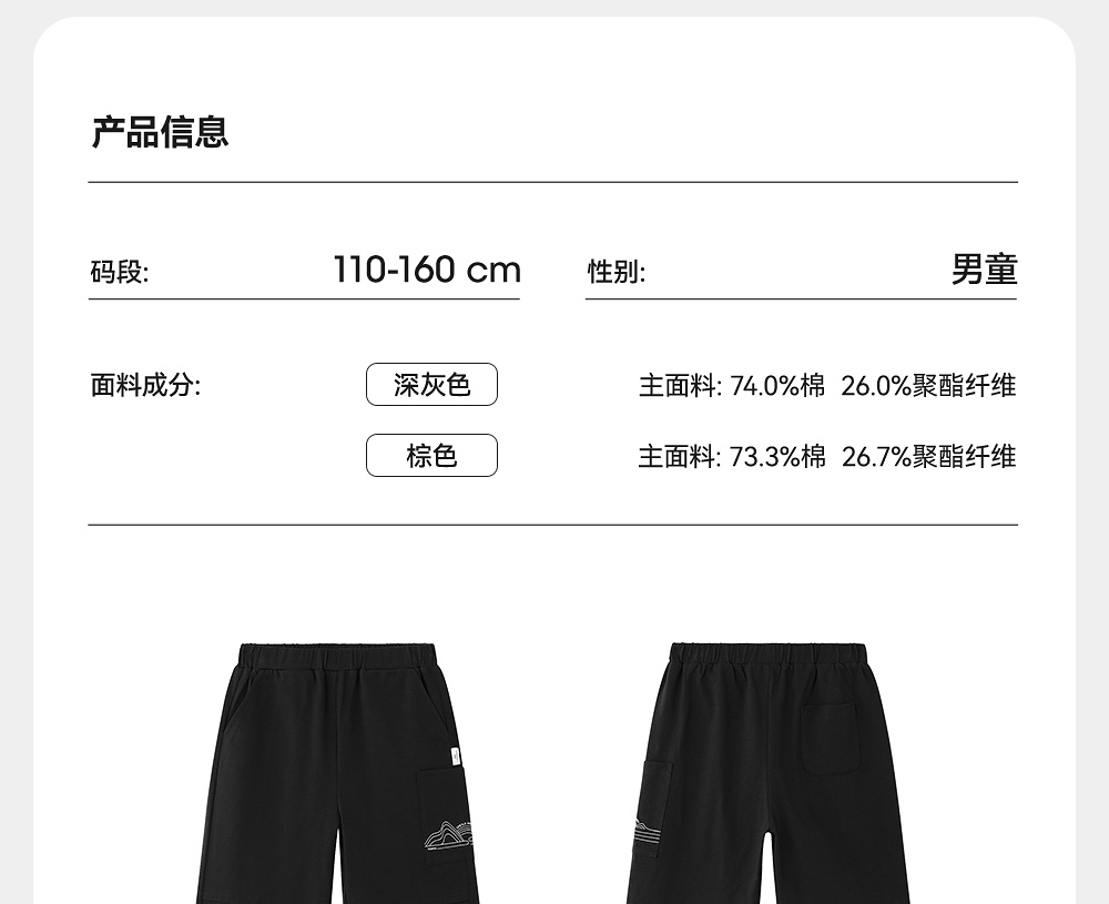 英氏儿童裤子夏季透气休闲短裤男童中裤吸湿速干休闲裤2025新款
