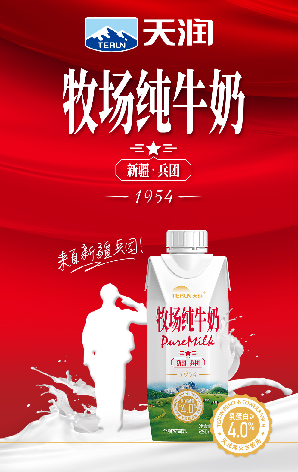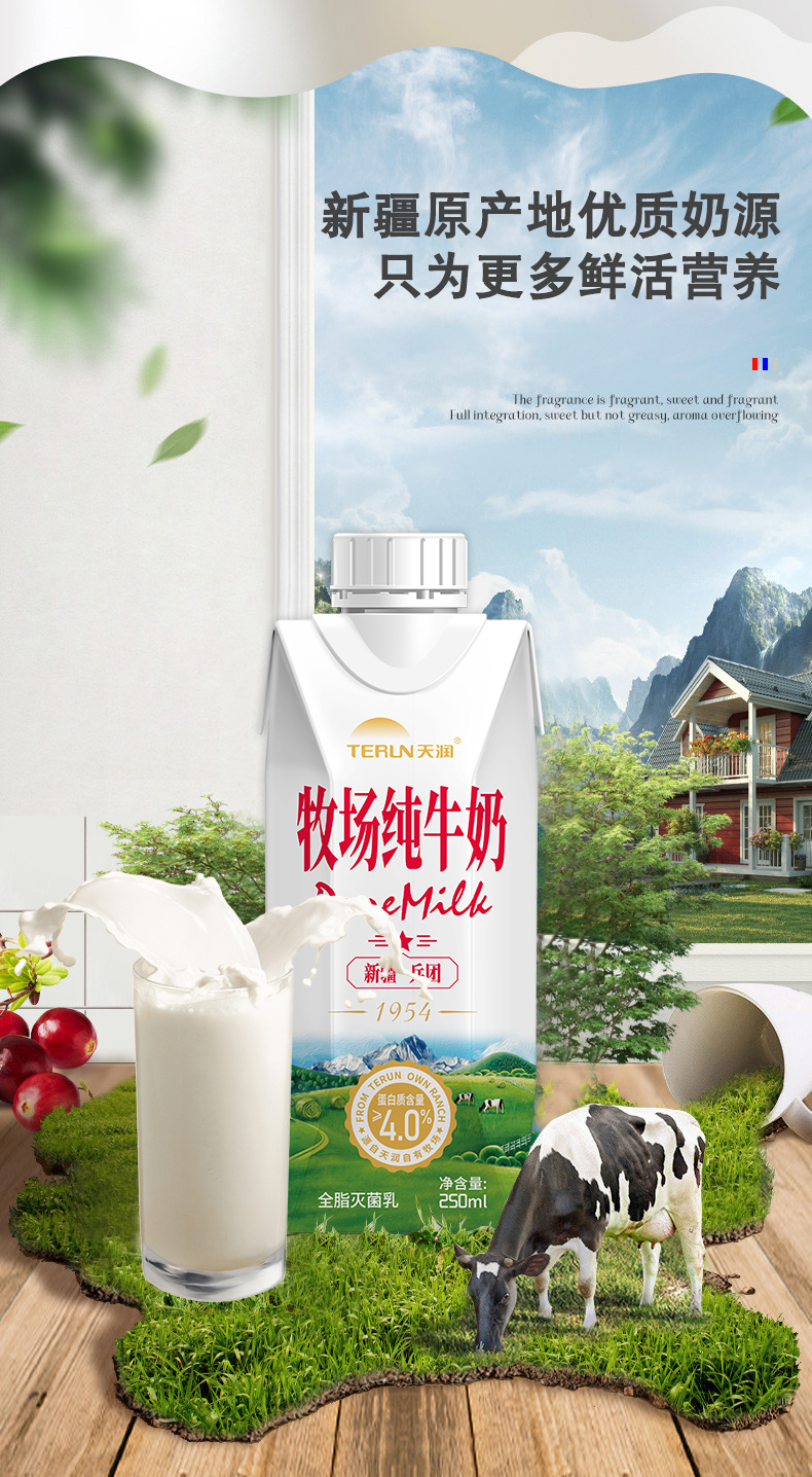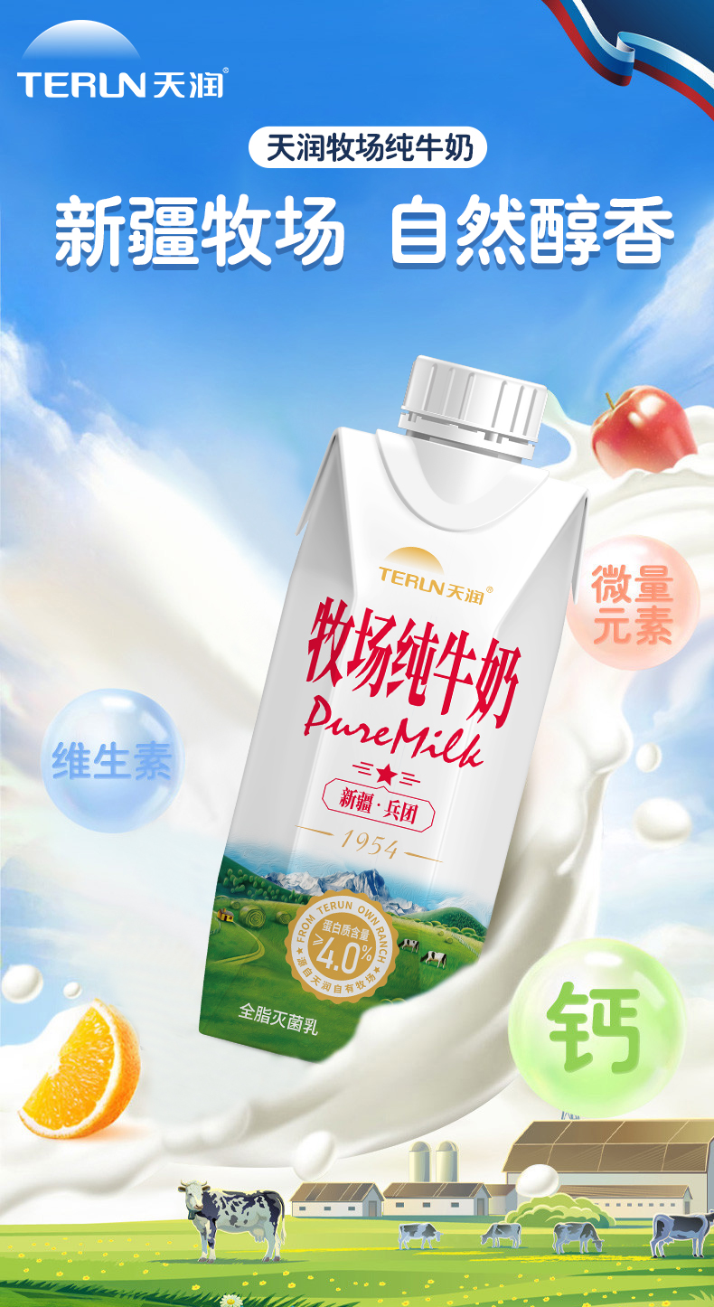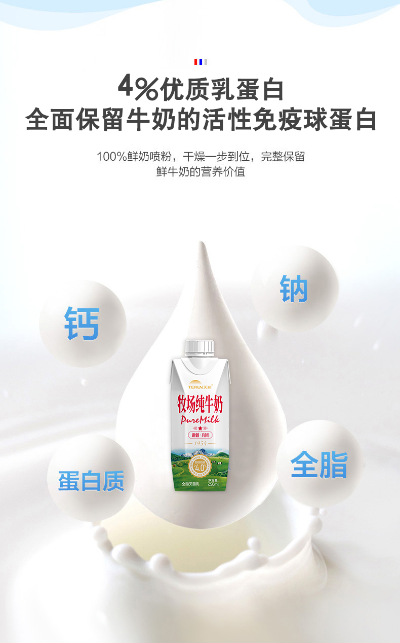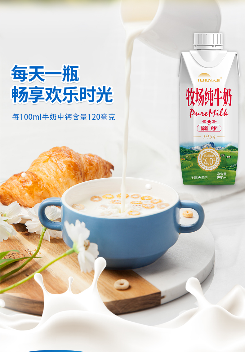 蛋白质高达4.0,新疆天润兵团牧场纯牛奶 250ml*10瓶