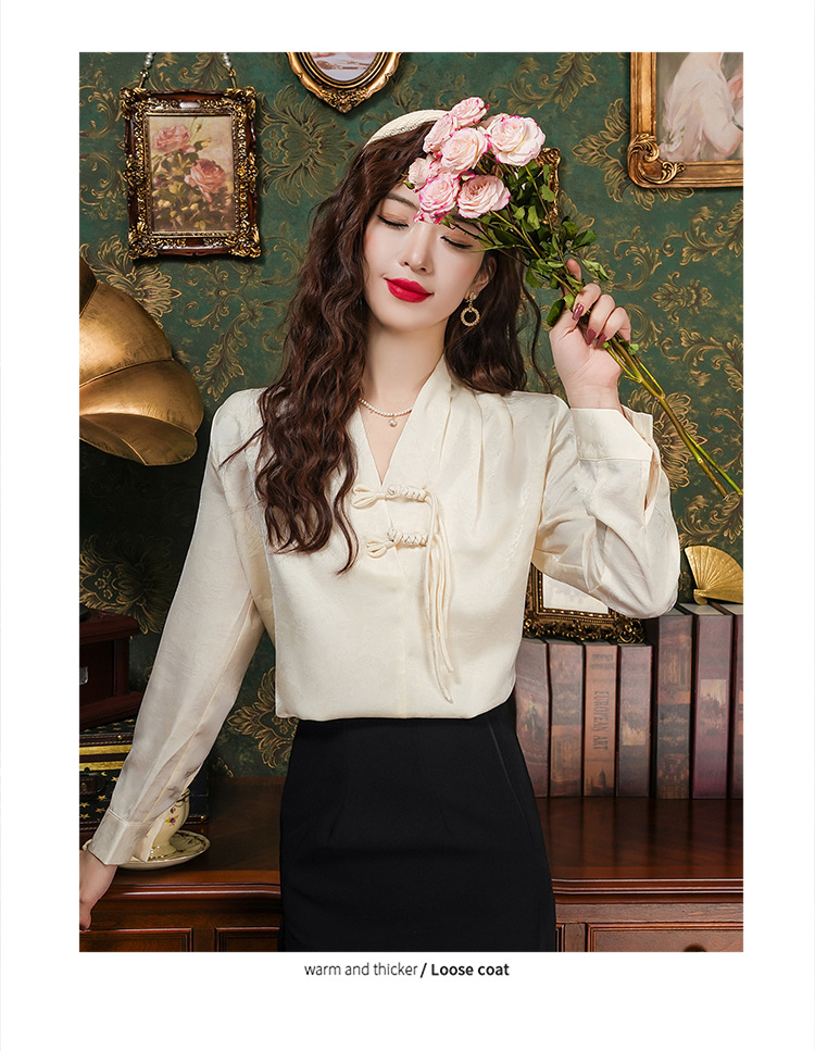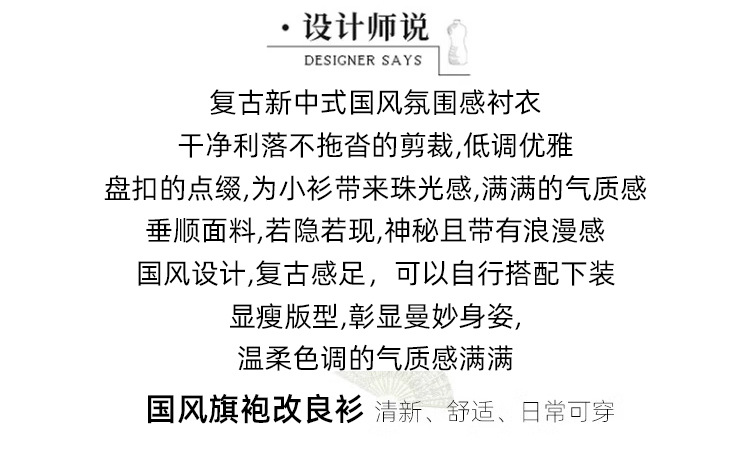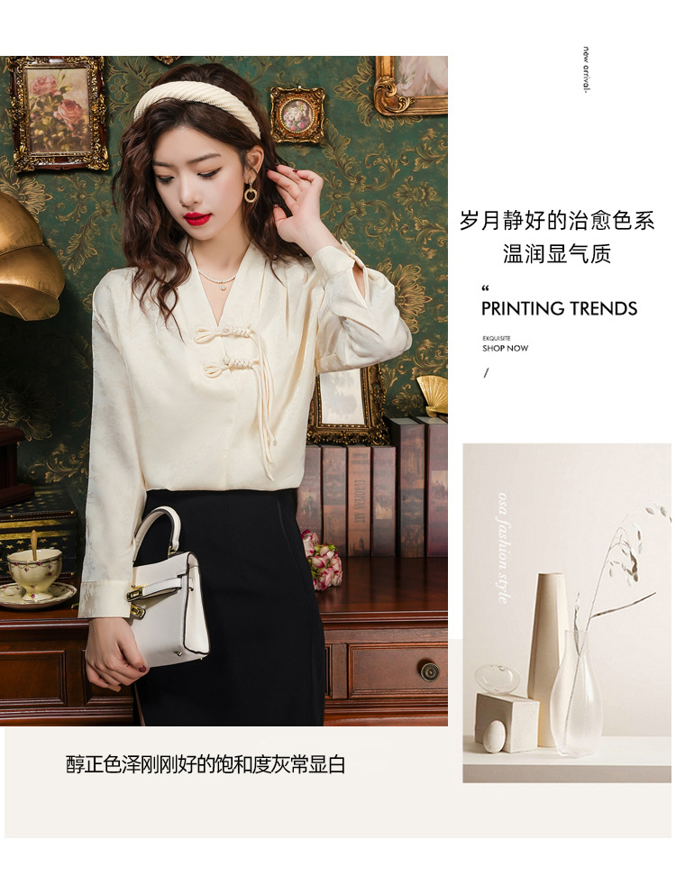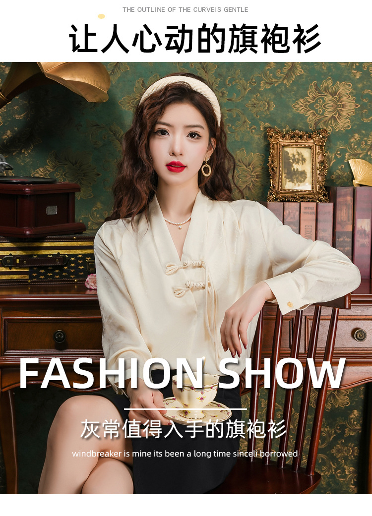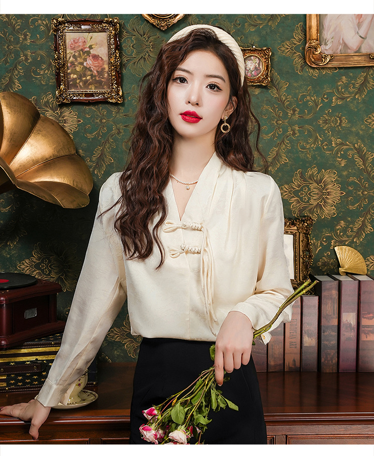 气质优雅,V领中国结长袖新中式国风上衣AHM-du8687