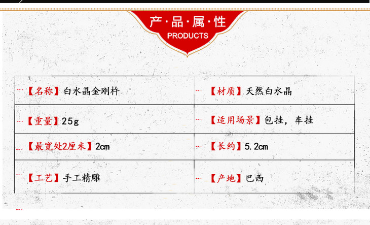 巴西白水晶 手工精雕金刚杵车挂包挂吊坠挂坠晶体好支持国检