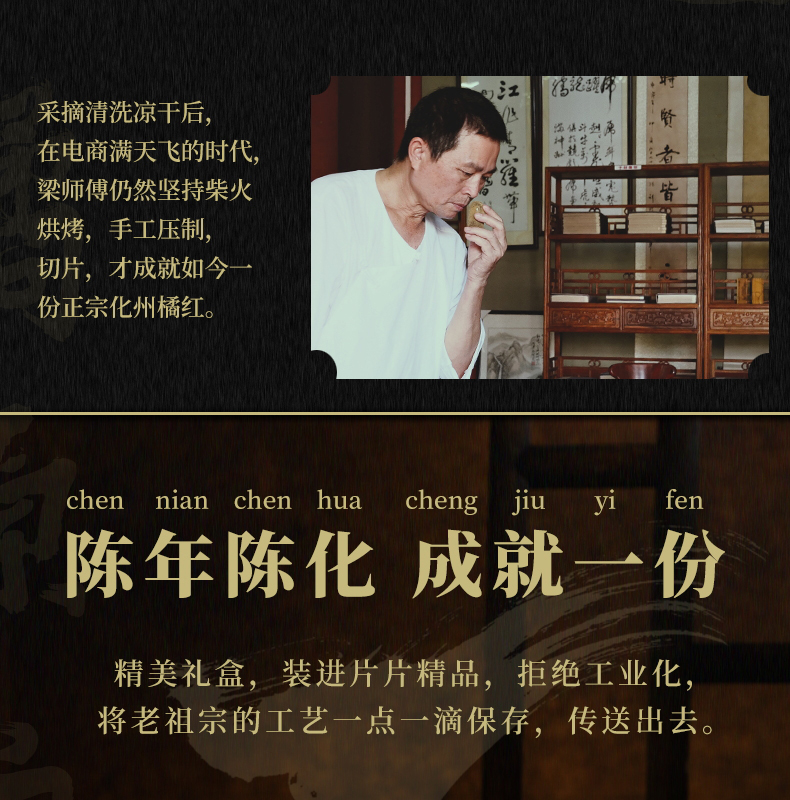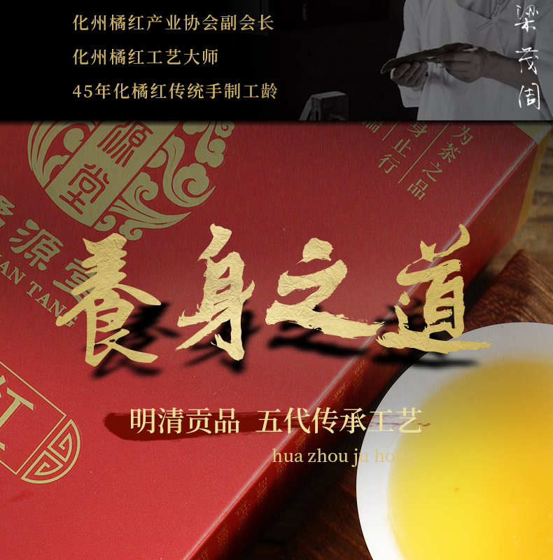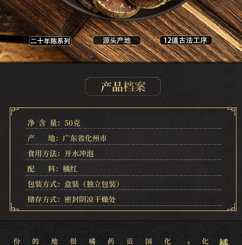 化州橘红【20年陈·胎果片】 甄选核心产区化州平定镇的橘红 咳嗽痰多自用款 办公室教师讲话多者宽中气顺 大师传承橘源堂橘红 50克/盒【约25包】