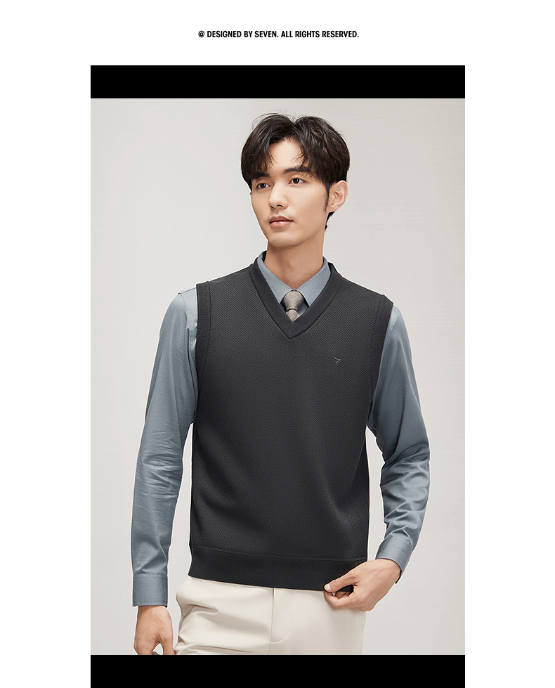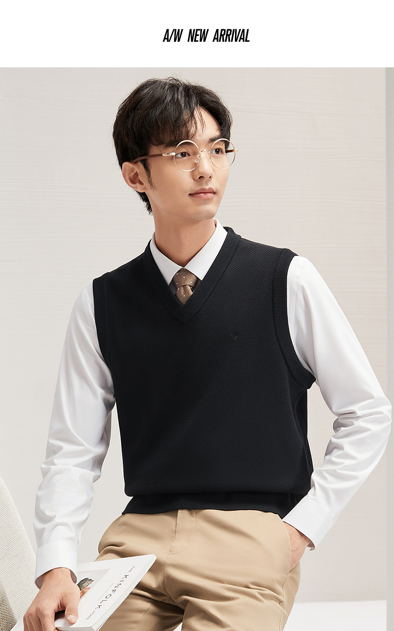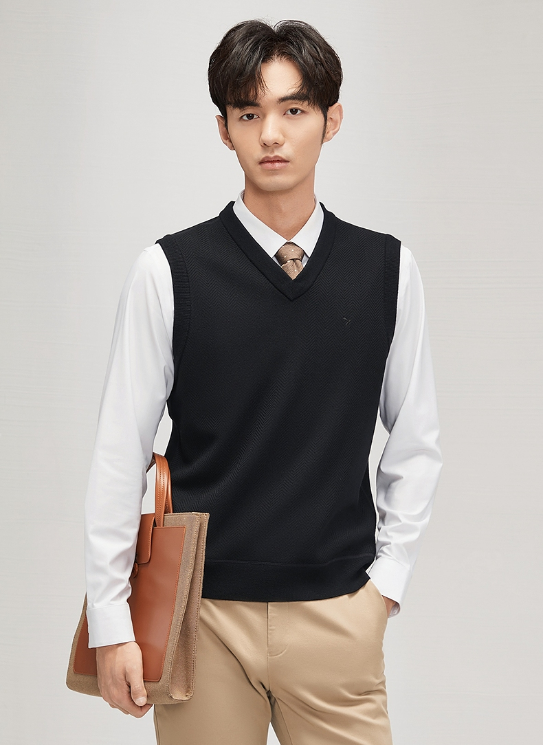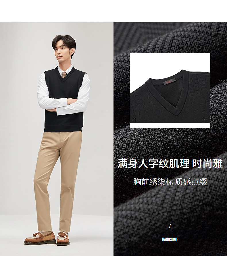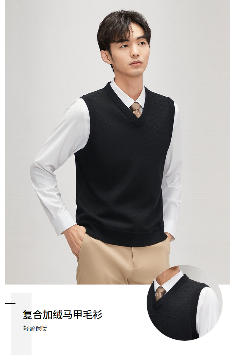 柒牌男装背心毛衣男士2024秋冬新款时尚休闲打底加绒V领马甲毛衫 127Y70770