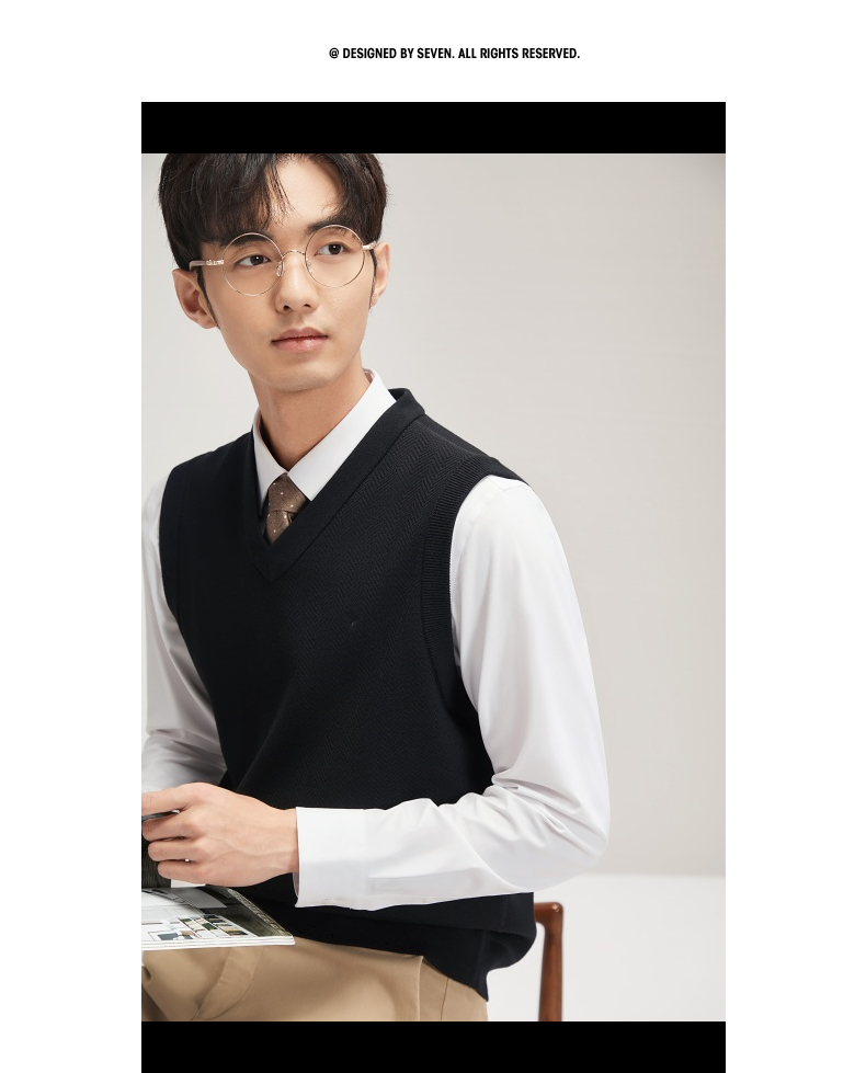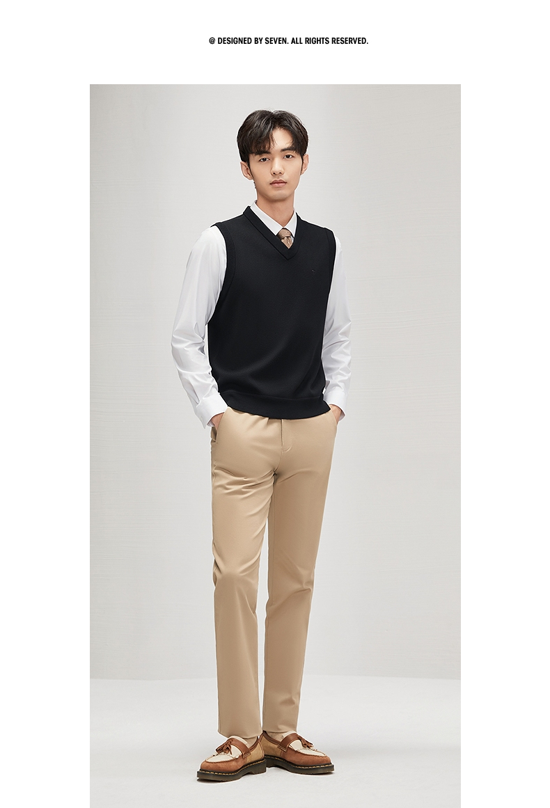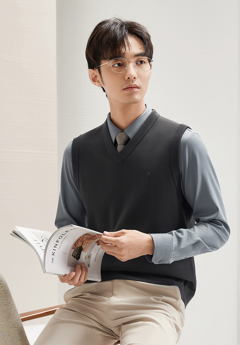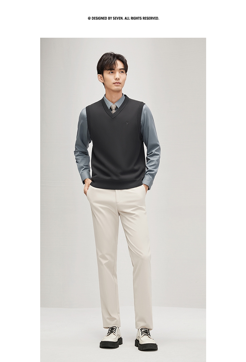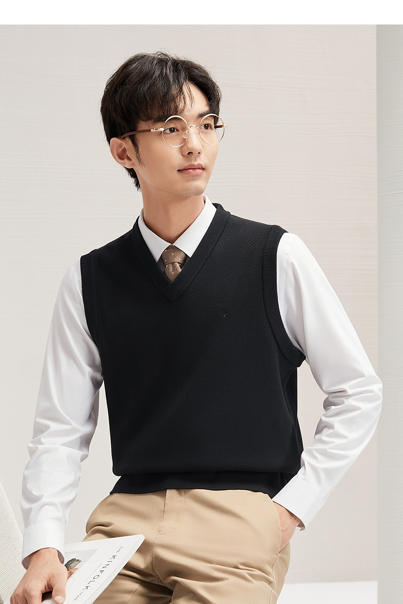 柒牌男装背心毛衣男士2024秋冬新款时尚休闲打底加绒V领马甲毛衫 127Y70770