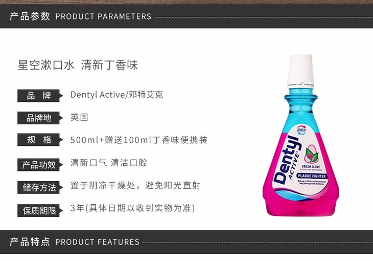 【保税仓】Dentyl Active/邓特艾克 星空漱口水 500ML 清新丁香味