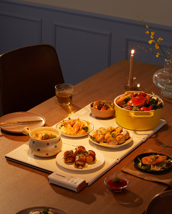 这款暖菜板,是有五版可以自由拼接的,一人食我们使用一块即可,两人我们就使用两版即可,人多我们就可以把几块暖菜板拼接起来,一家人在一起吃饭菜都热腾腾的,有温度的一日三餐,真的幸福感非常强~~(标配是2块板,为过年家人朋友聚会或者人多考虑的姐妹,建议直接5块板一起入噢~)