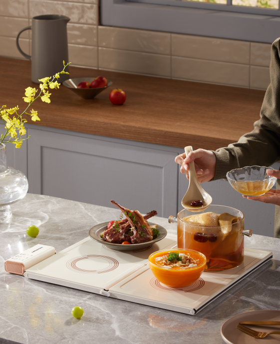 相比之下,这款灵活拼接的暖菜板,拼接叠放后不占地方,可以轻松收纳于橱柜/餐桌/厨房!