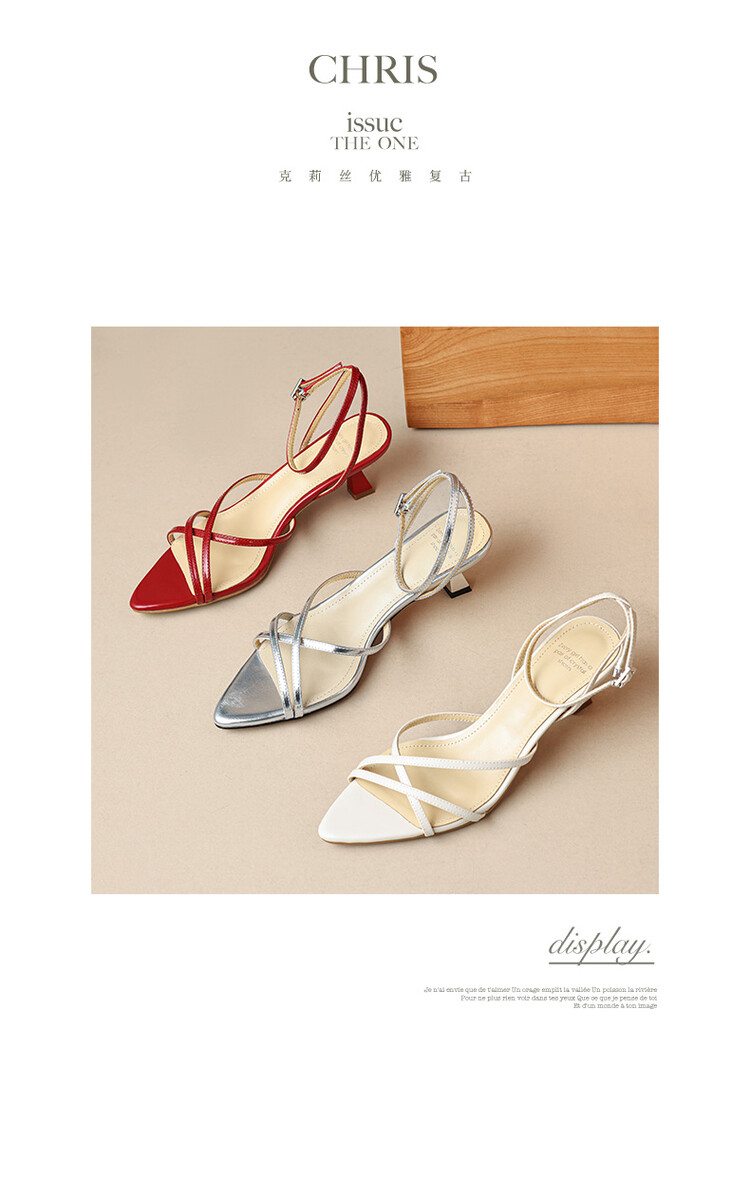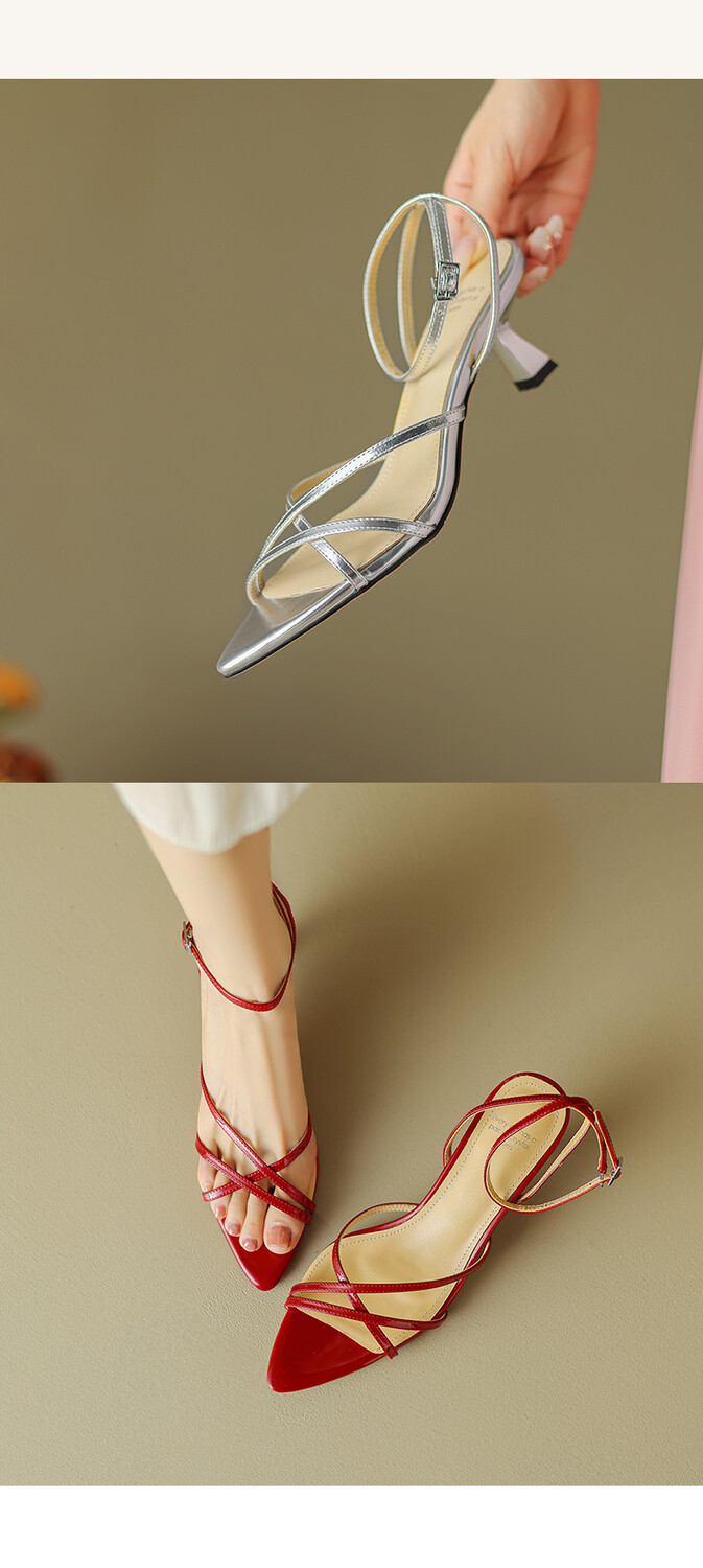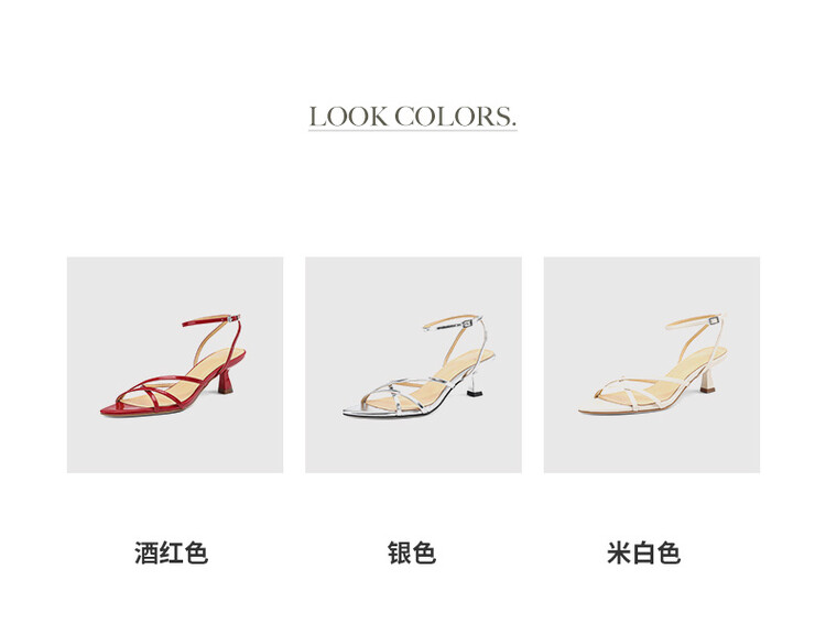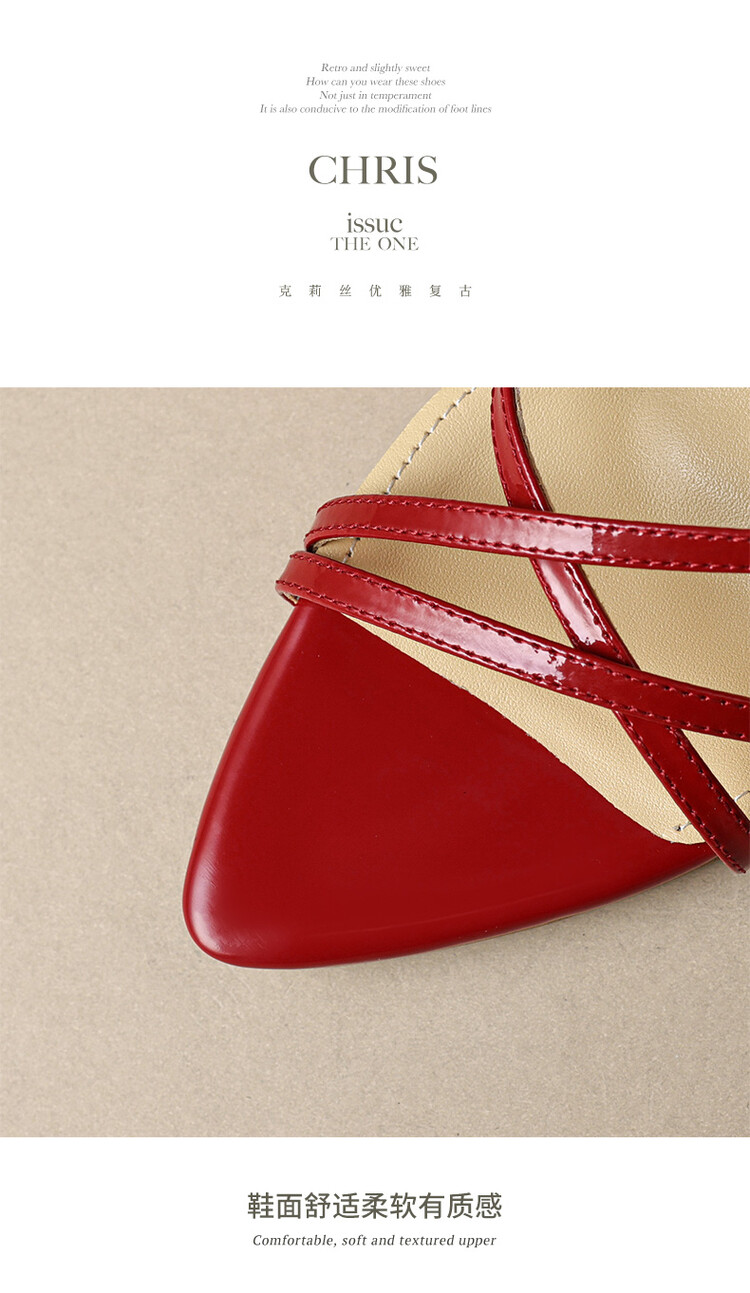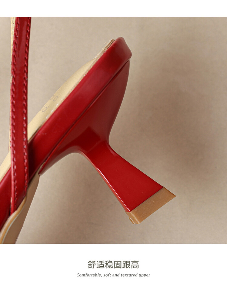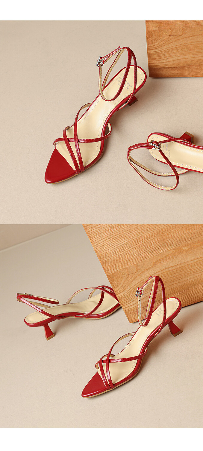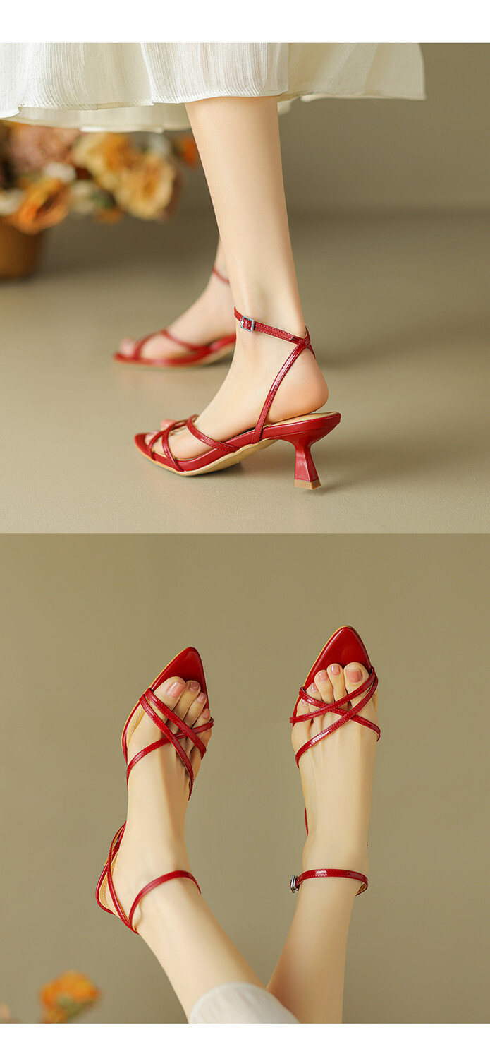 【预售5天】夏季新款尖头露趾细跟红色牛皮细带中跟优雅一字带凉鞋HB&Z539
