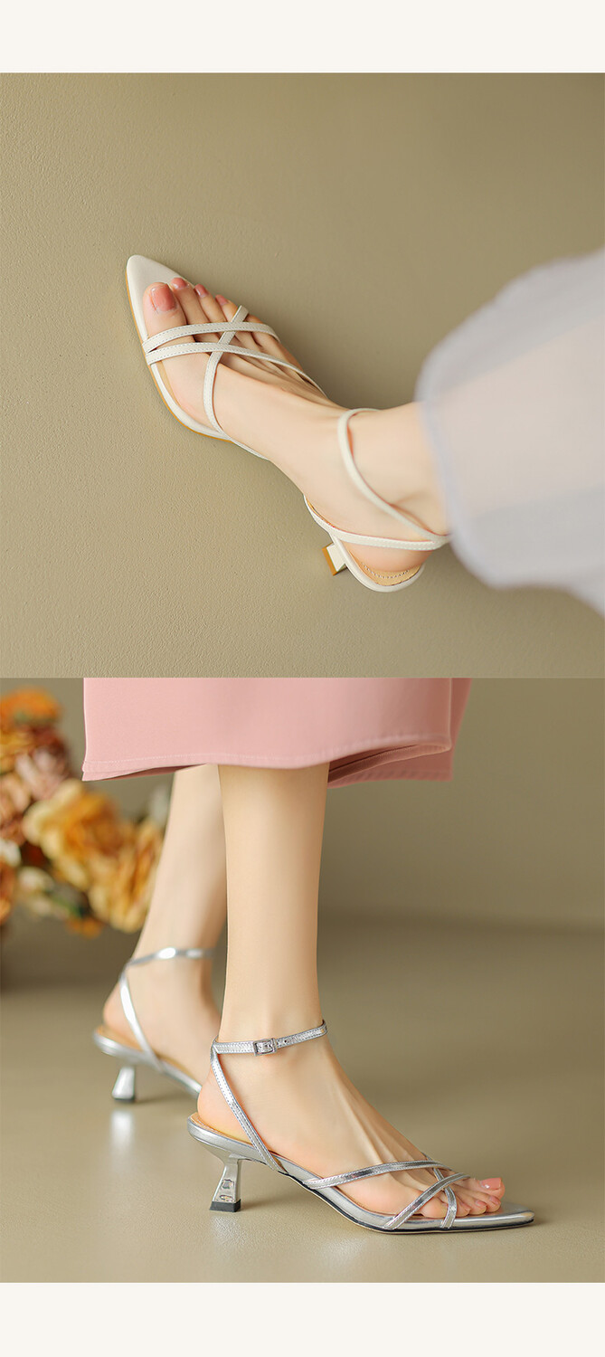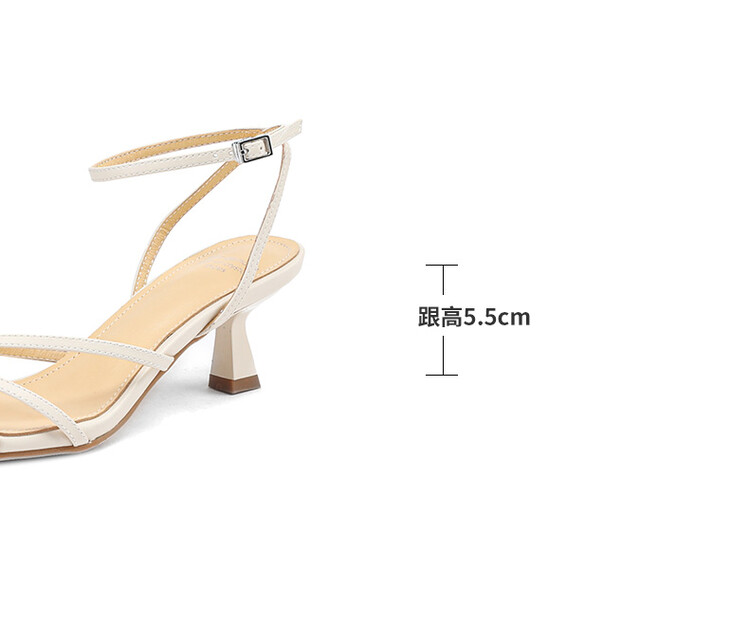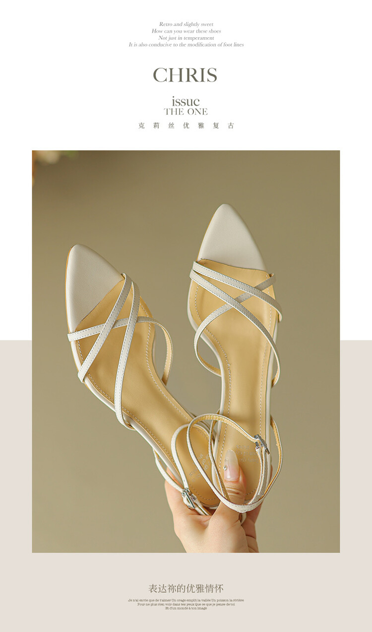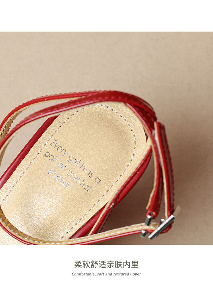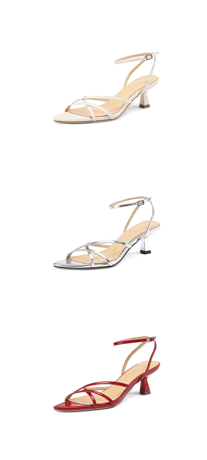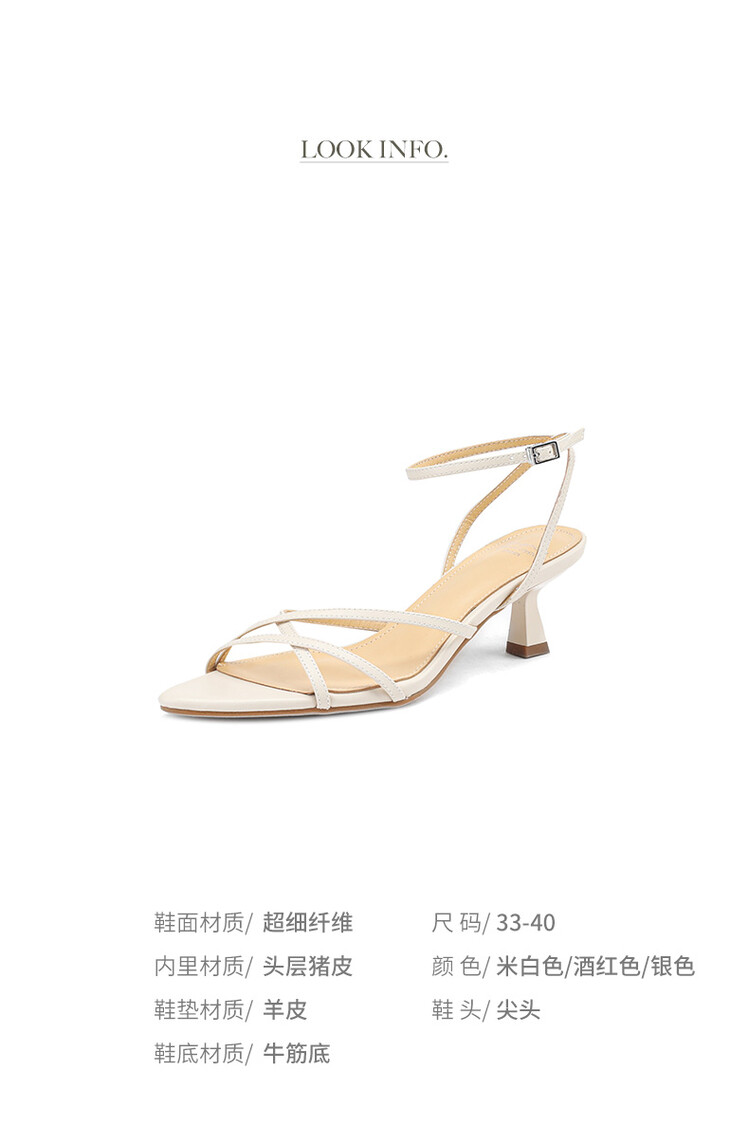 【预售5天】夏季新款尖头露趾细跟红色牛皮细带中跟优雅一字带凉鞋HB&Z539