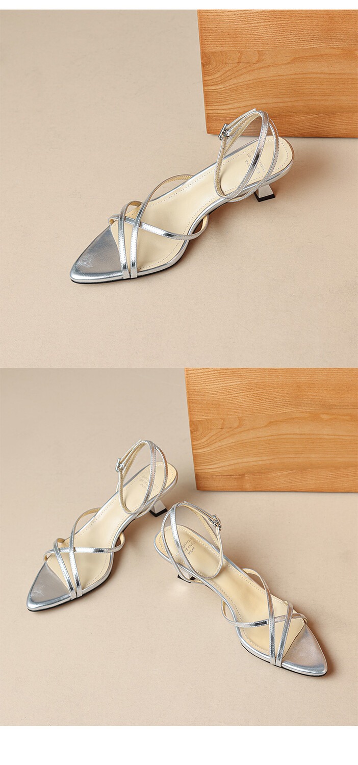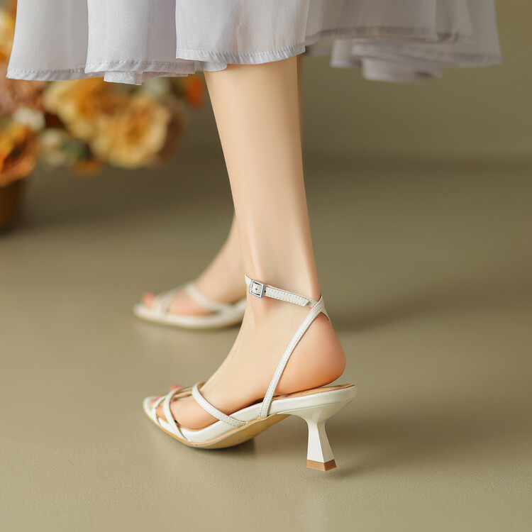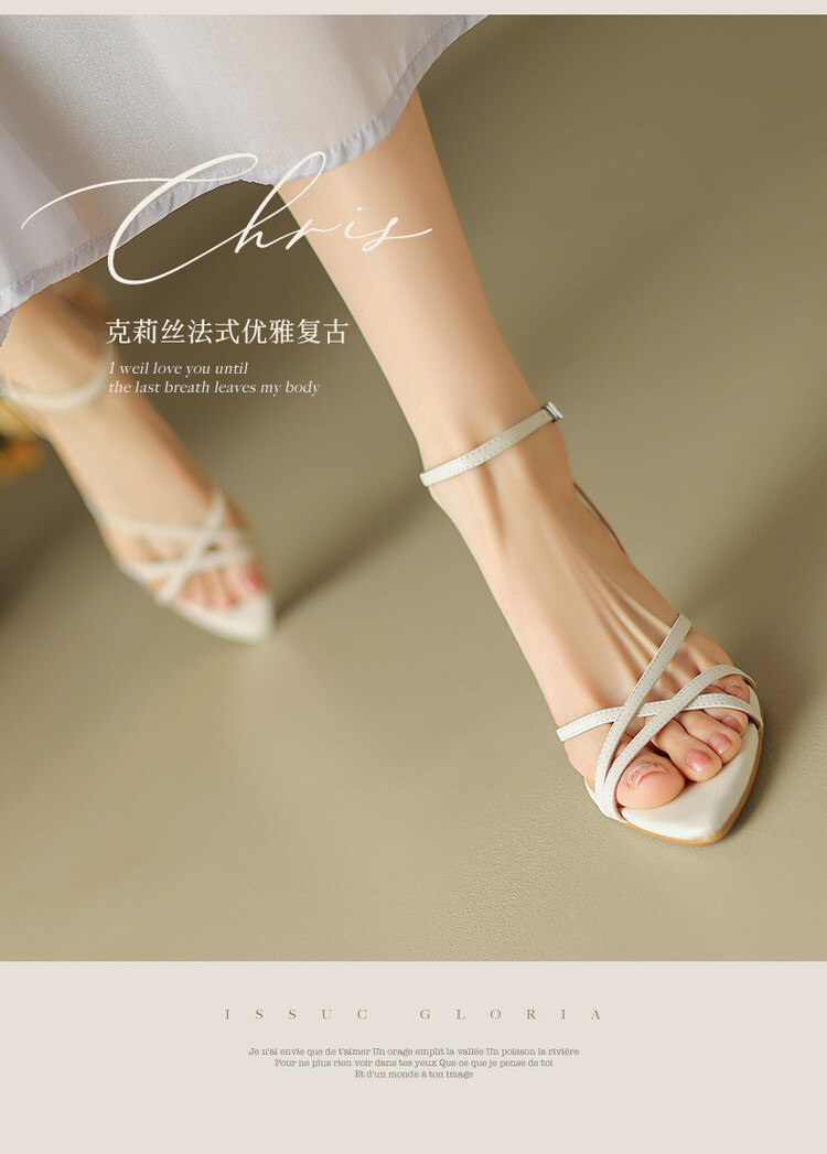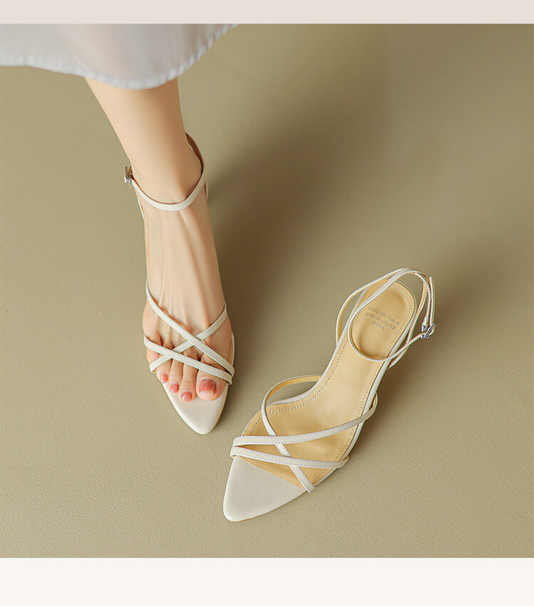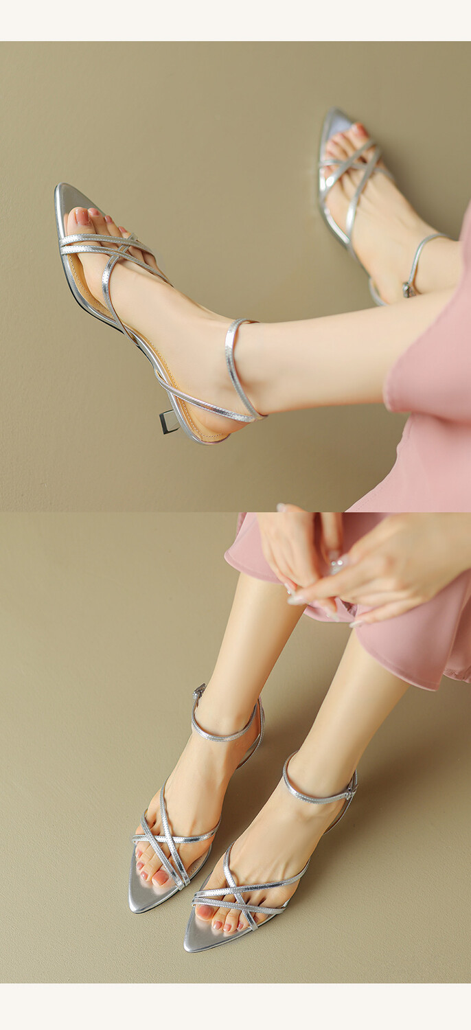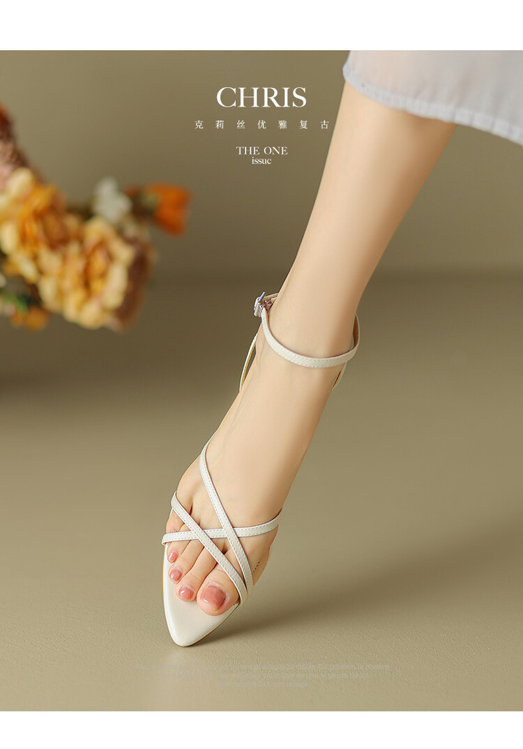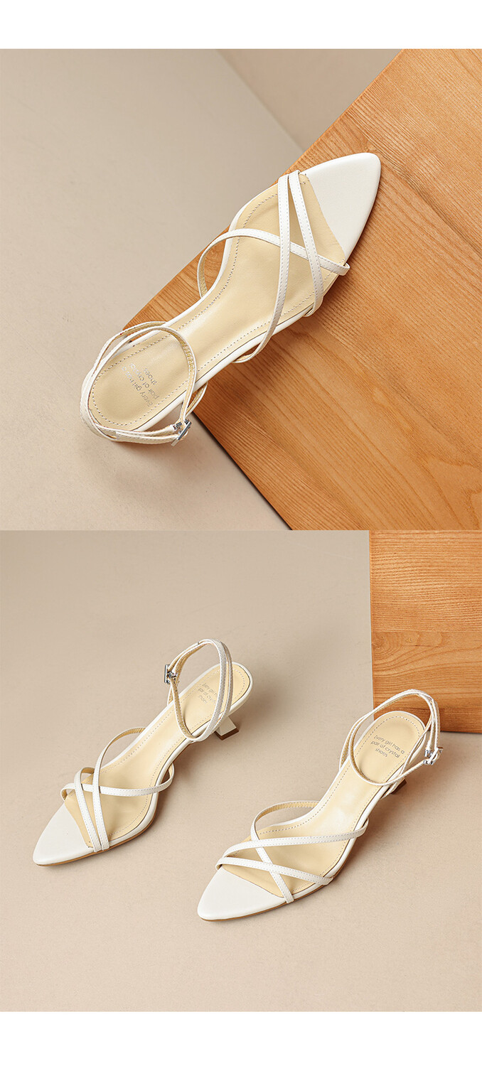 【预售5天】夏季新款尖头露趾细跟红色牛皮细带中跟优雅一字带凉鞋HB&Z539