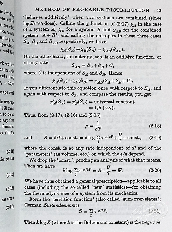 诺贝尔奖获得者的杰出尝试,开发了一种简单、统一的标准方法来处理统计热力学的所有情况,如经典、量子、玻色·爱因斯坦、Fermi-Dirac分布函数,等等。