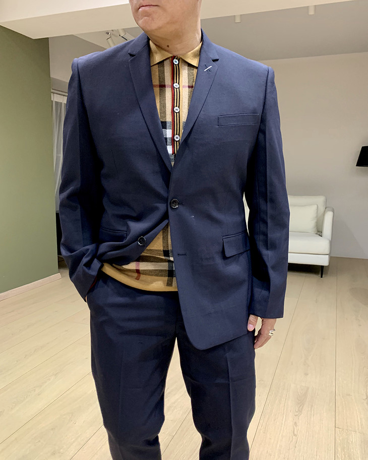 羽绒马甲,针织羊毛西服,正装西装,配什么都好看。运动裤,西裤,牛仔裤,随便你怎么配,调性都是超赞。也可以像官网一样,没搭配衬衣领带也JUE了