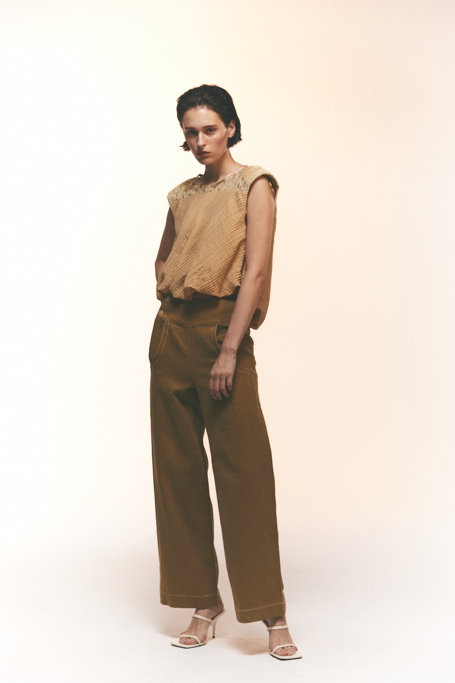 主身选用细密压纹面料,顺着肌理轻轻扭转,制造出自然的立体感。织纹带来恰到好处的立体支撑,也赋予整体一种介于挺括与松软之间的结构张力。