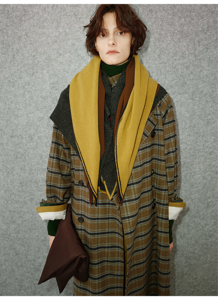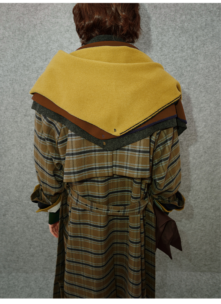 HIDEMI 美利奴羊毛趣味设计感连帽式围巾