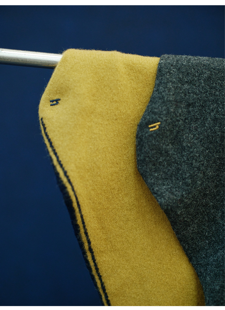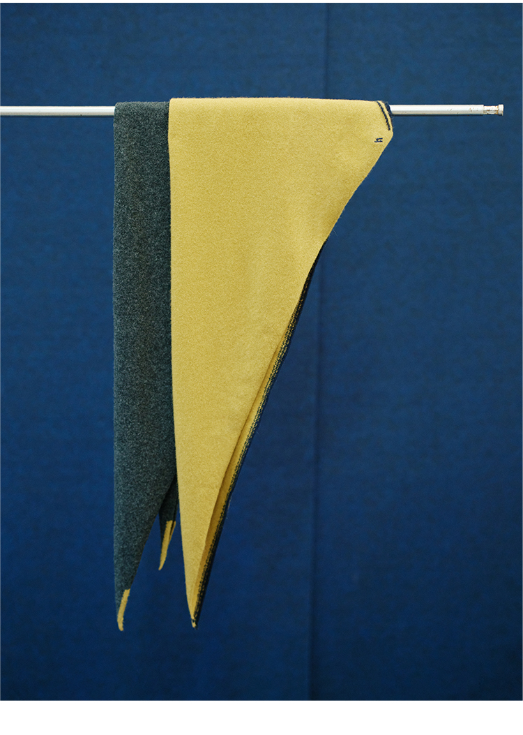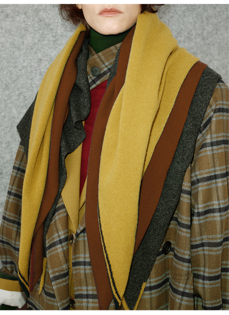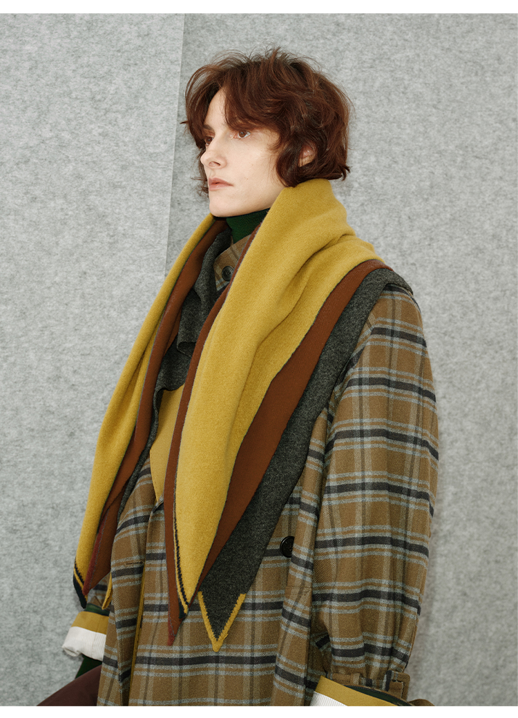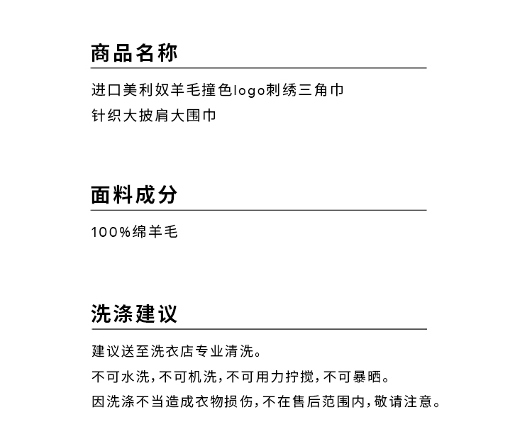 HIDEMI 进口美利奴羊毛撞色logo刺绣三角巾针织大披肩大围巾