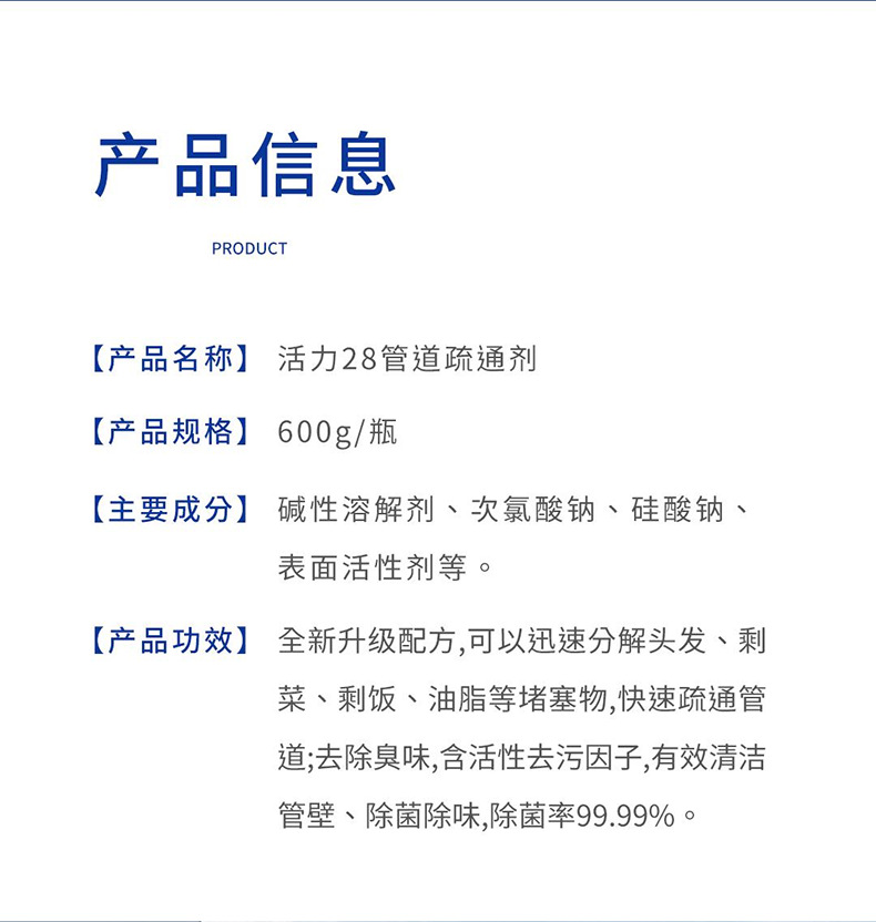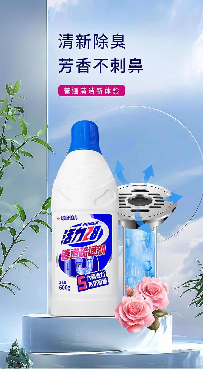 【清新除臭❗芳香不刺鼻】活力28 管道疏通剂600g疏通清洁除菌除异味防堵塞2瓶排水管家用。rh