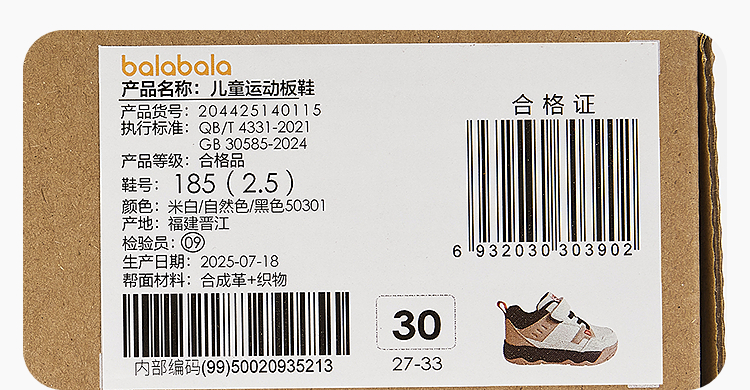 【商场同款】巴拉巴拉男童运动鞋透气板鞋秋冬2025新款小白鞋百搭