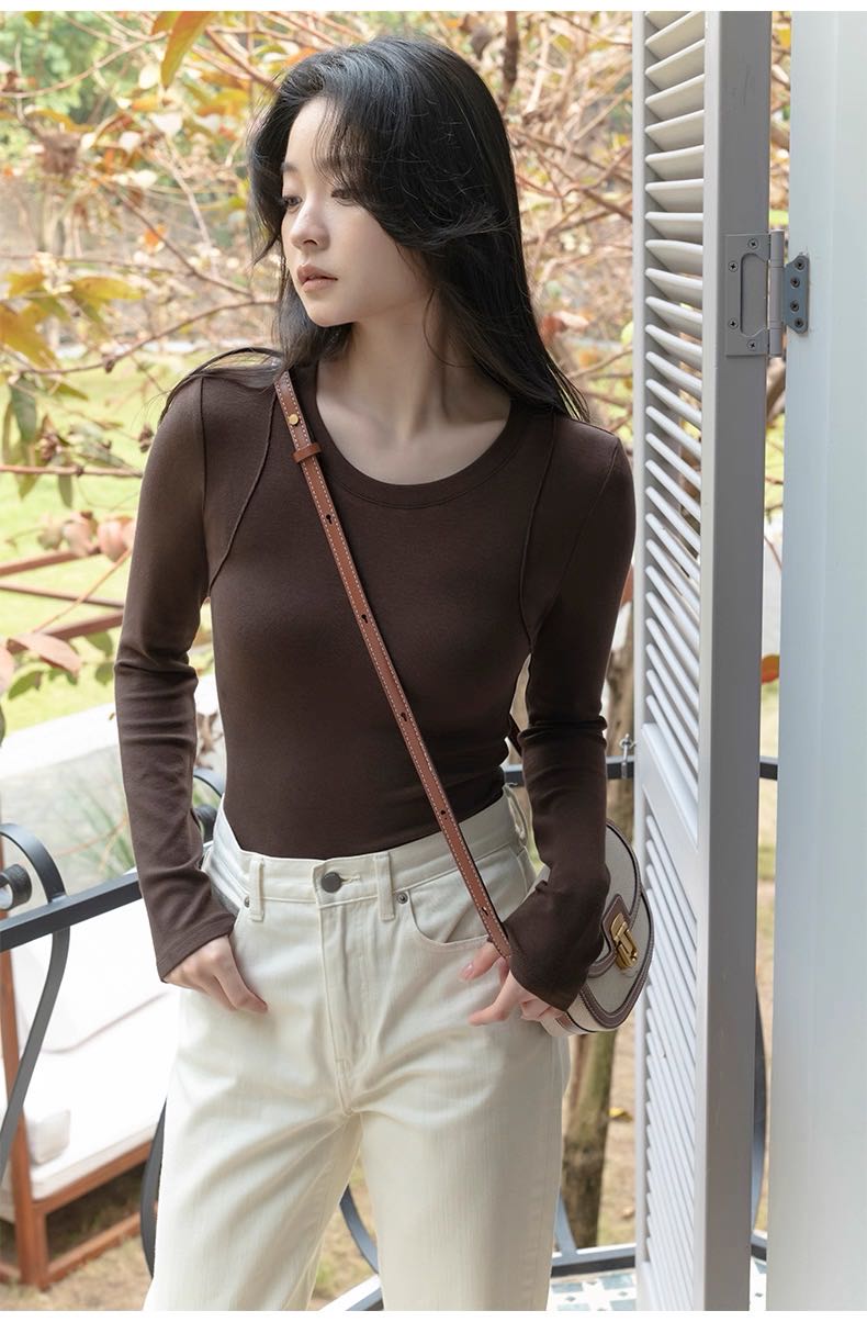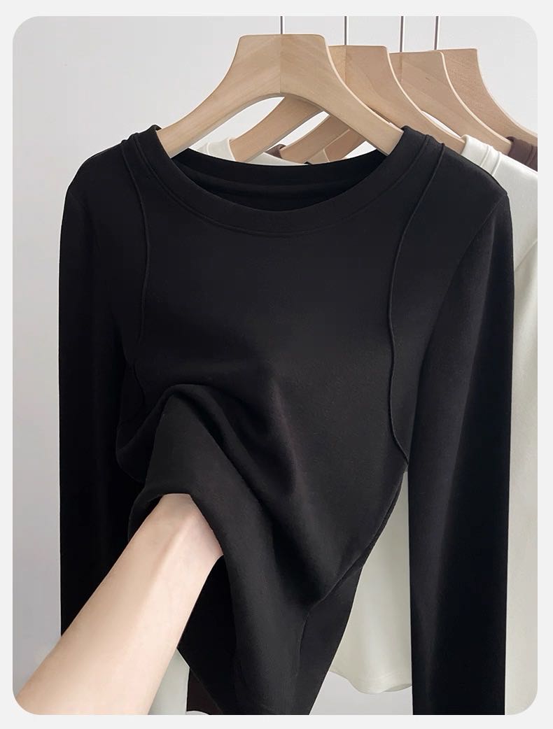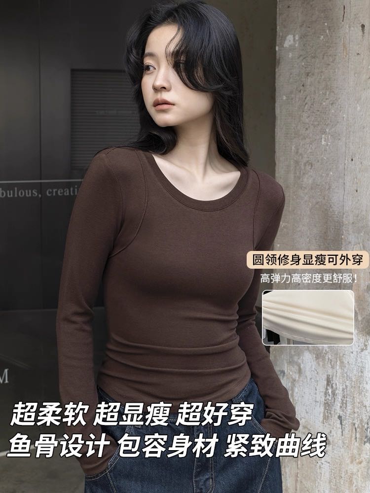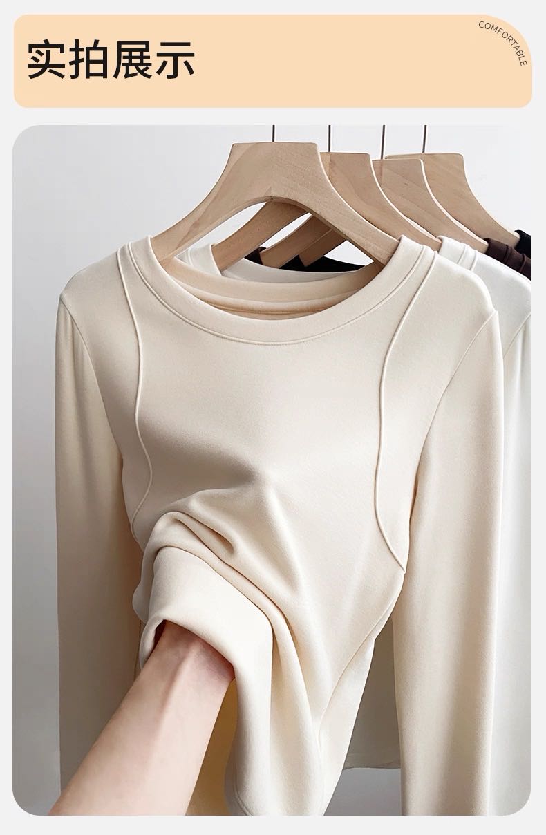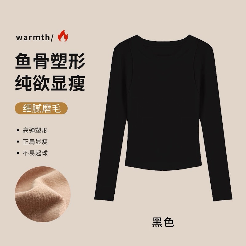 【买1送1,正肩修身鱼骨磨毛打底衫】拉毛工艺,轻、薄、软、暖,一件过冬 ✅正肩版型,修身鱼骨,上身超显瘦