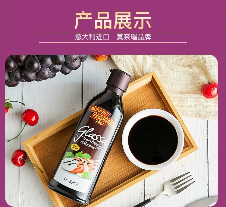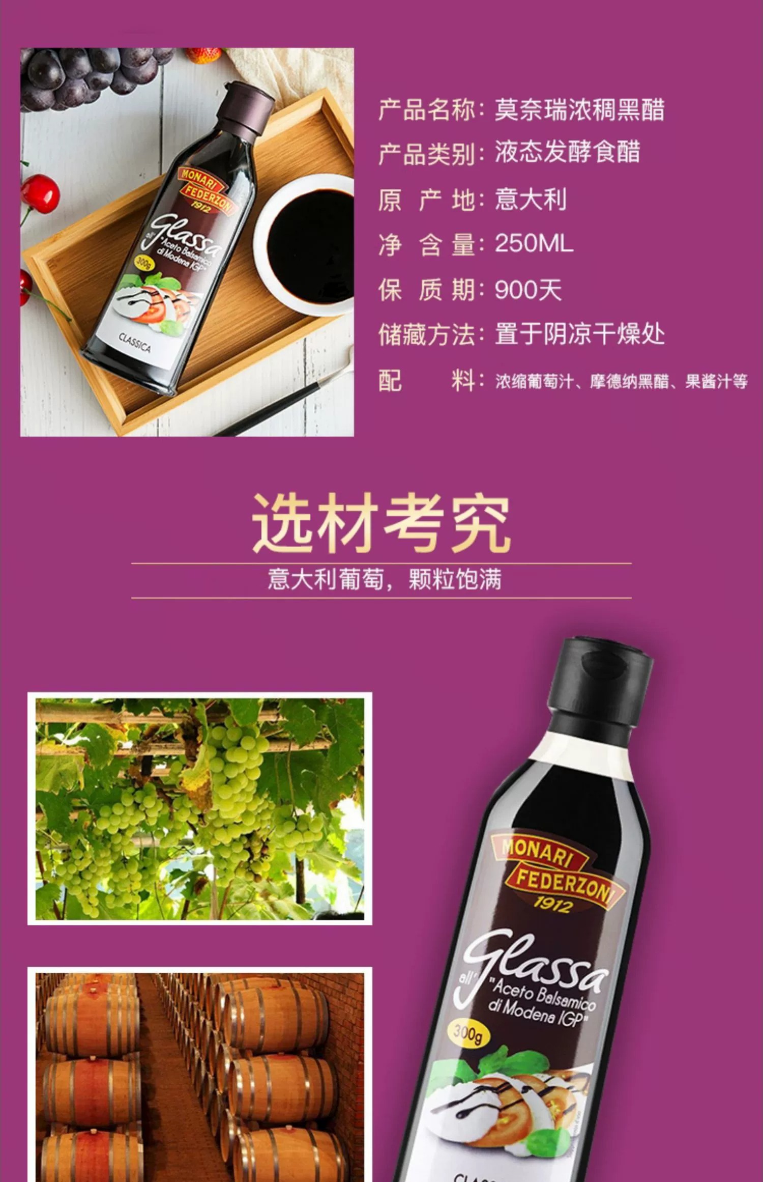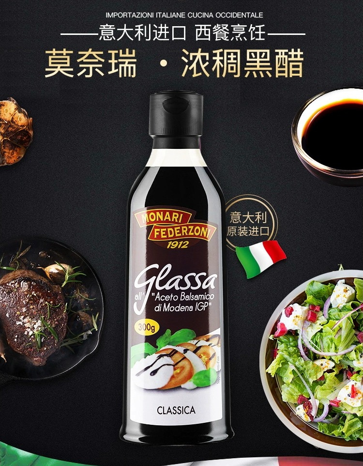 【中欧班列精选】 意大利莫奈瑞浓稠黑醋 原装进口酸甜牛排蘸酱浓缩黑醋 250ml/瓶