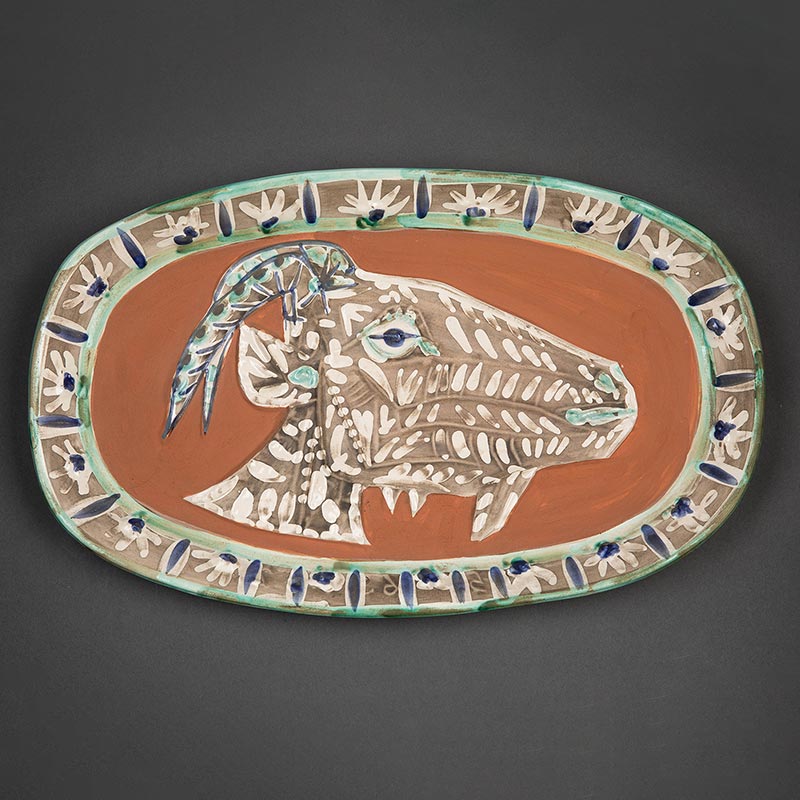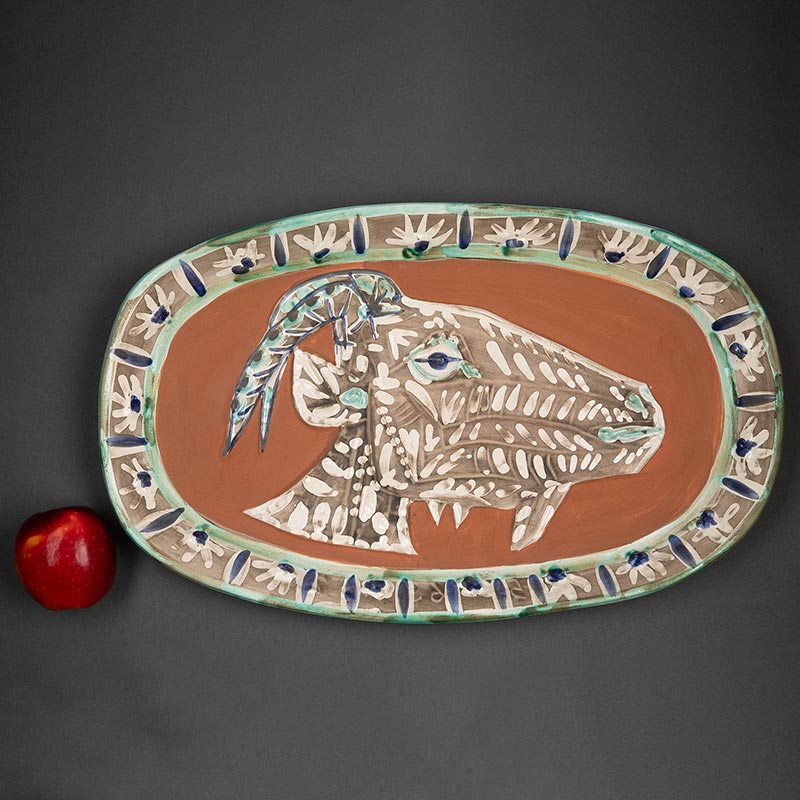 1952年代西班牙艺术巨匠与法国Madoura工坊合作出品限量装饰陶盘「Goat's Head in Profile (A.R. 146) 山羊头 146」