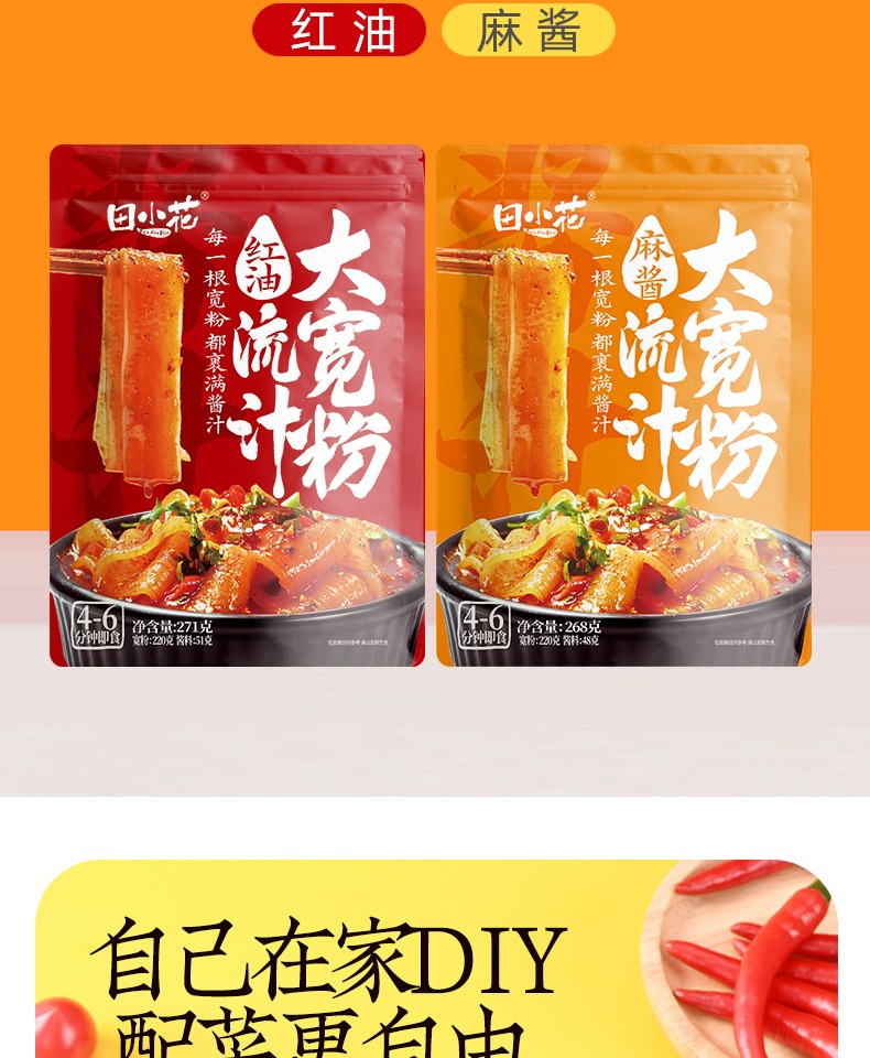 田小花 红油/麻酱 流汁大宽粉 271g/袋