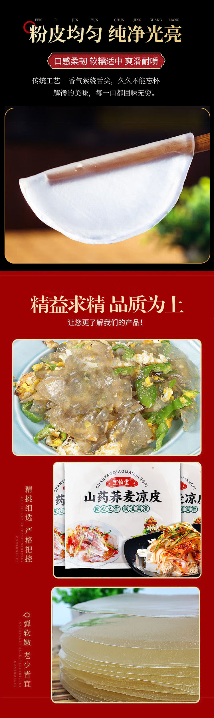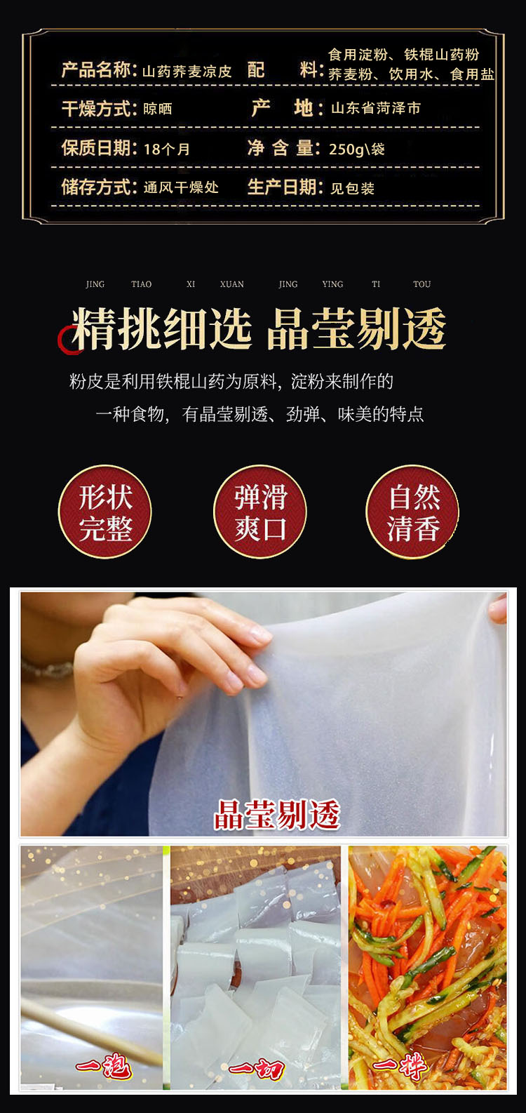 山药荞麦凉皮,9袋组合,精选新鲜铁棍山药和荞麦为原料,高营养,无添加,真材实料,粉皮纯净透亮,匠心之作,劲道爽滑,软糯适中,炖、拌、炒,吃法多样M