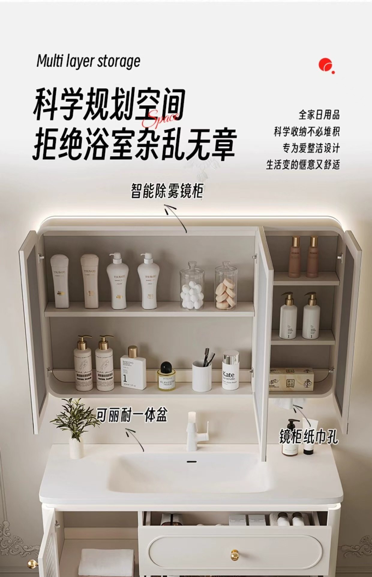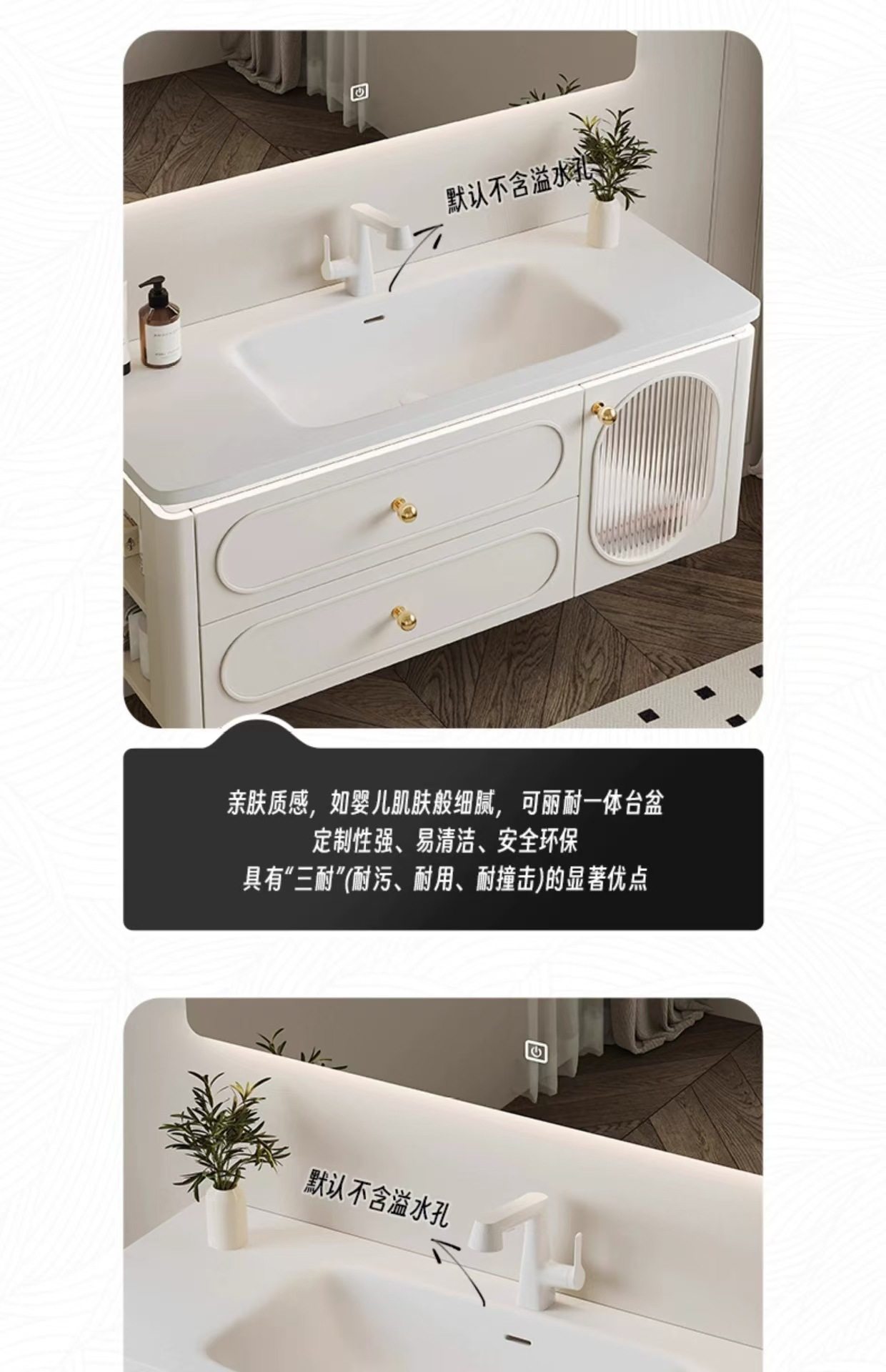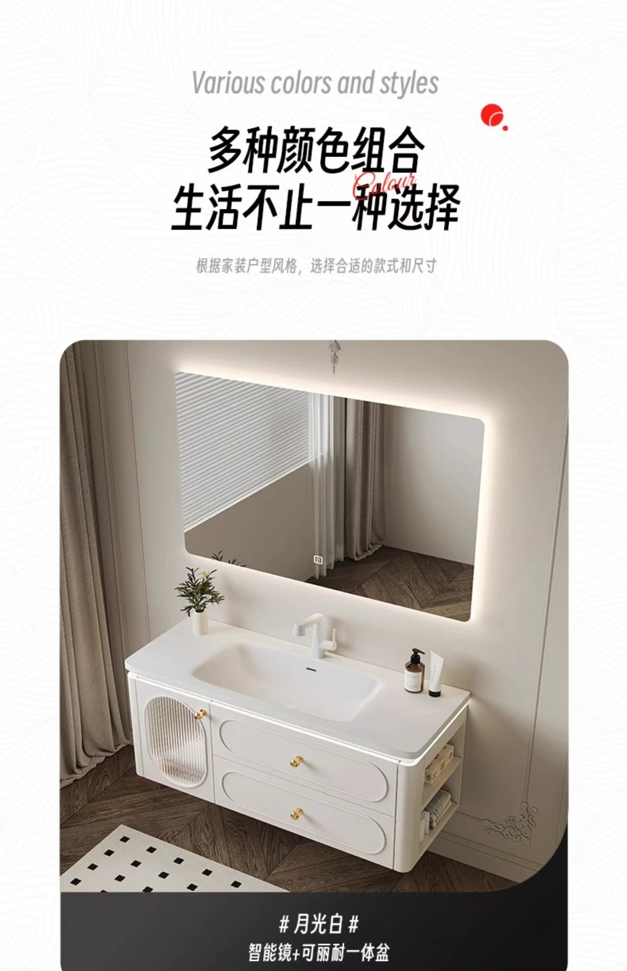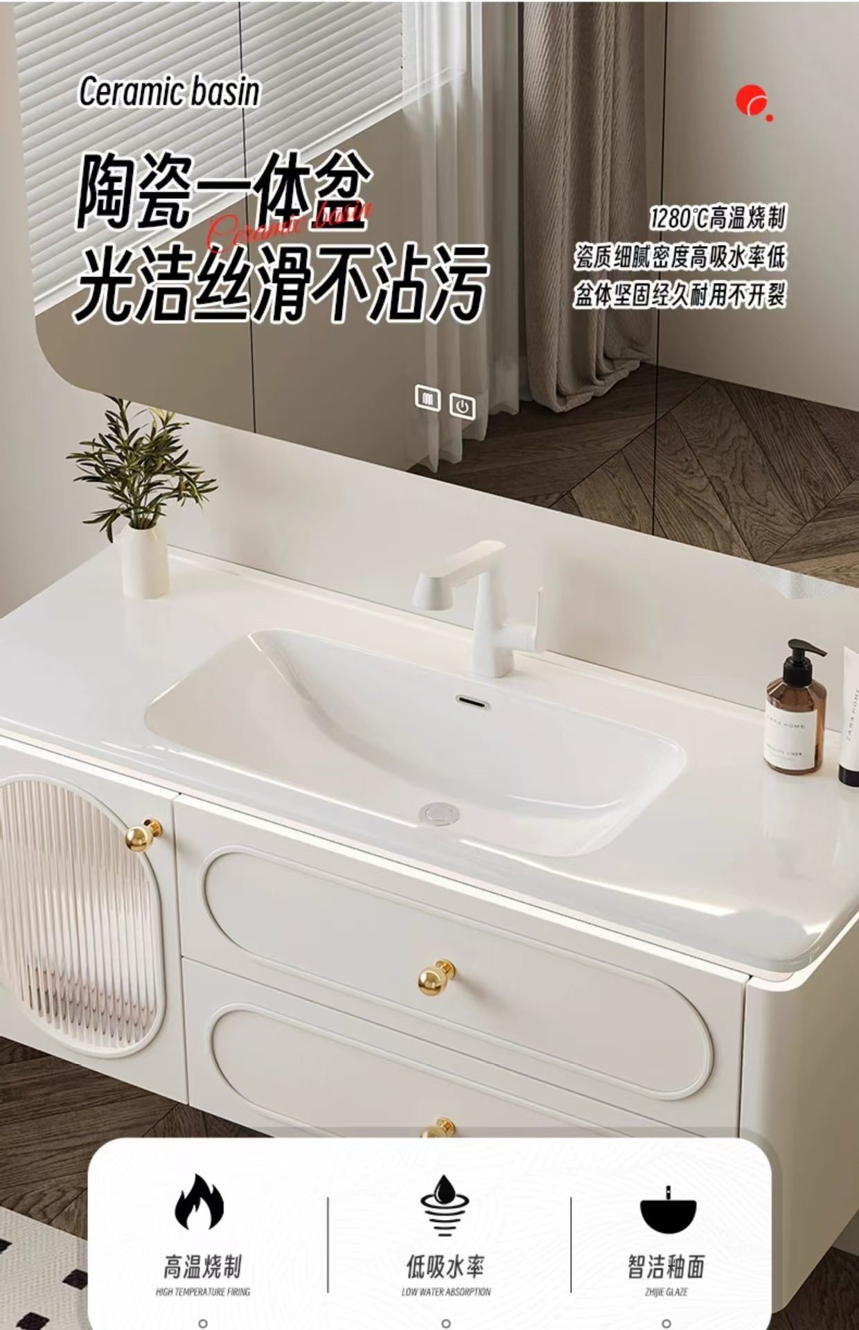 洗漱台浴室柜组合陶瓷2024奶油风卫浴橡木洗脸盆新款盆一体可丽耐