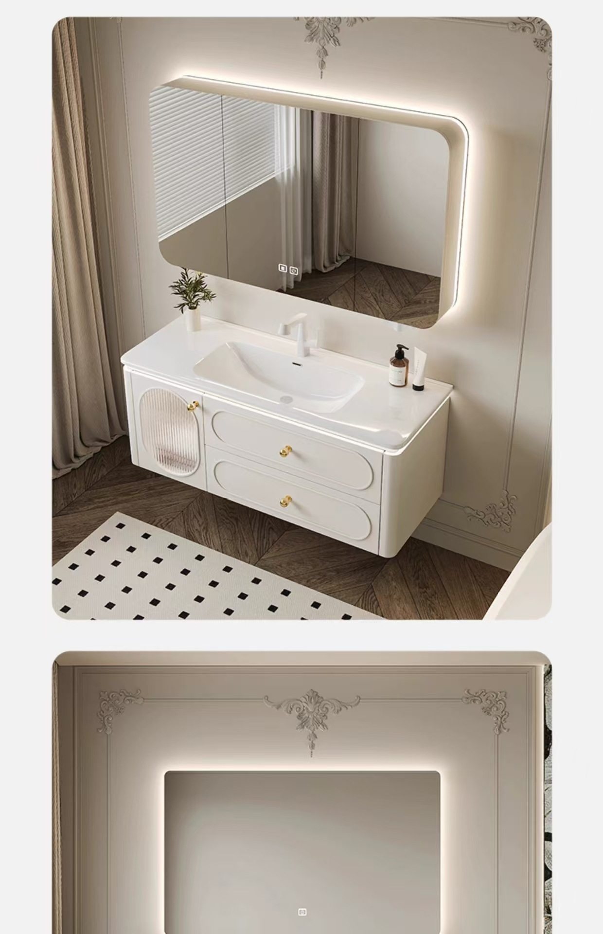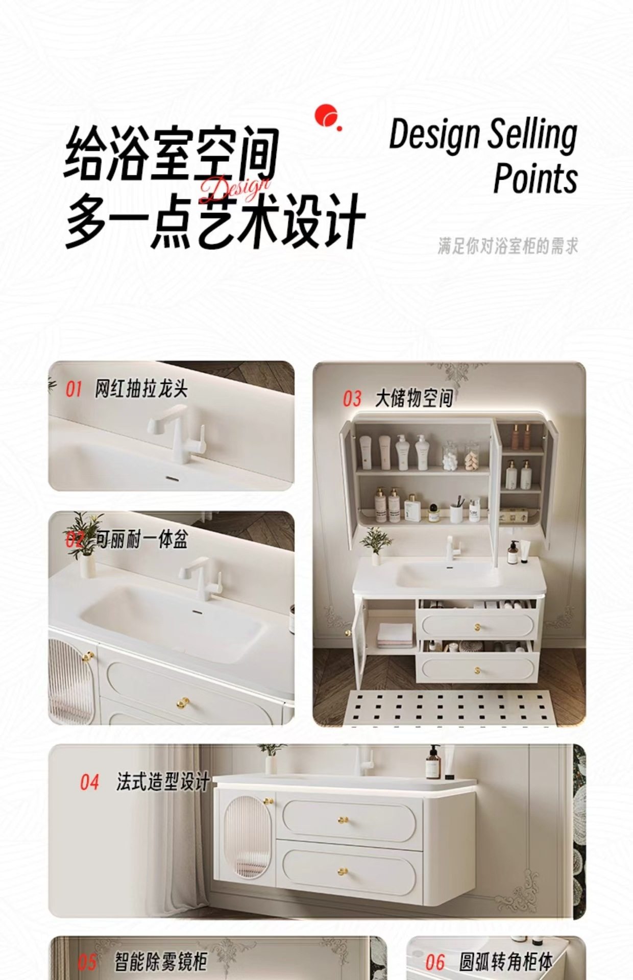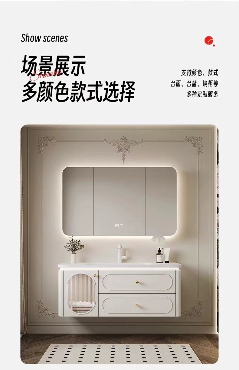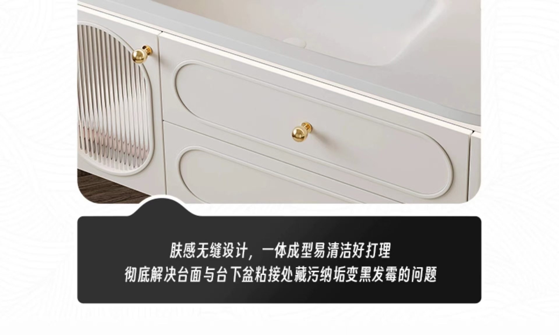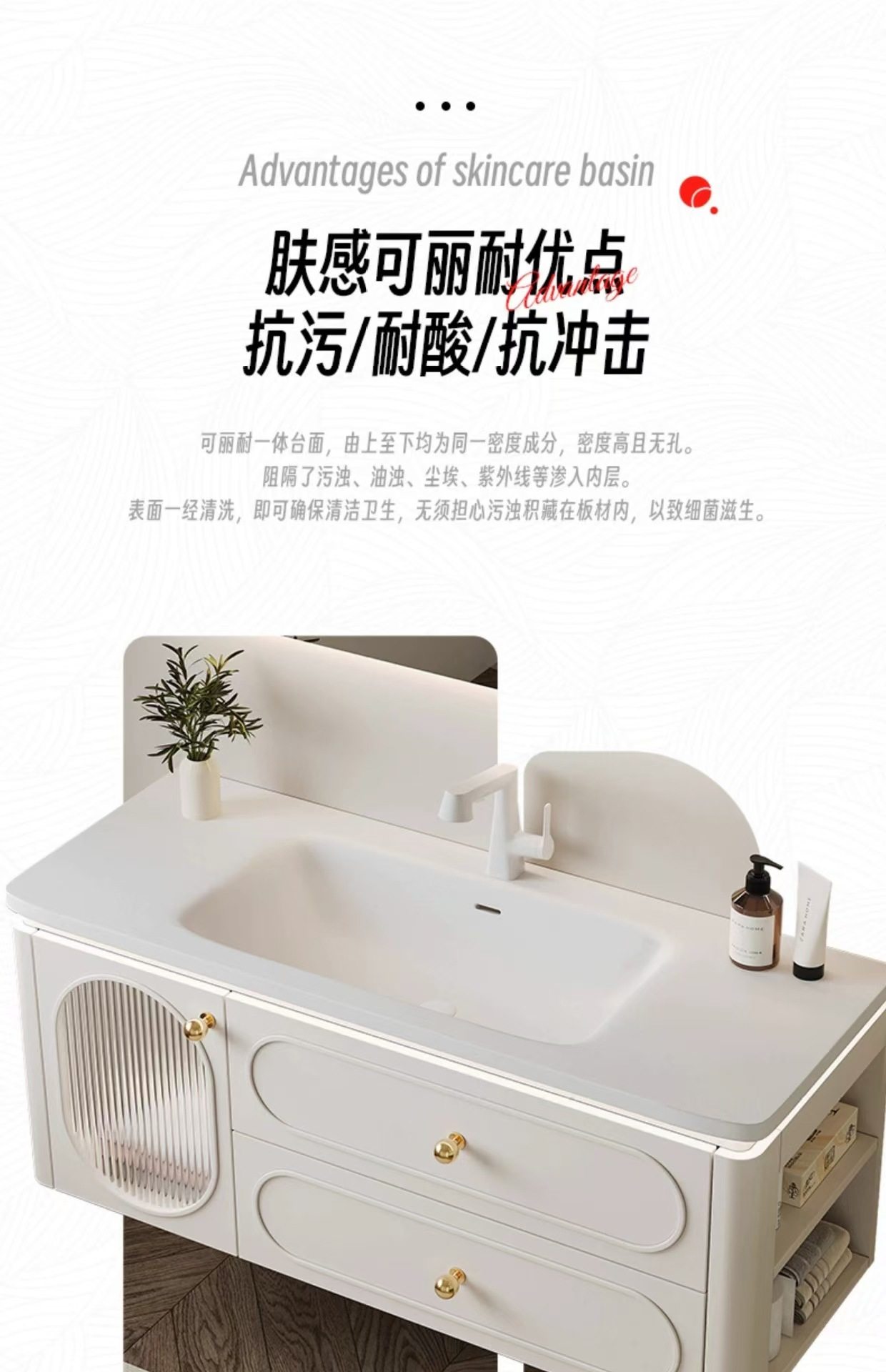洗漱台浴室柜组合陶瓷2024奶油风卫浴橡木洗脸盆新款盆一体可丽耐
