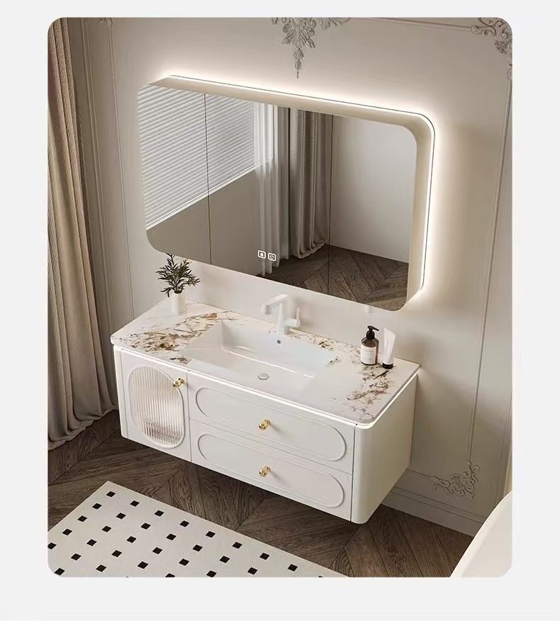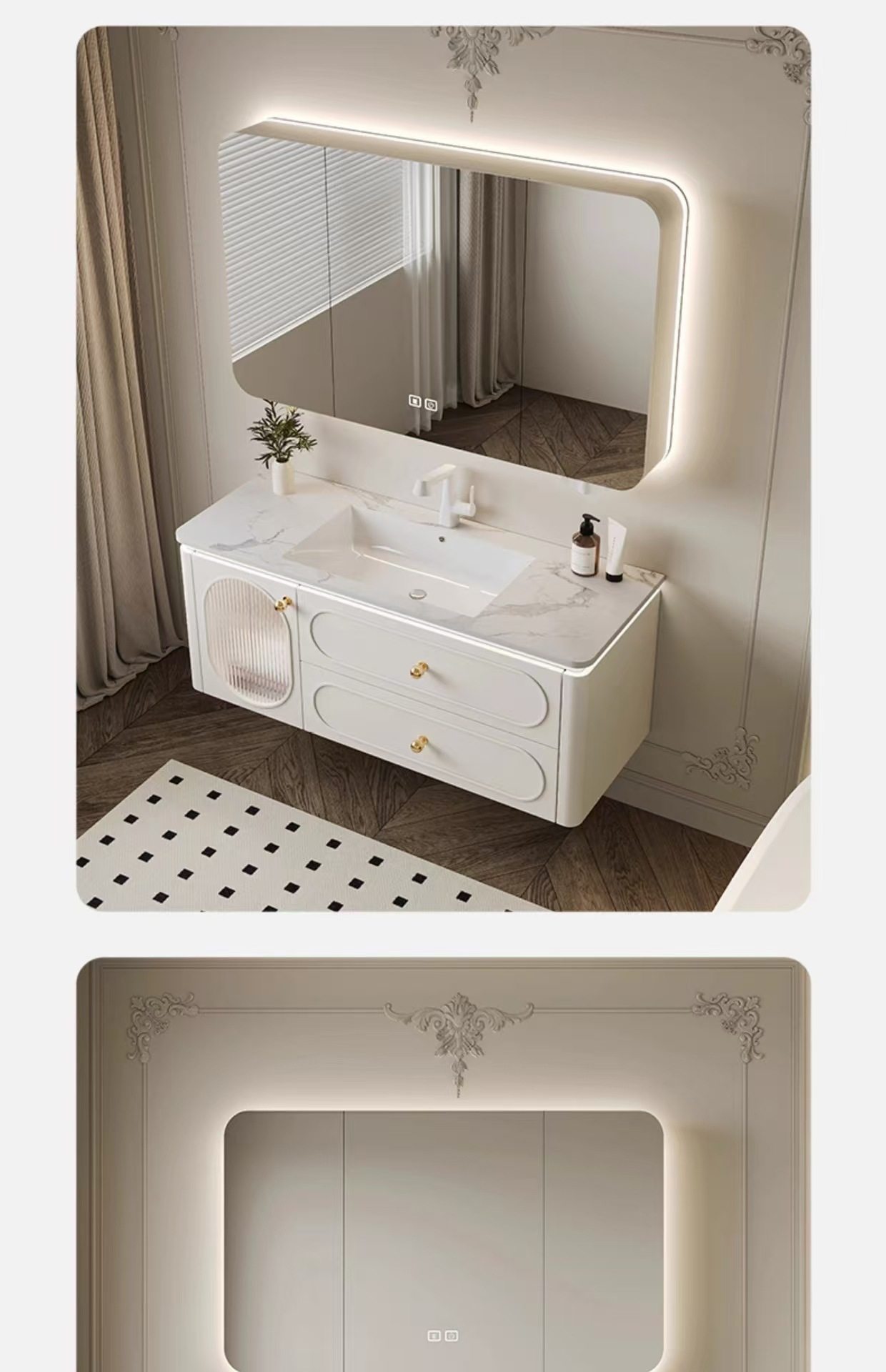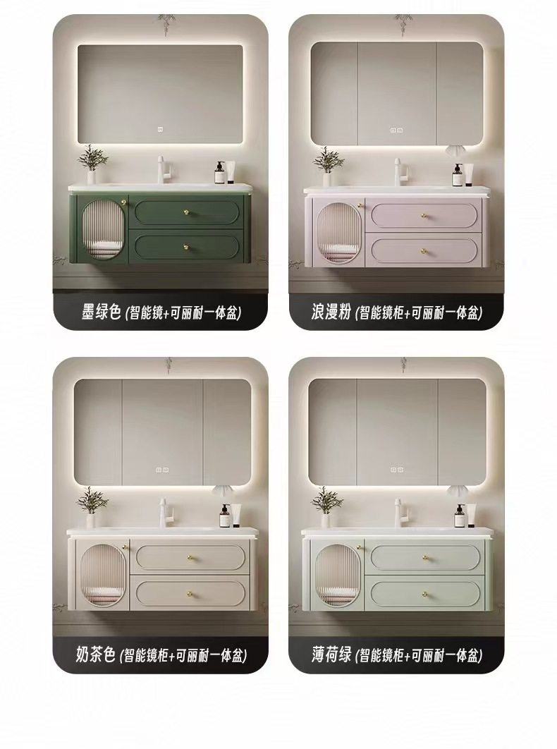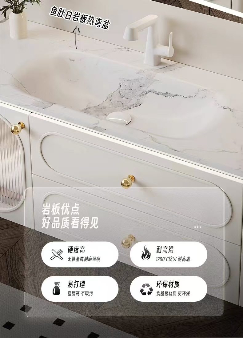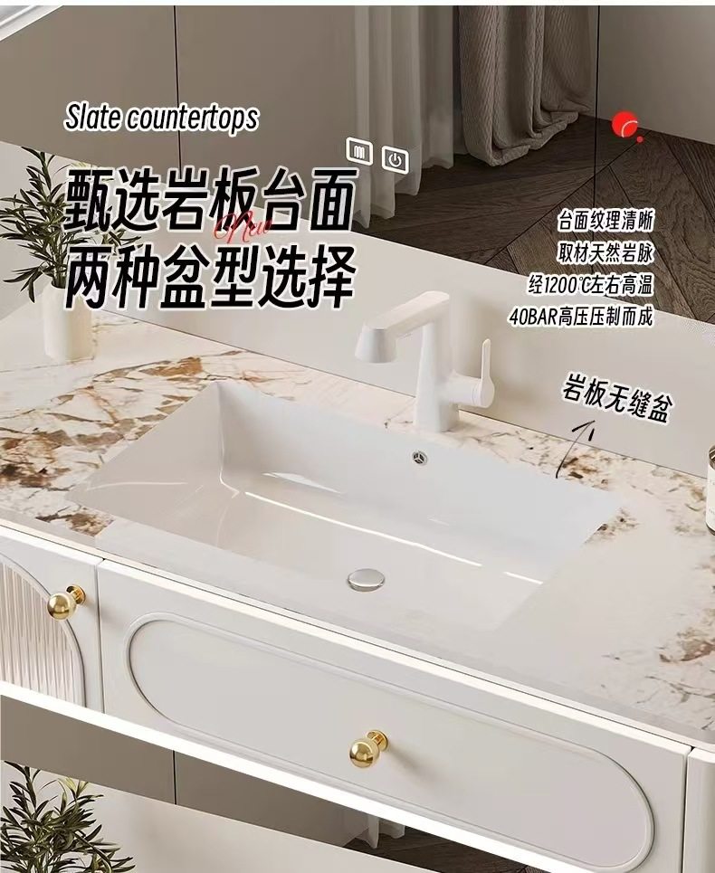 洗漱台浴室柜组合陶瓷2024奶油风卫浴橡木洗脸盆新款盆一体可丽耐