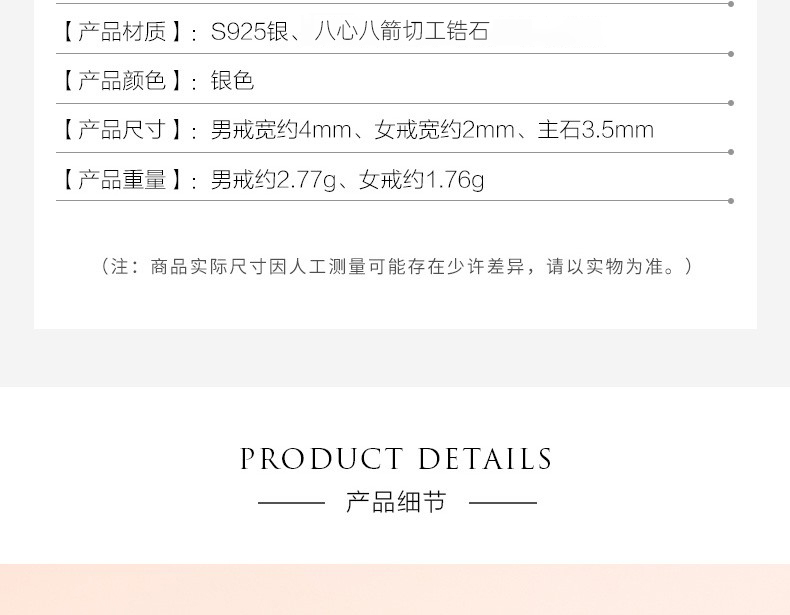 KADER卡蒂罗爱之永恒对戒925情侣戒指女纯银一对对戒设计小众轻奢求婚钻戒款