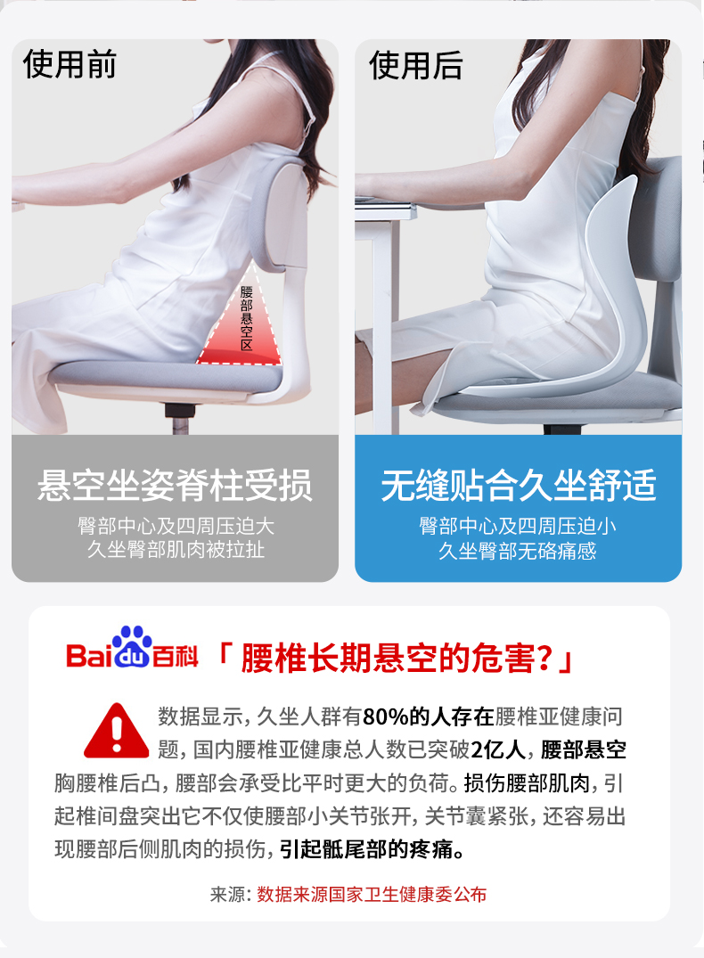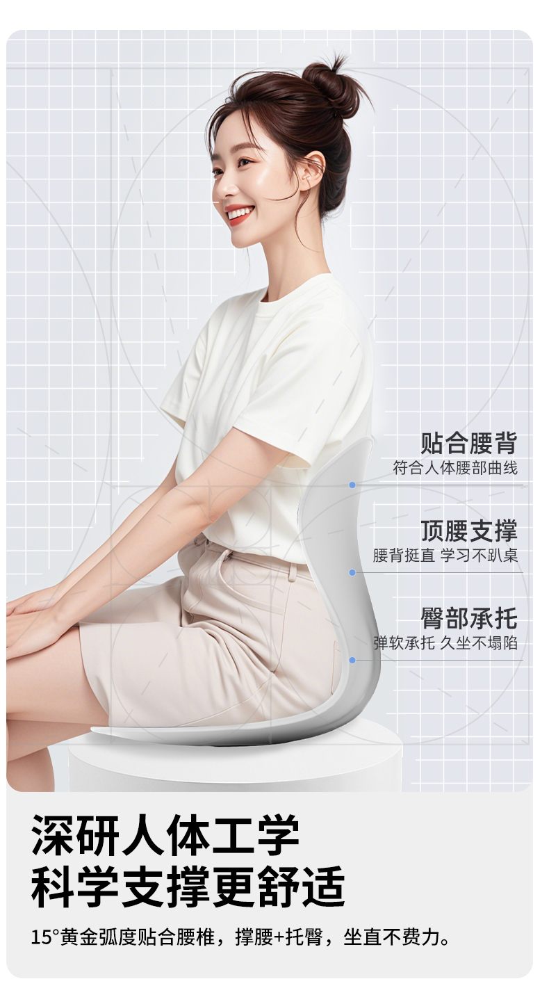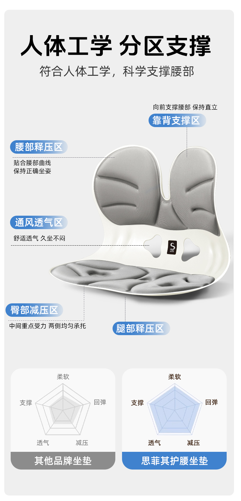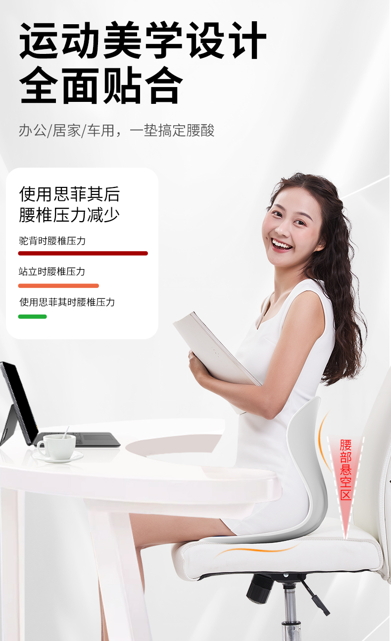 【矫正坐姿】思菲其人体工学护腰坐垫 分区承托 科学护脊护腰 舒适包裹腰椎 久坐不累