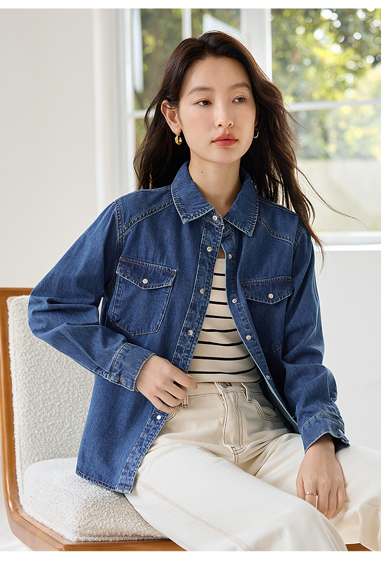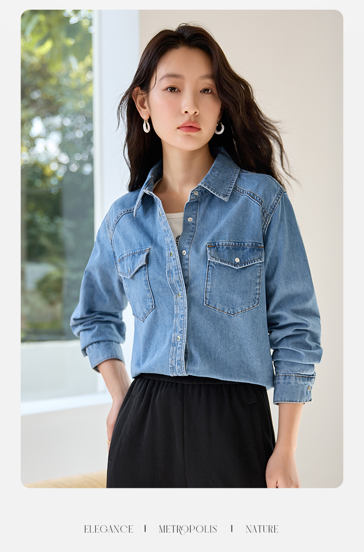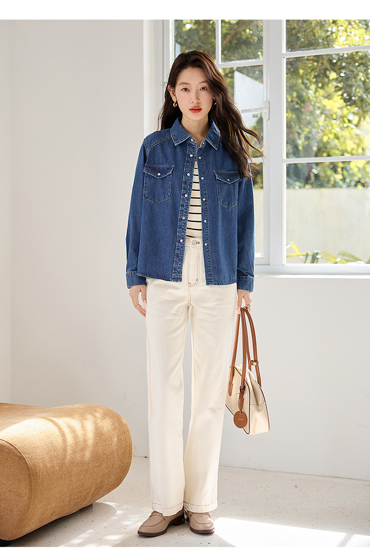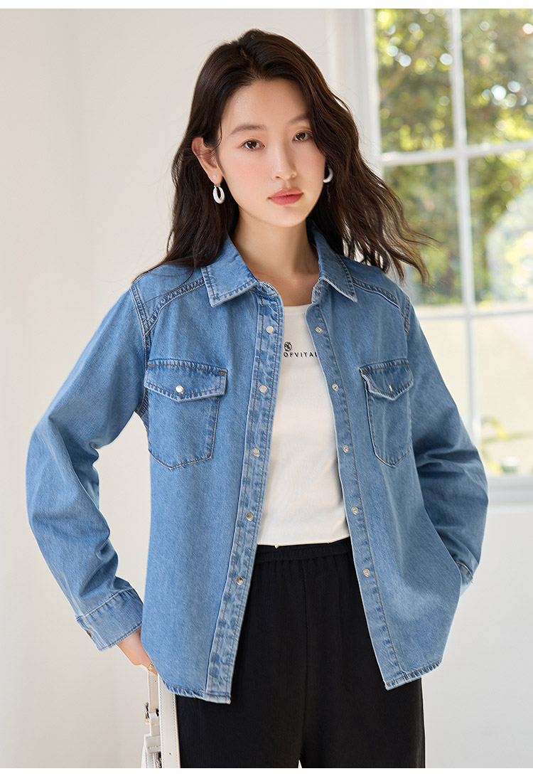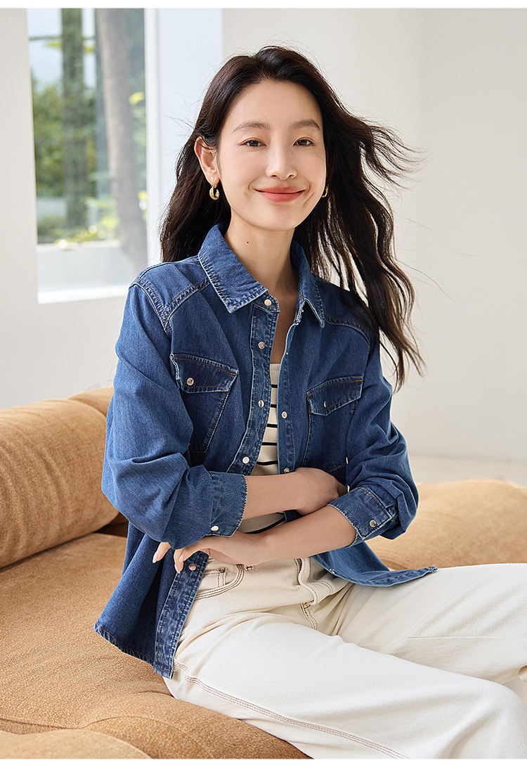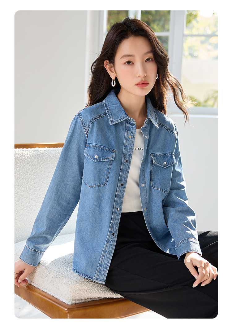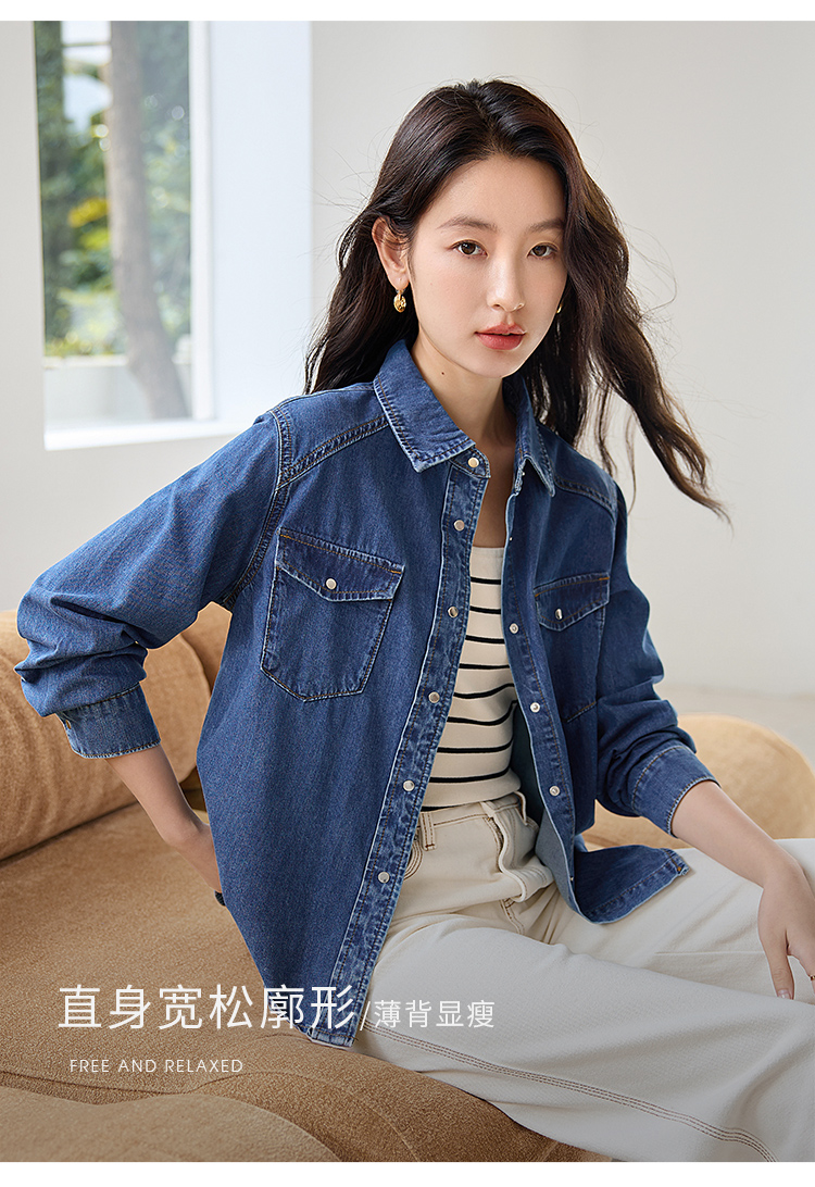 【年终特卖】熙世界牛仔衬衫春秋2025新款时尚宽松休闲复古纯棉长袖衬衣外套