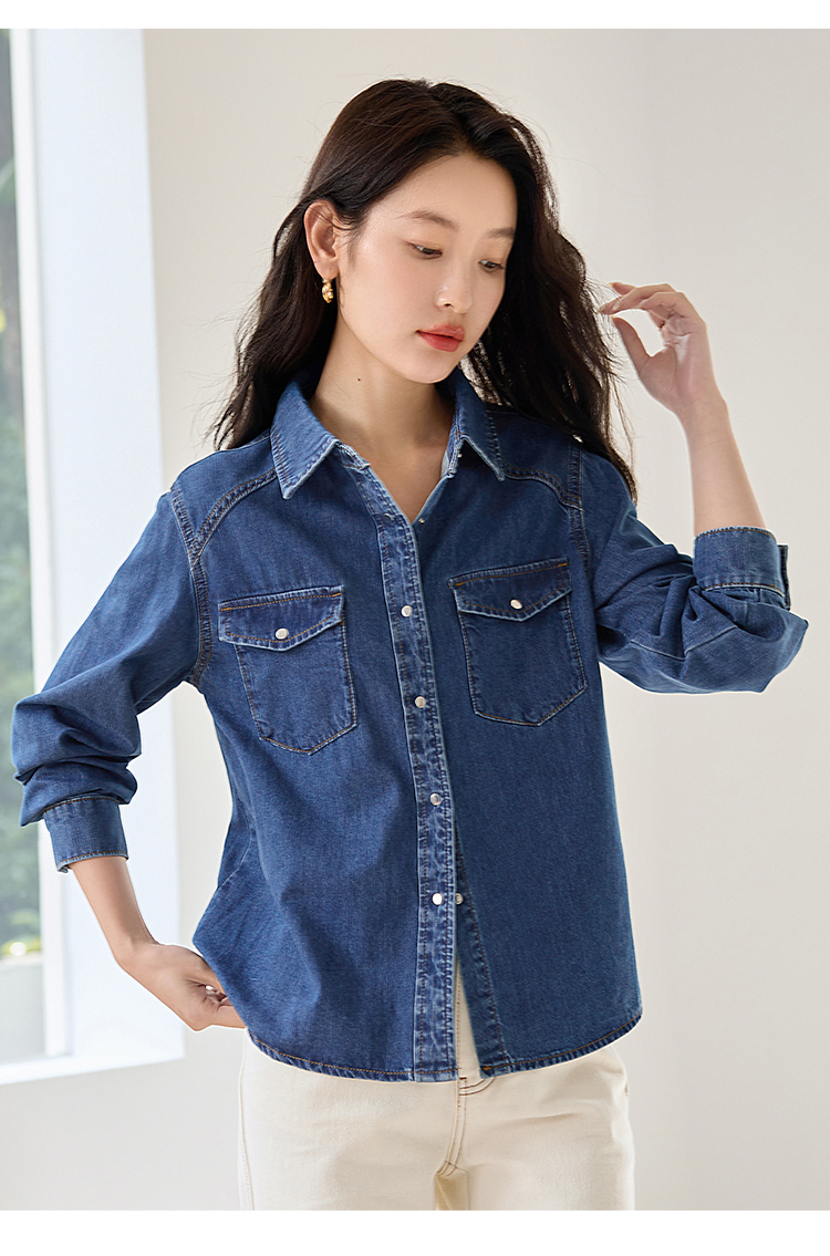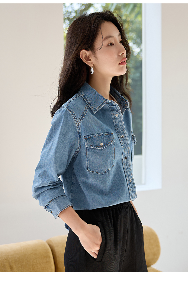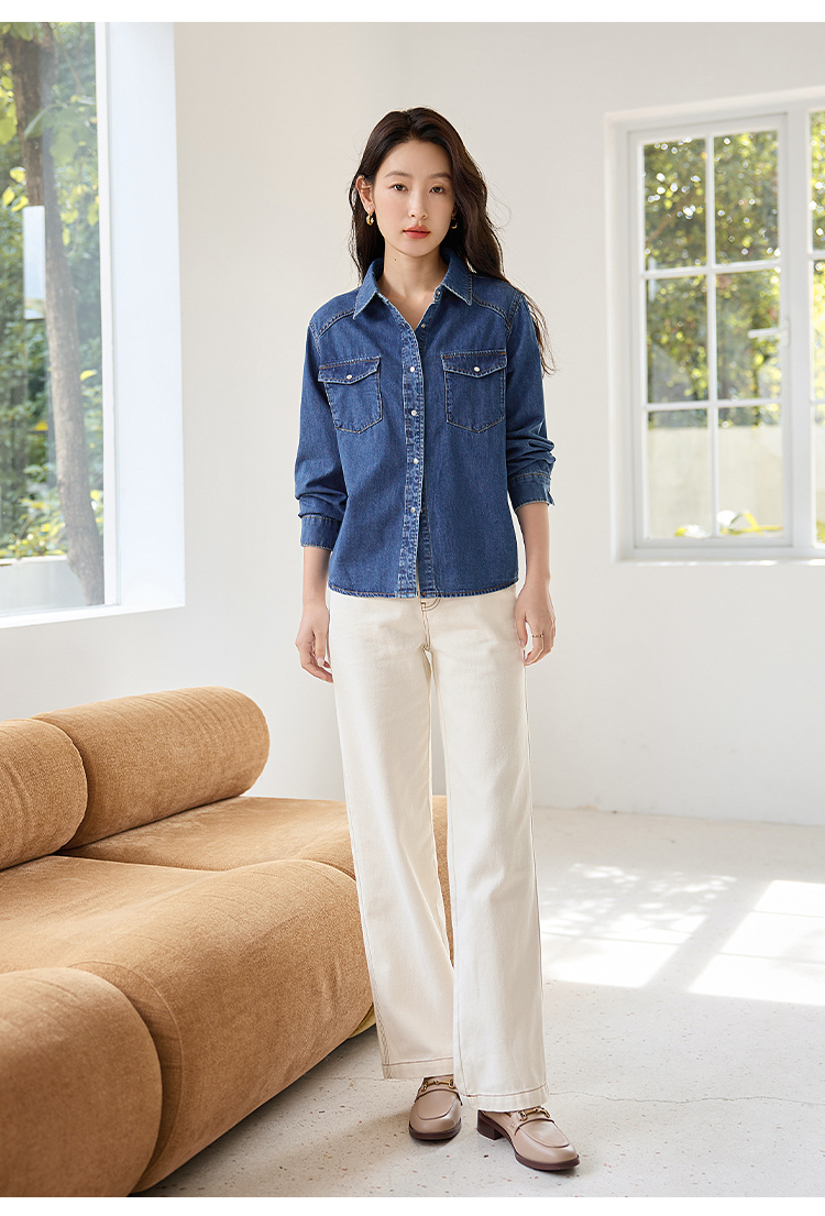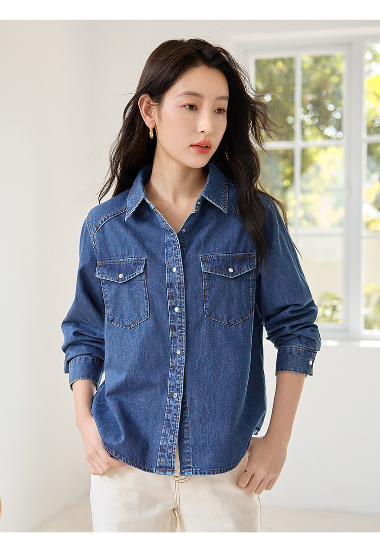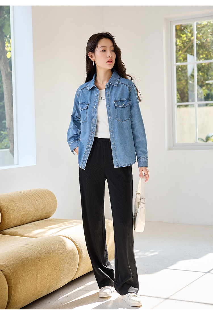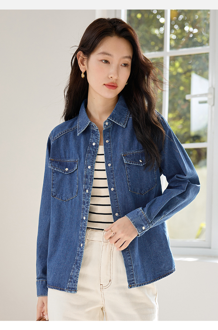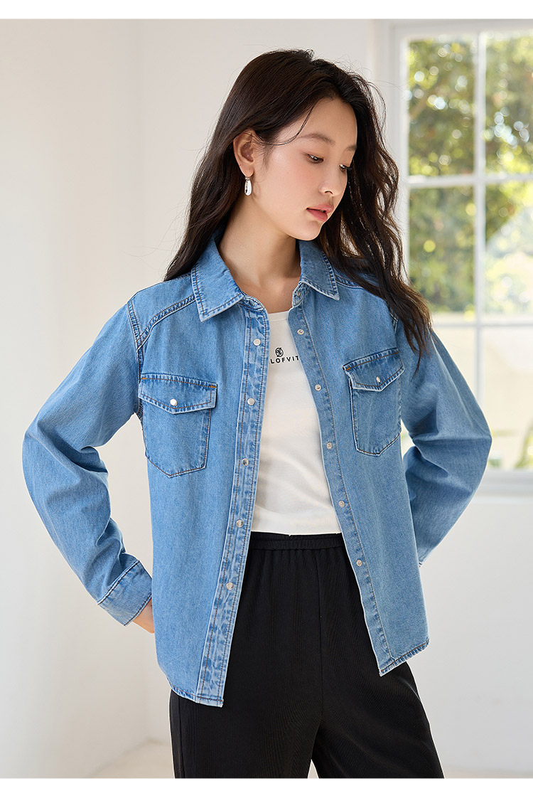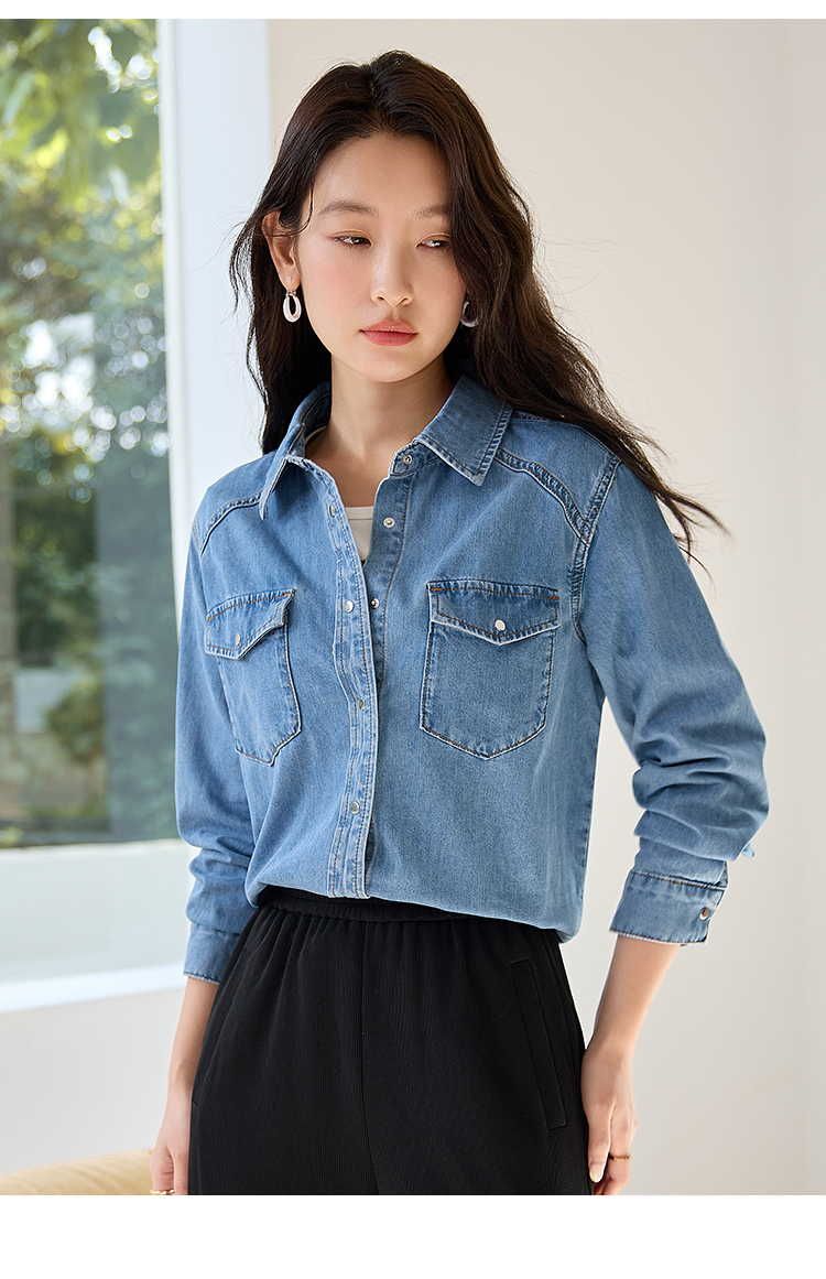 【年终特卖】熙世界牛仔衬衫春秋2025新款时尚宽松休闲复古纯棉长袖衬衣外套