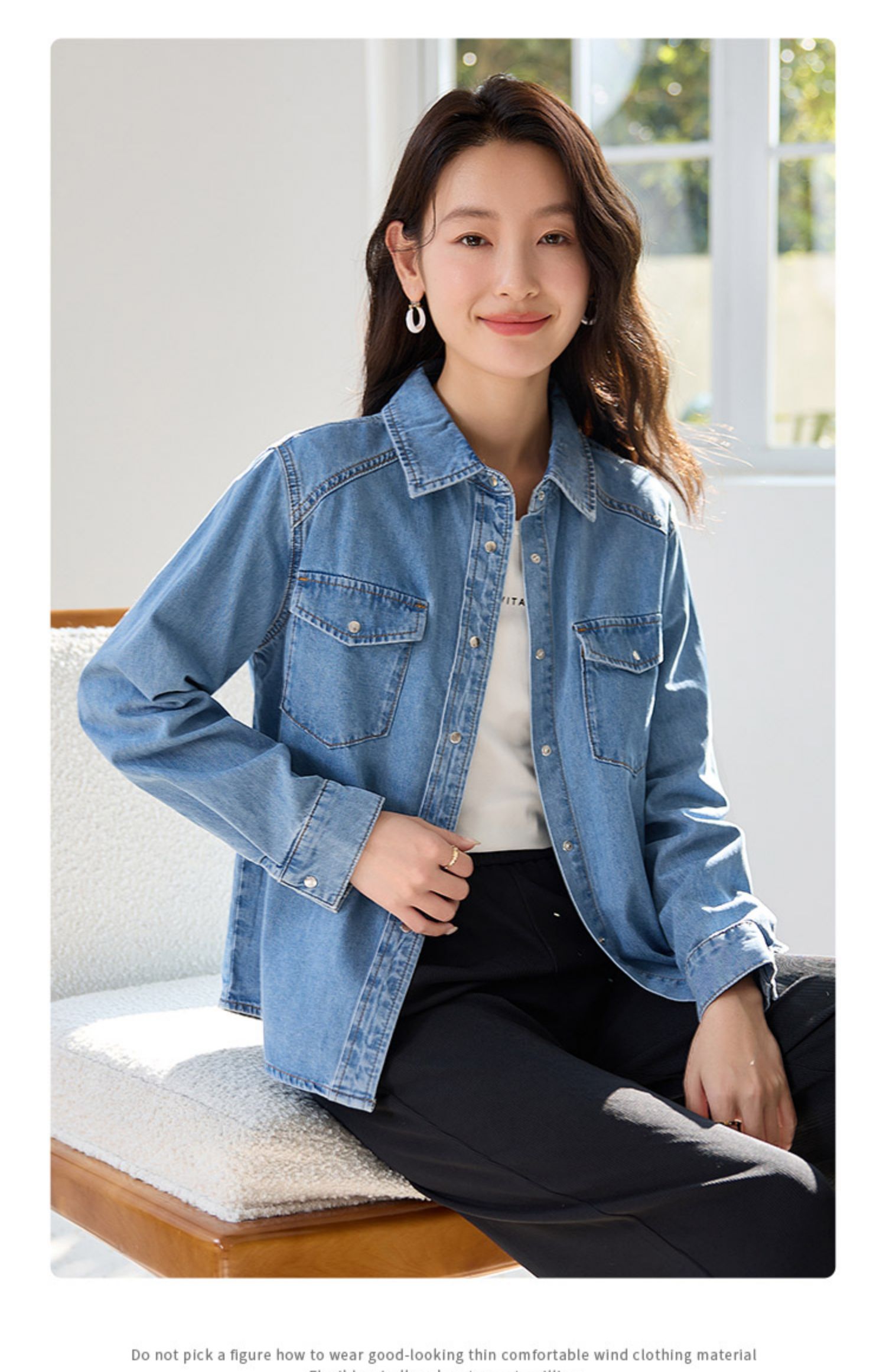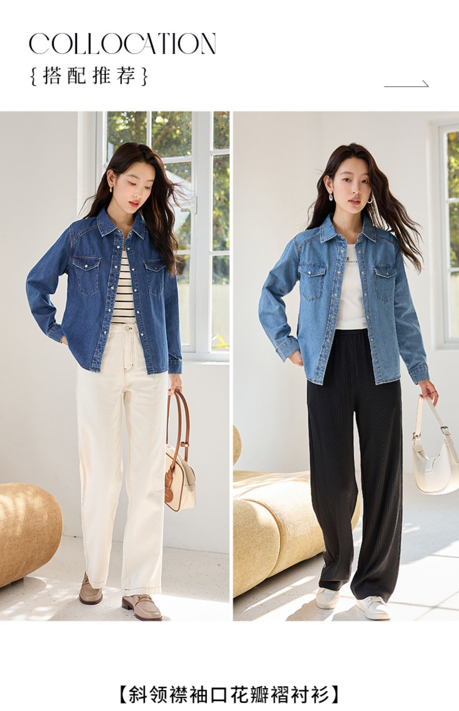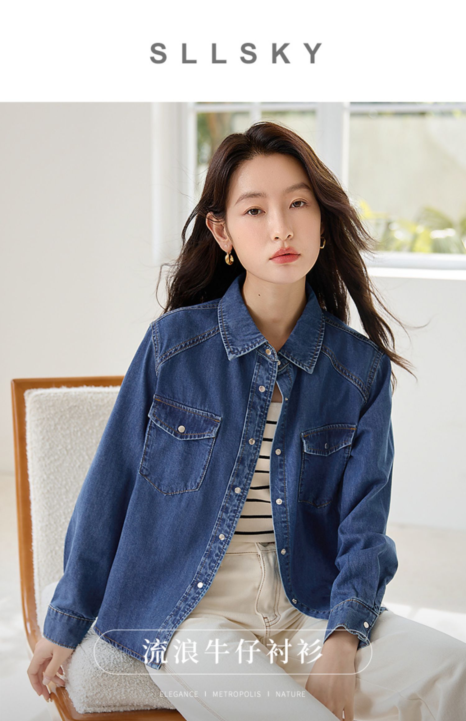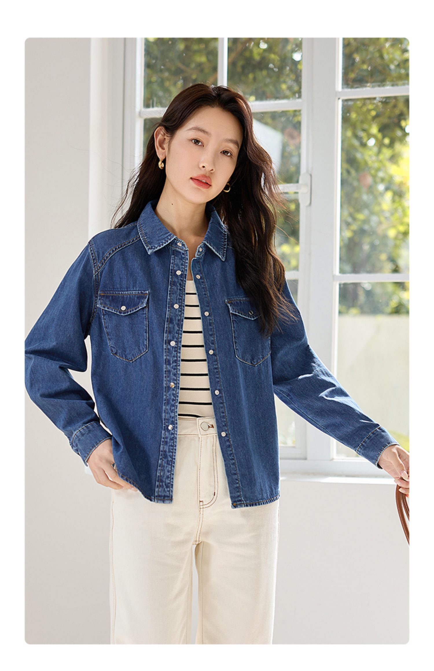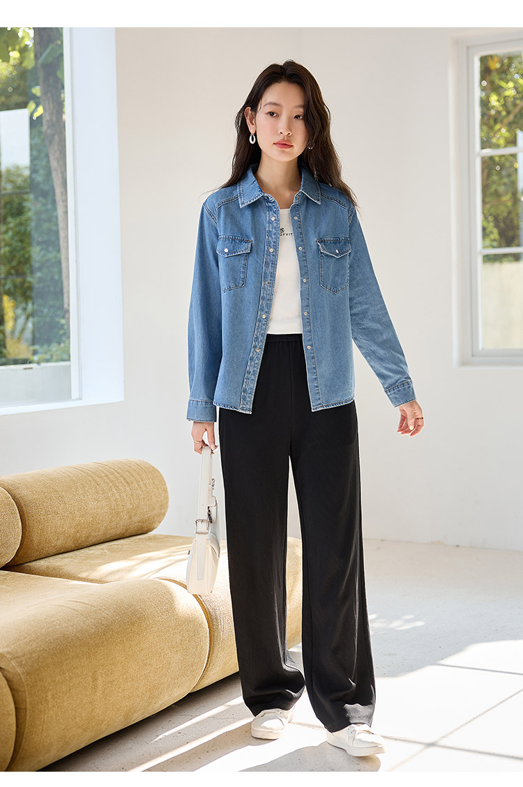 【年终特卖】熙世界牛仔衬衫春秋2025新款时尚宽松休闲复古纯棉长袖衬衣外套