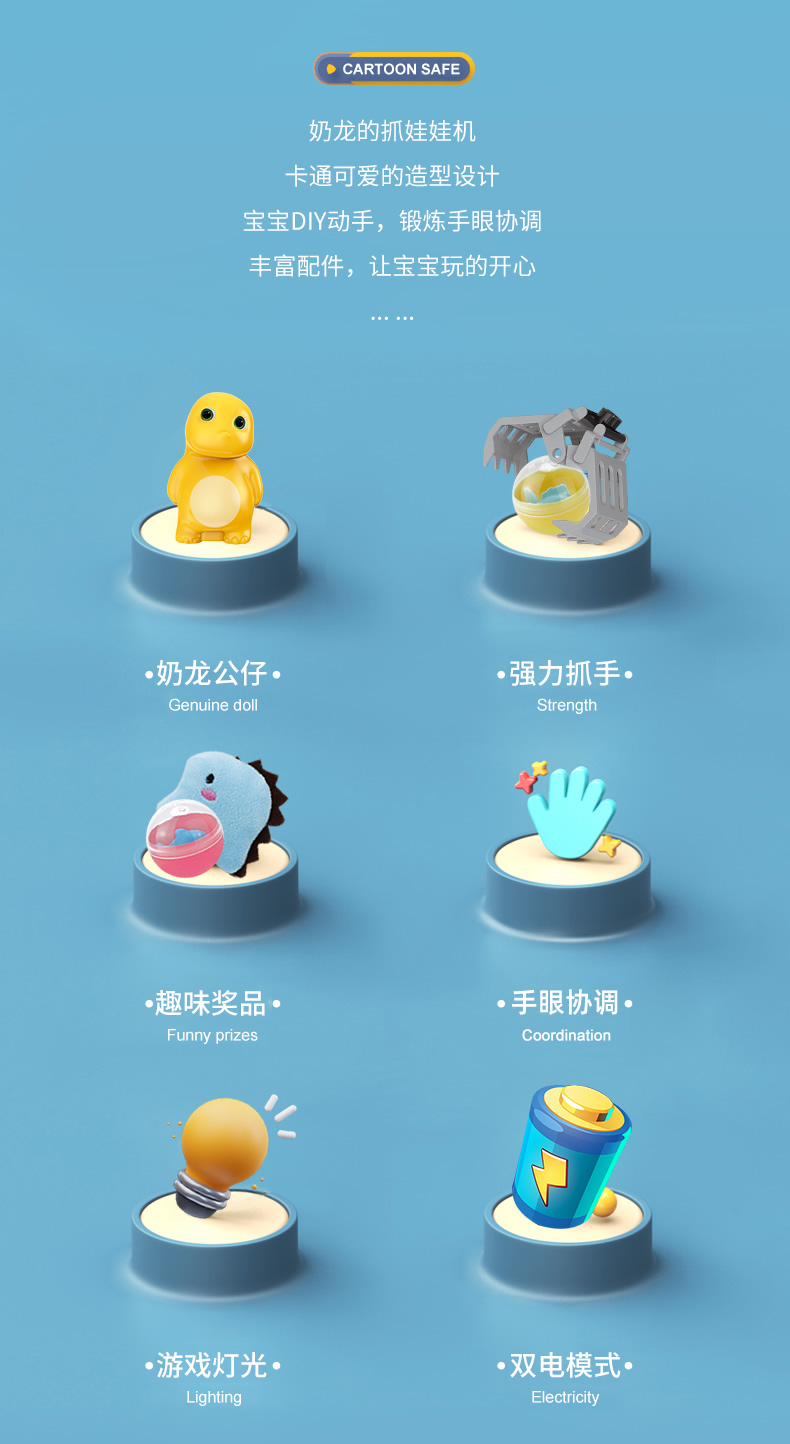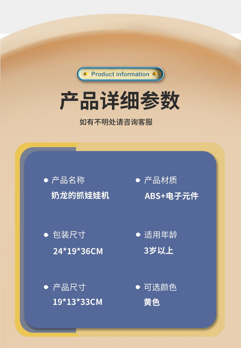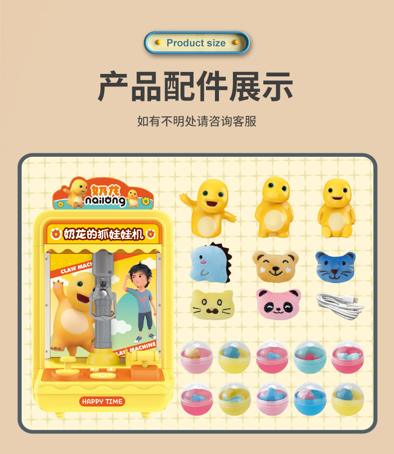【带灯光音乐的抓娃娃机】奶龙抓娃娃机 儿童抓娃娃机小型家用迷你扭蛋机