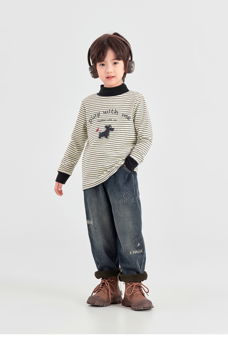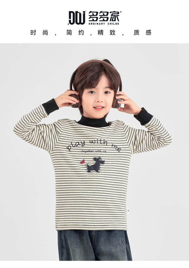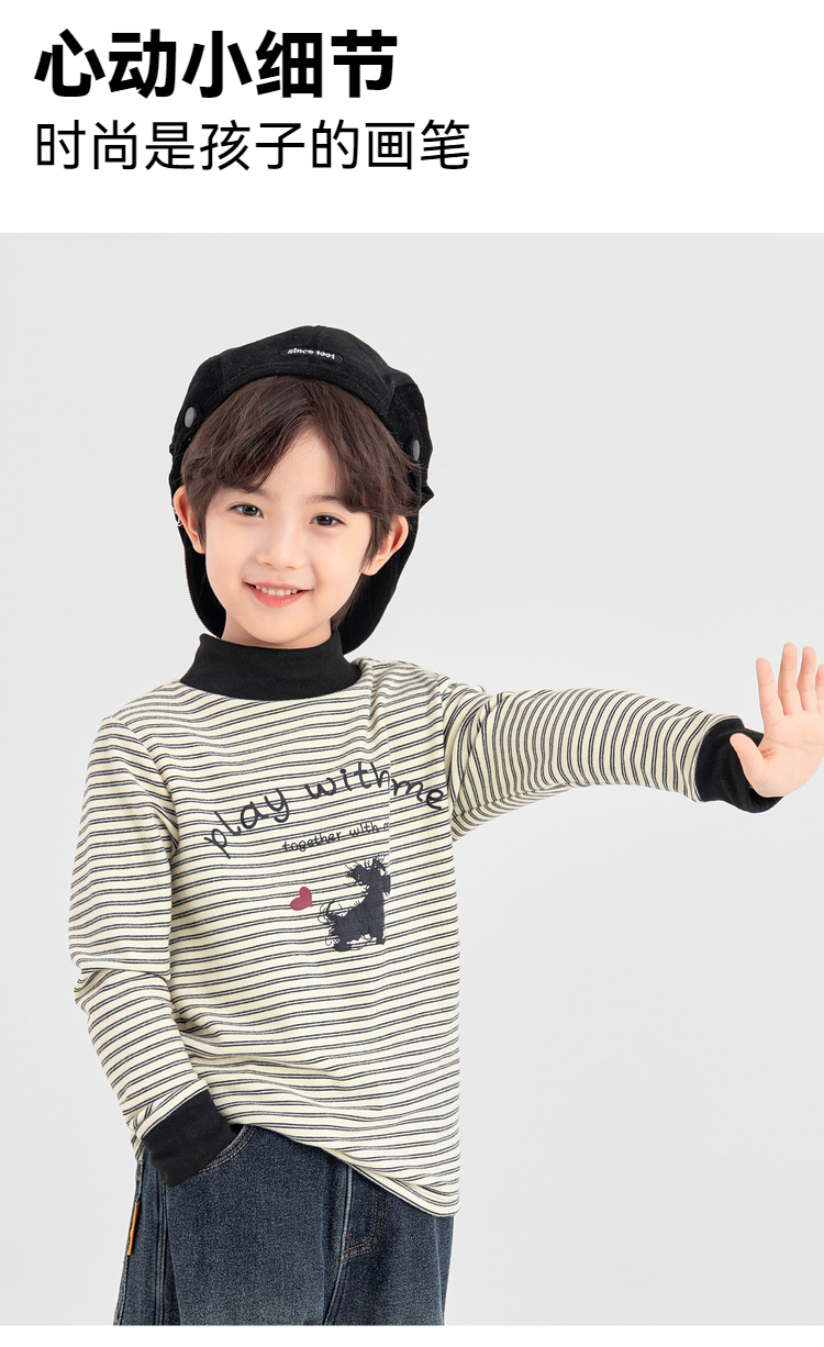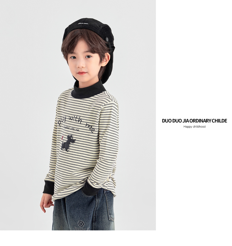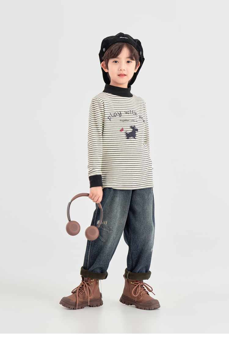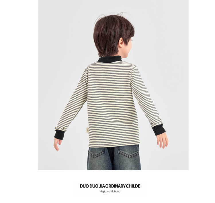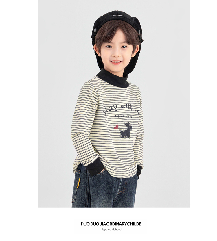 【件件底价,童装双倍积分】多多家男童打底衫磨毛2025秋冬新款儿童中大童条纹印花长袖T恤潮11182