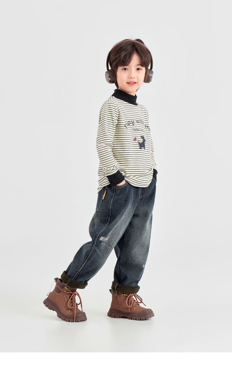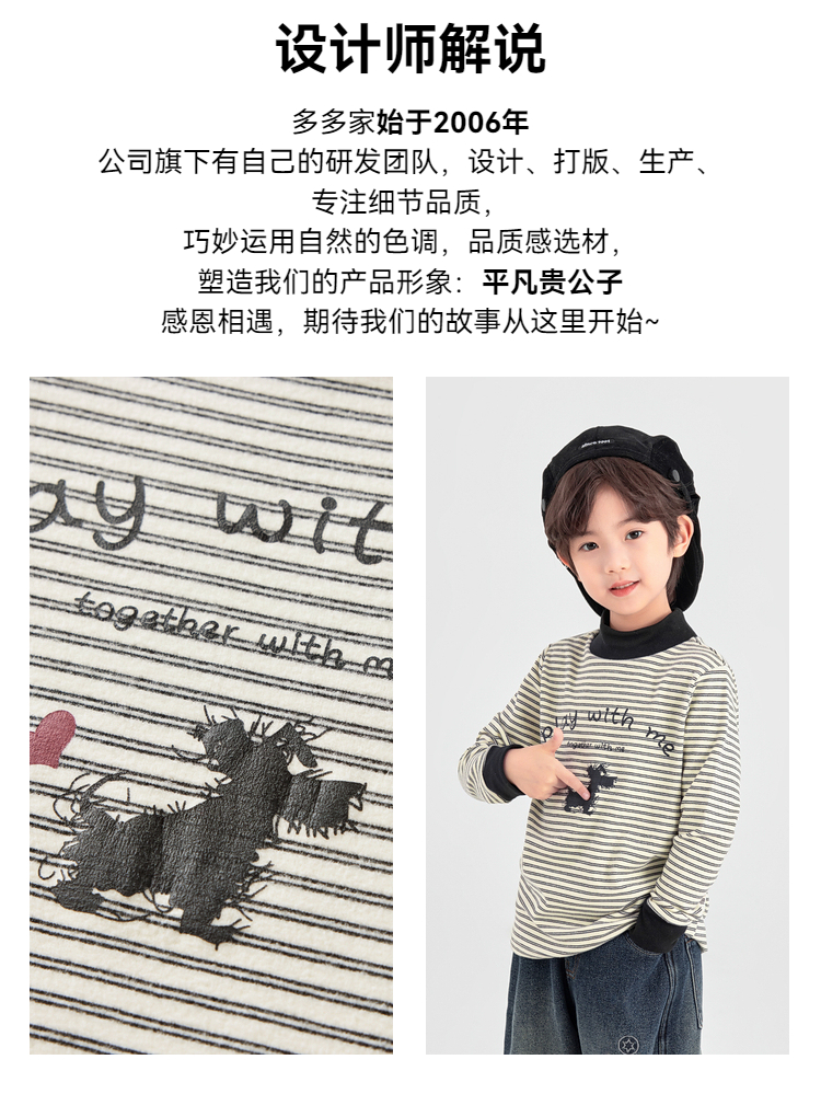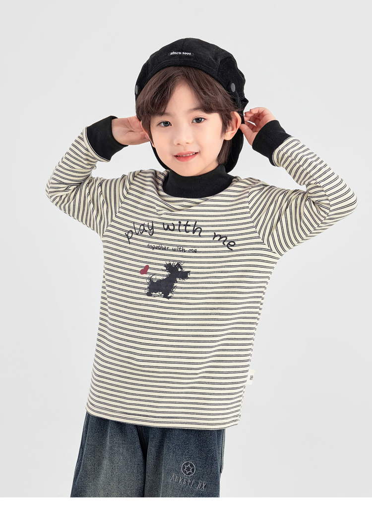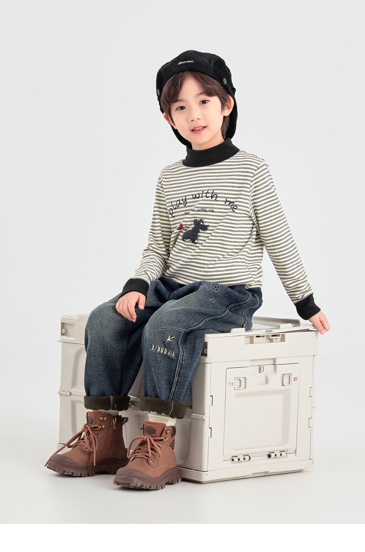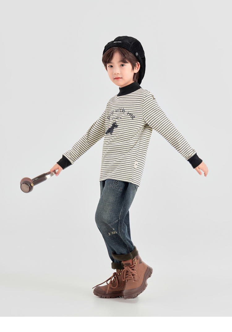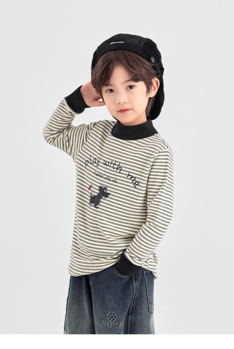 【件件底价,童装双倍积分】多多家男童打底衫磨毛2025秋冬新款儿童中大童条纹印花长袖T恤潮11182