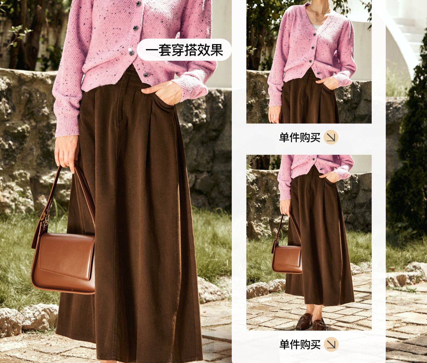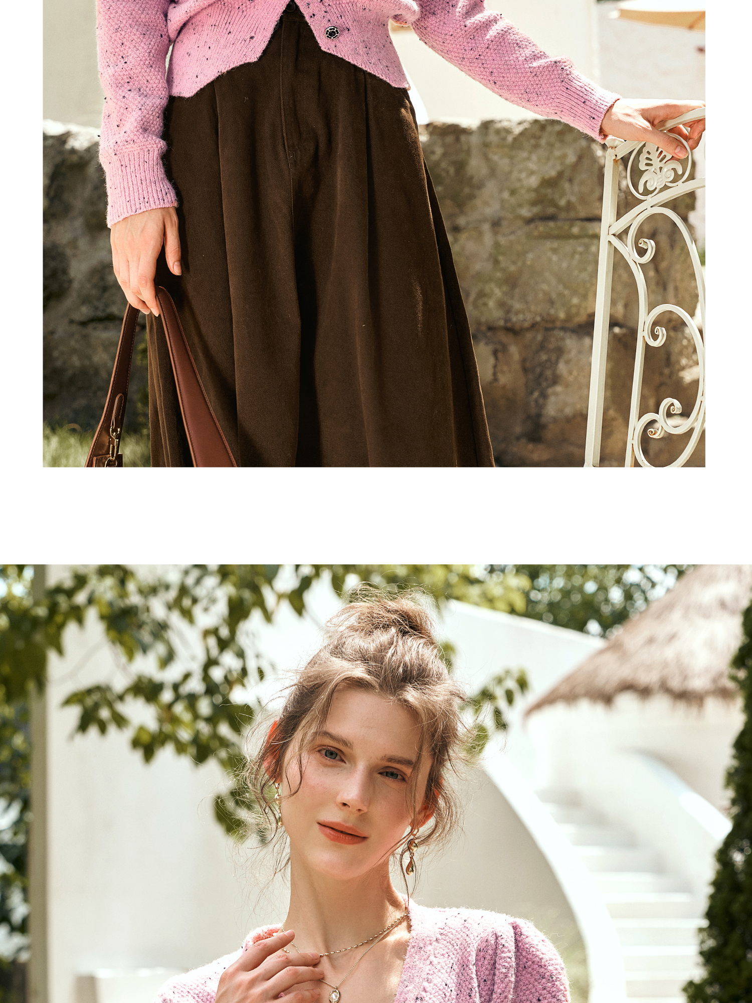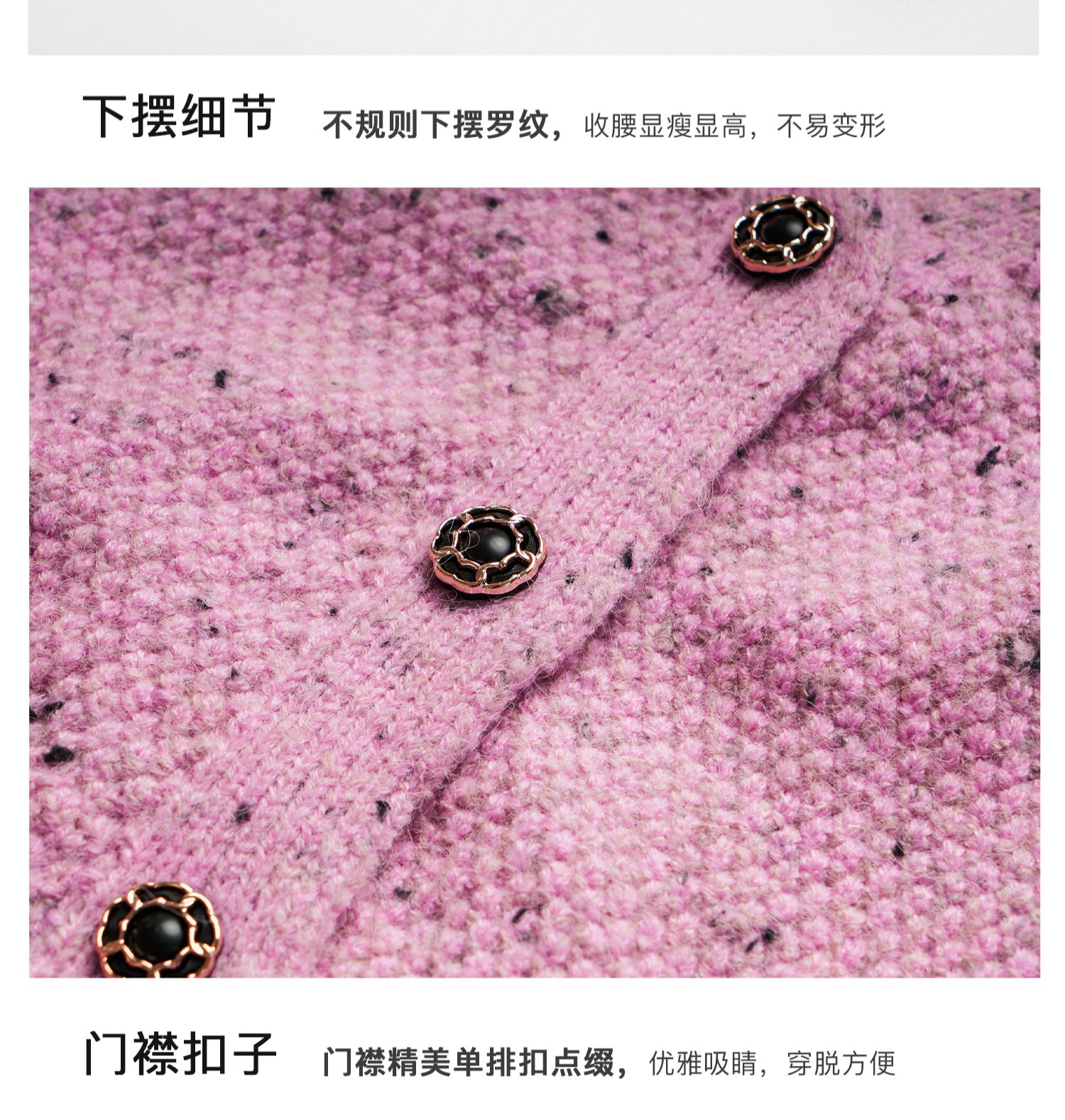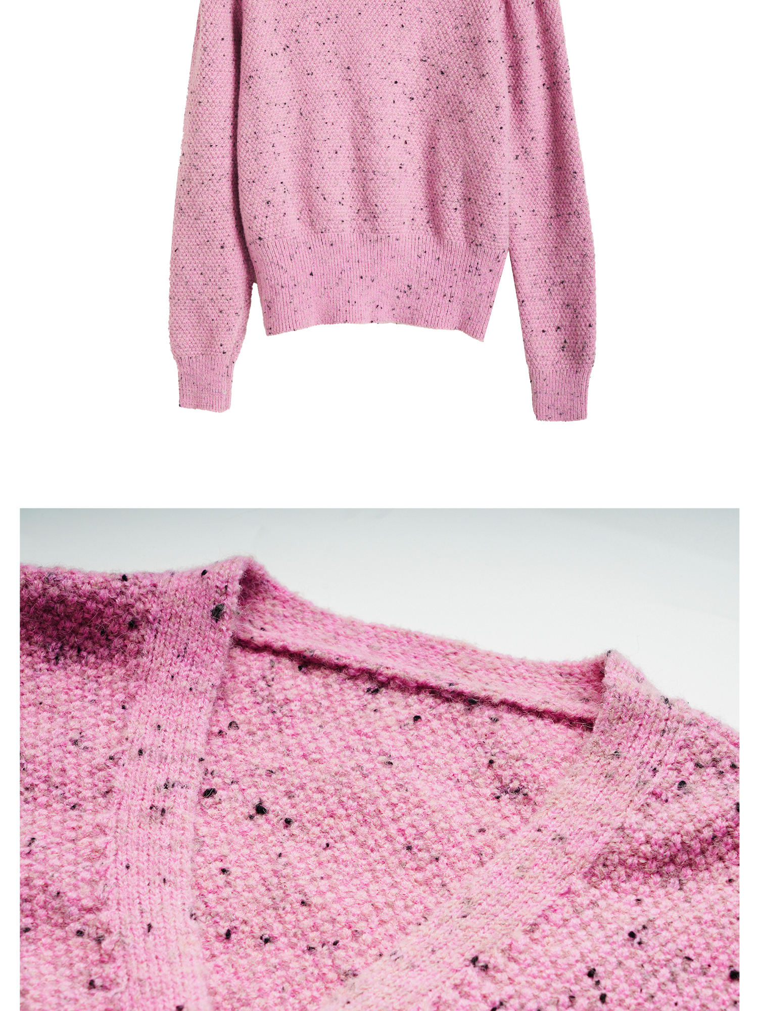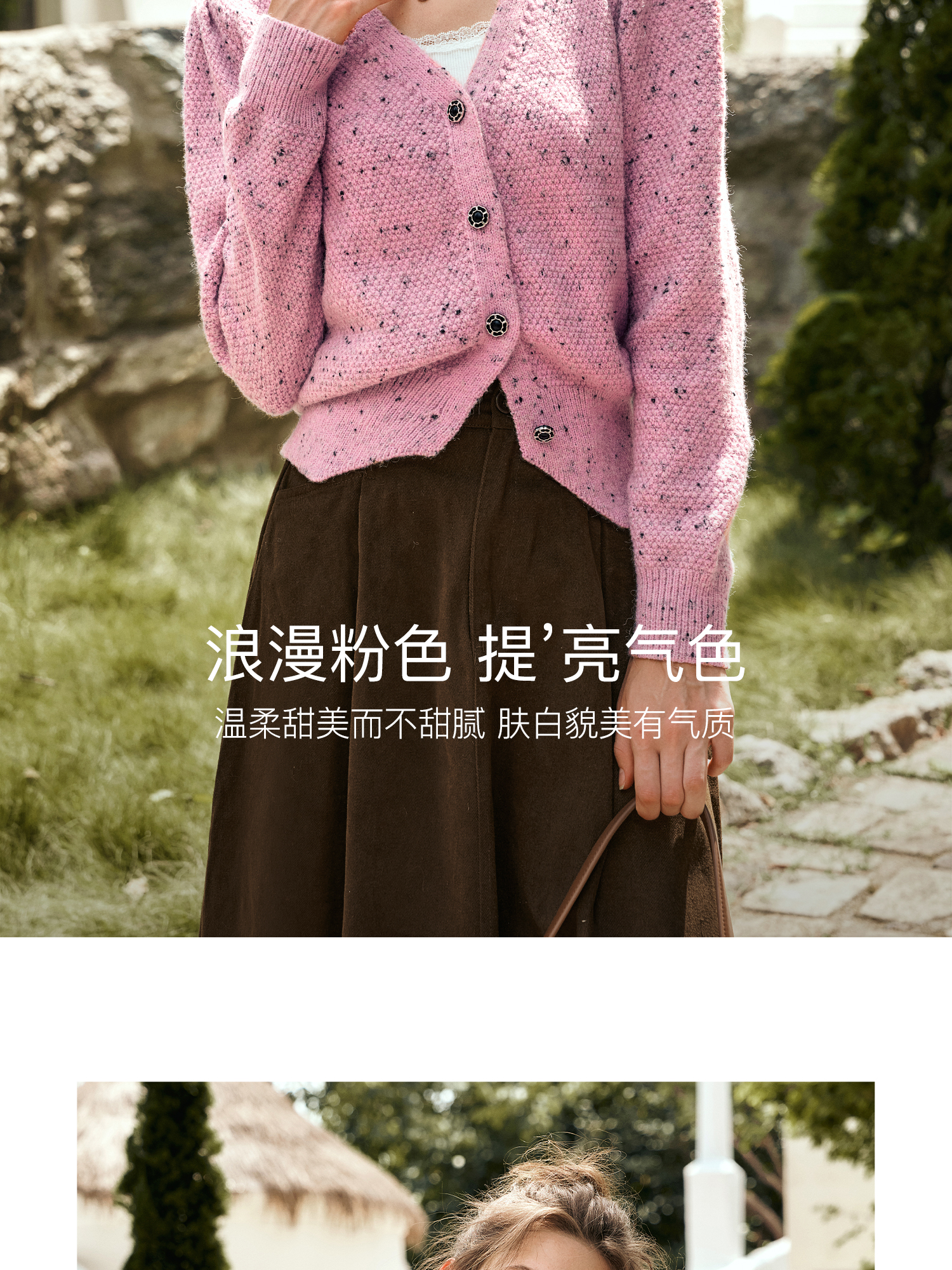 OLrain欧芮儿粉色毛衣开衫女秋季2024新款法式V领泡泡袖针织上衣