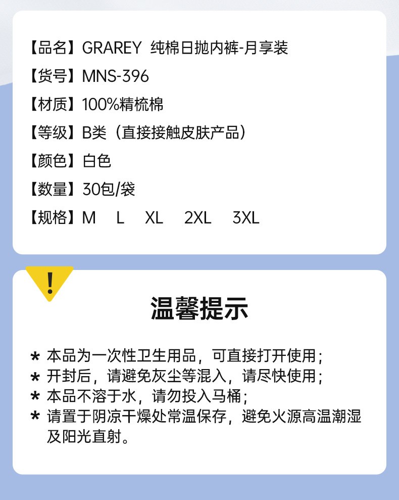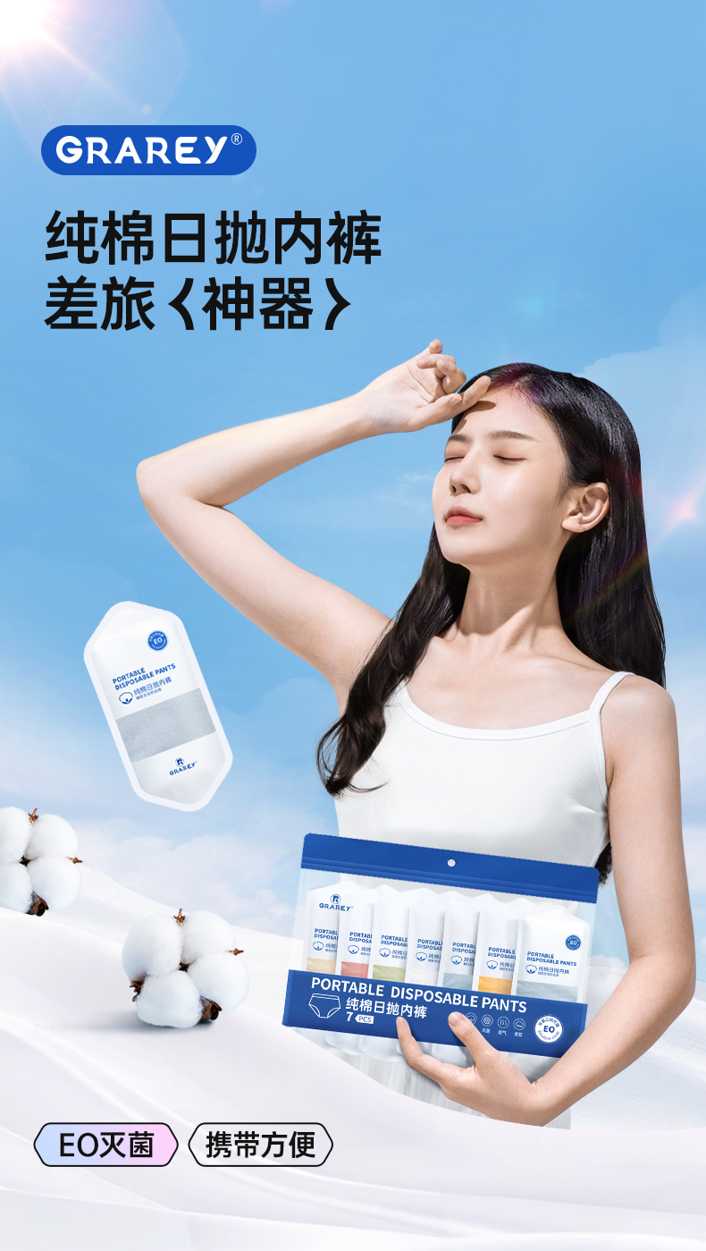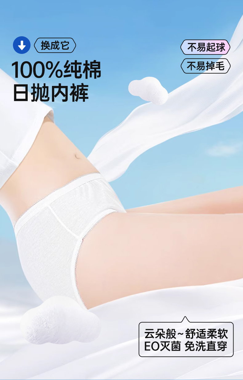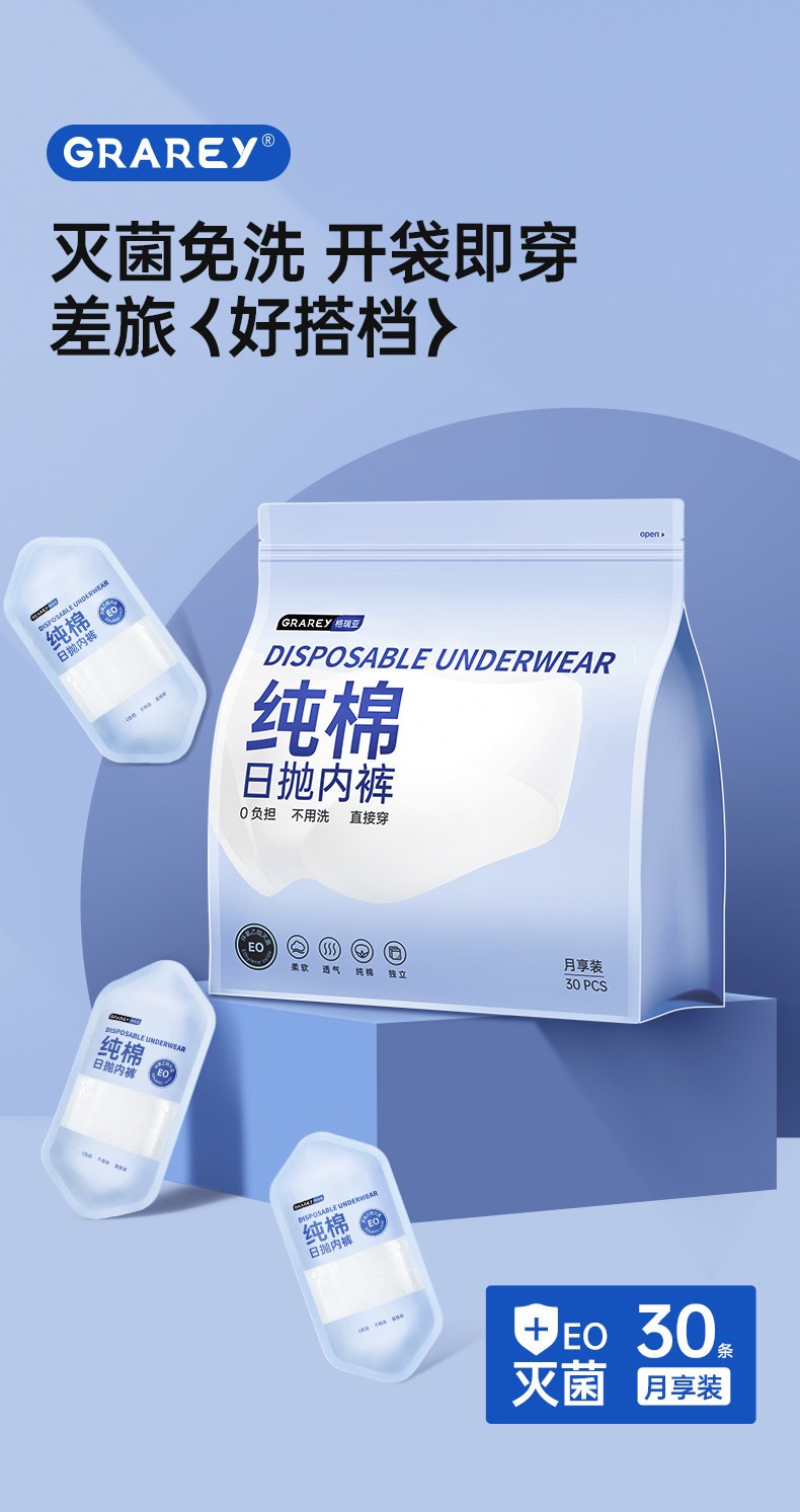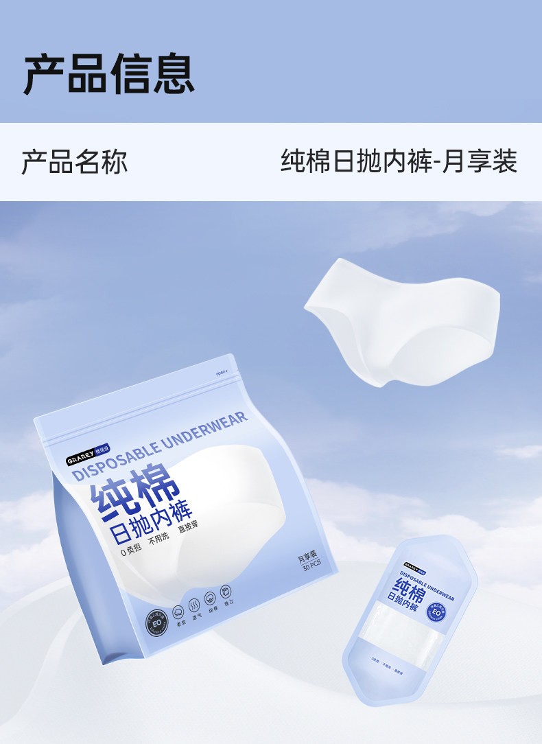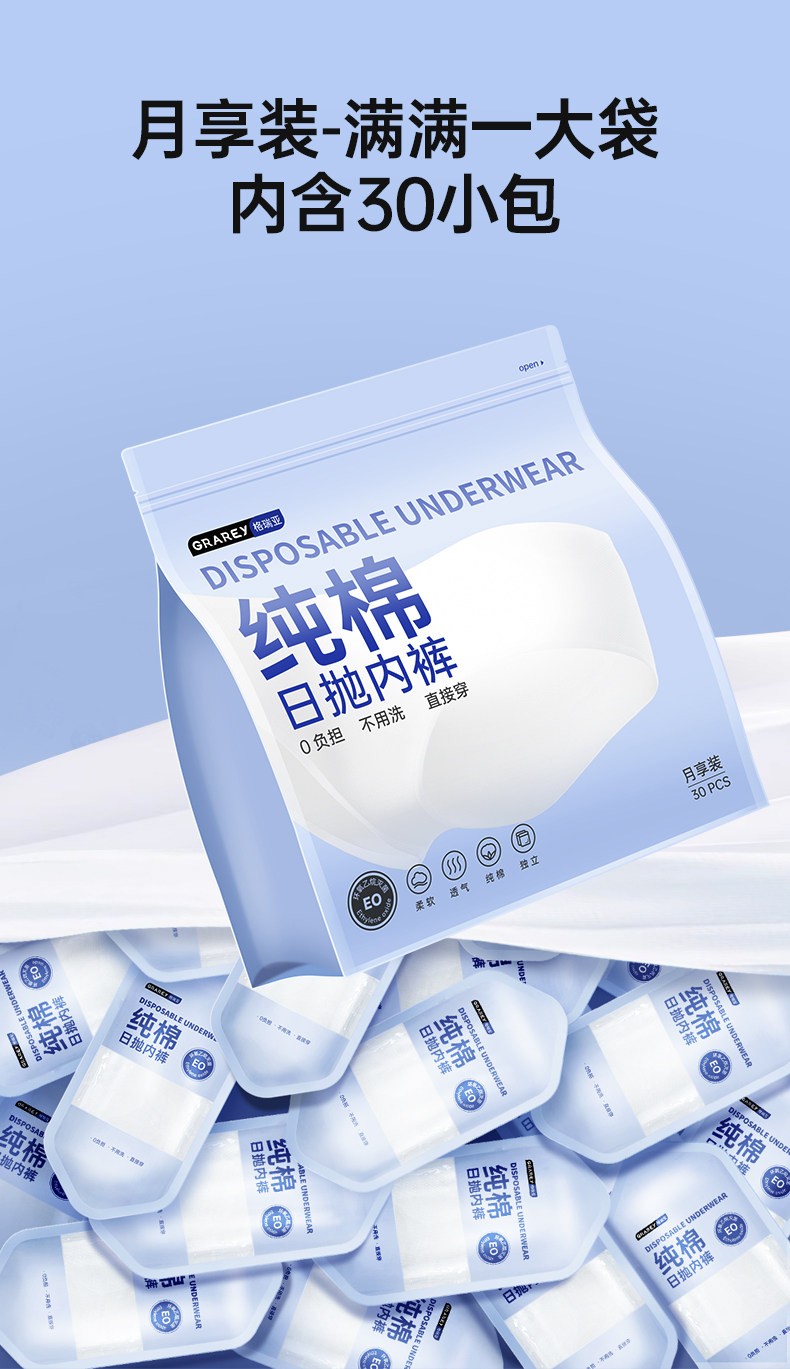 GRAREY格瑞亚纯棉日抛一次性内裤 100%精梳棉 即拆即穿,柔软舒适透气无菌【新春好物随行专场】