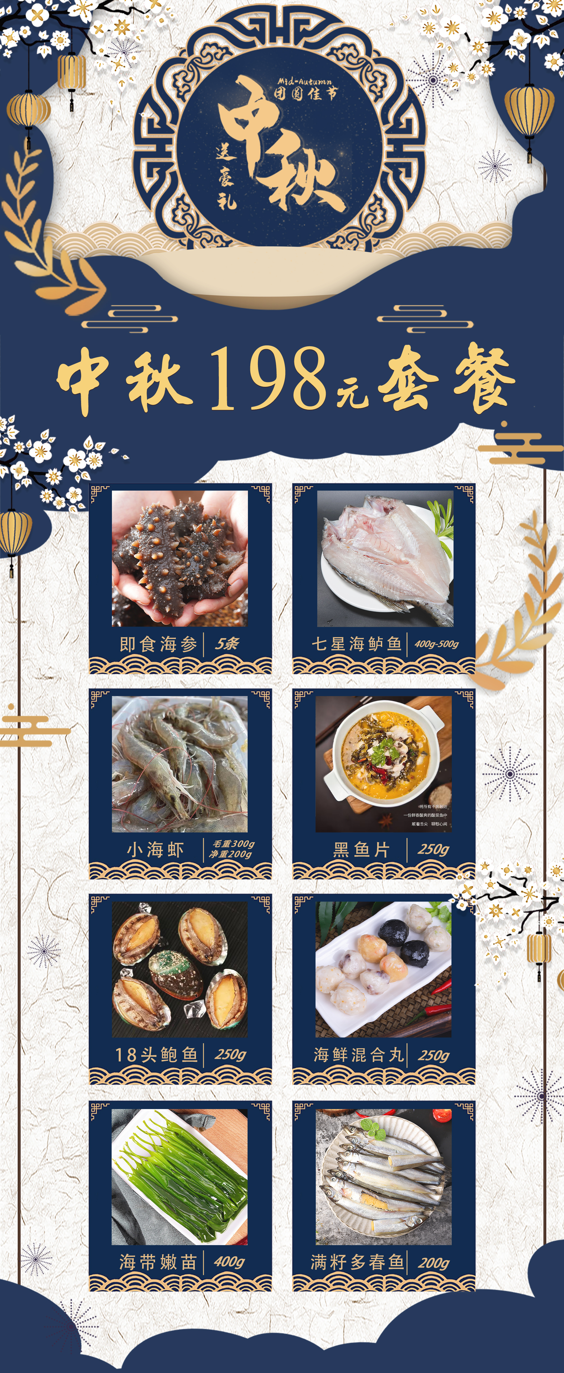 套餐包含:即食海参(5条)、七星海鲈鱼(400g-500g)、小海虾(毛重300g-净重200g)、黑鱼片(250g)、18头鲍鱼(250g)、海鲜混合丸(250g)、海带嫩苗(400g)、满籽多春鱼(200g):福建东山岛-18℃冷冻保存海鲜产品收到请尽快食用,口感更佳