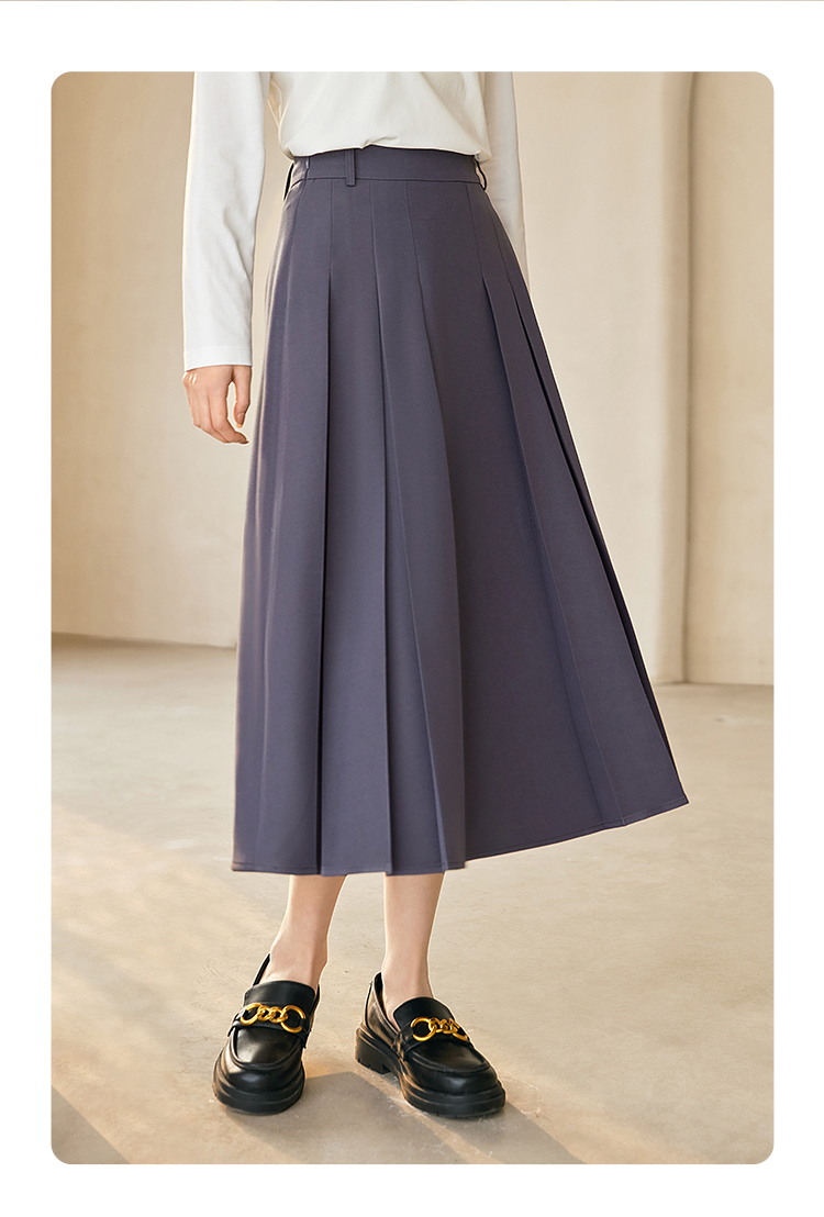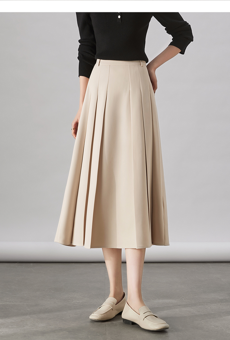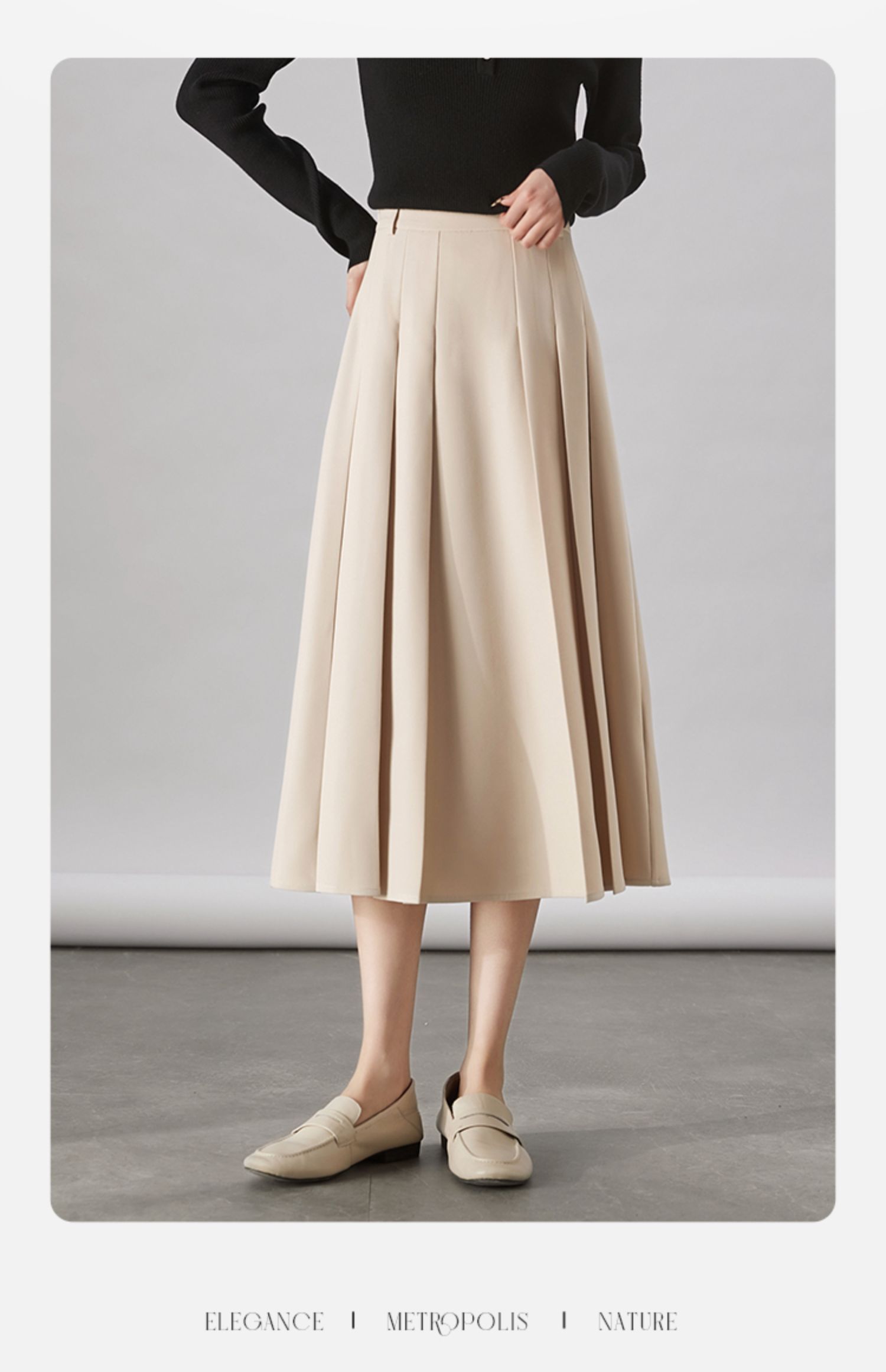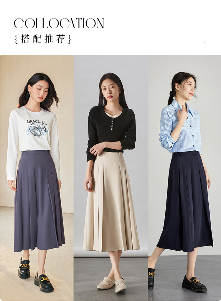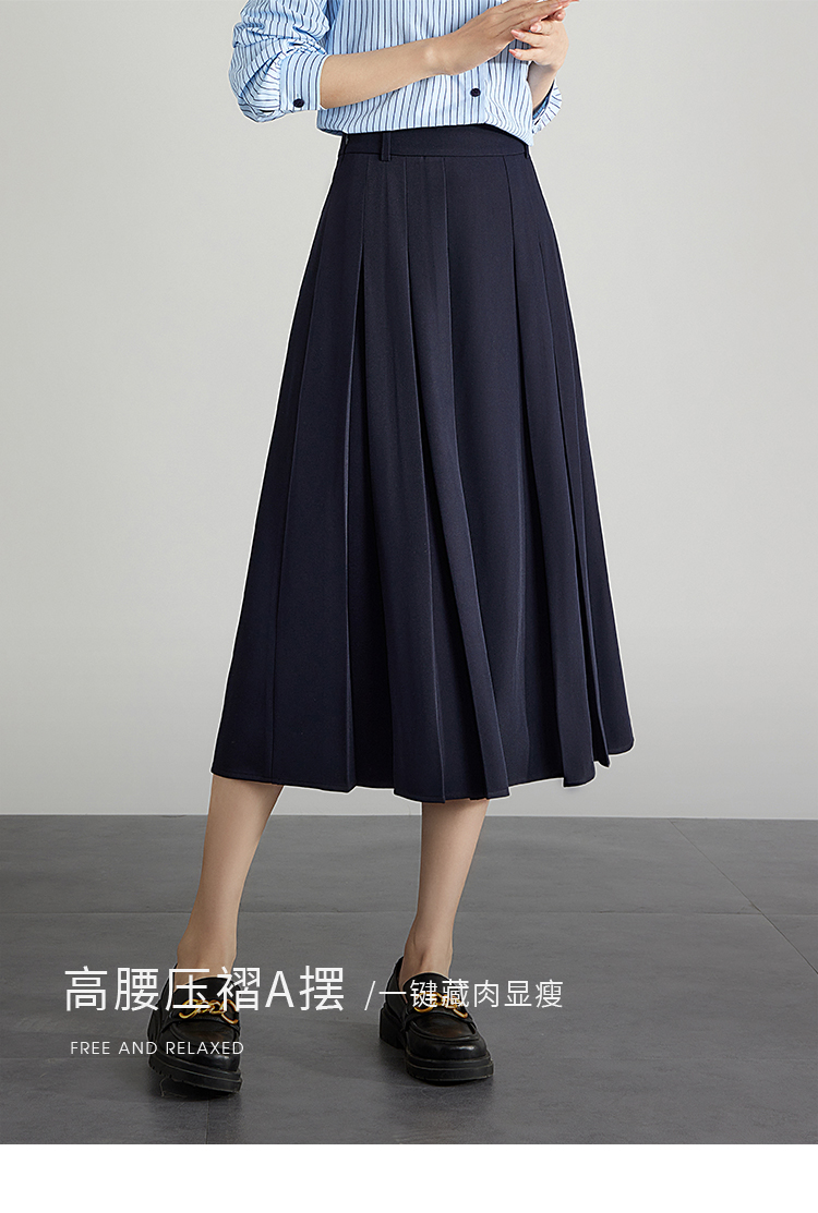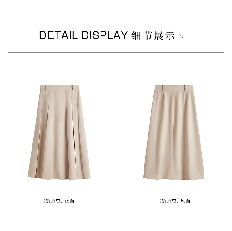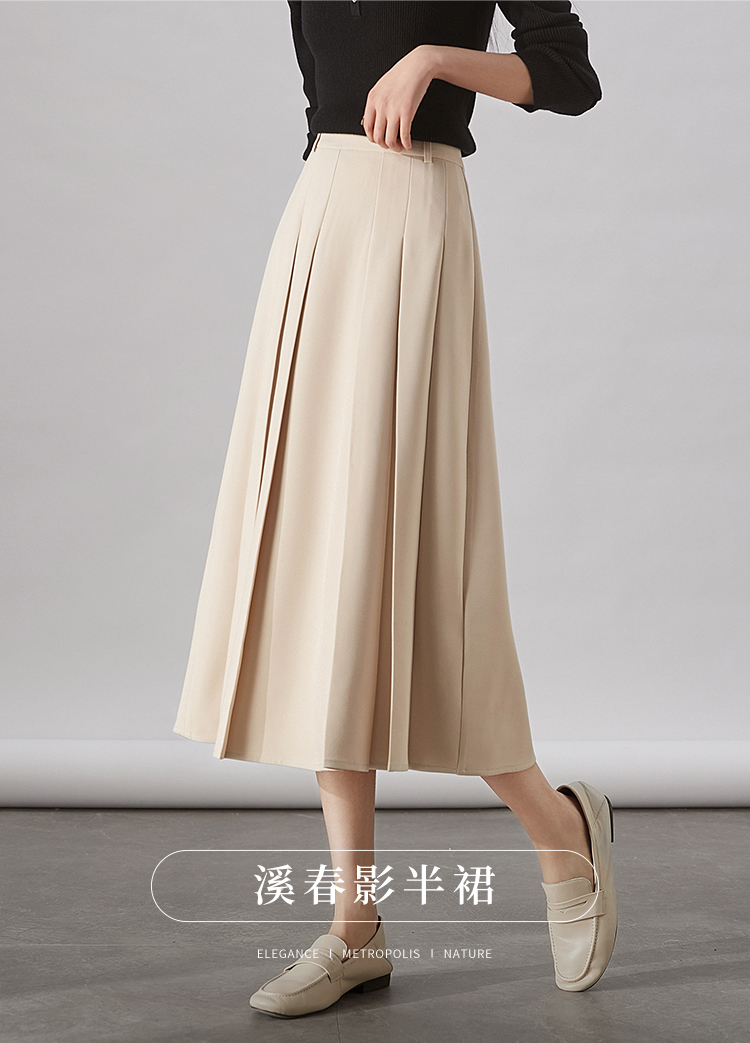 【专属特价】熙世界中长款百褶半身裙2025春新款通勤高腰a字伞裙改良马面裙