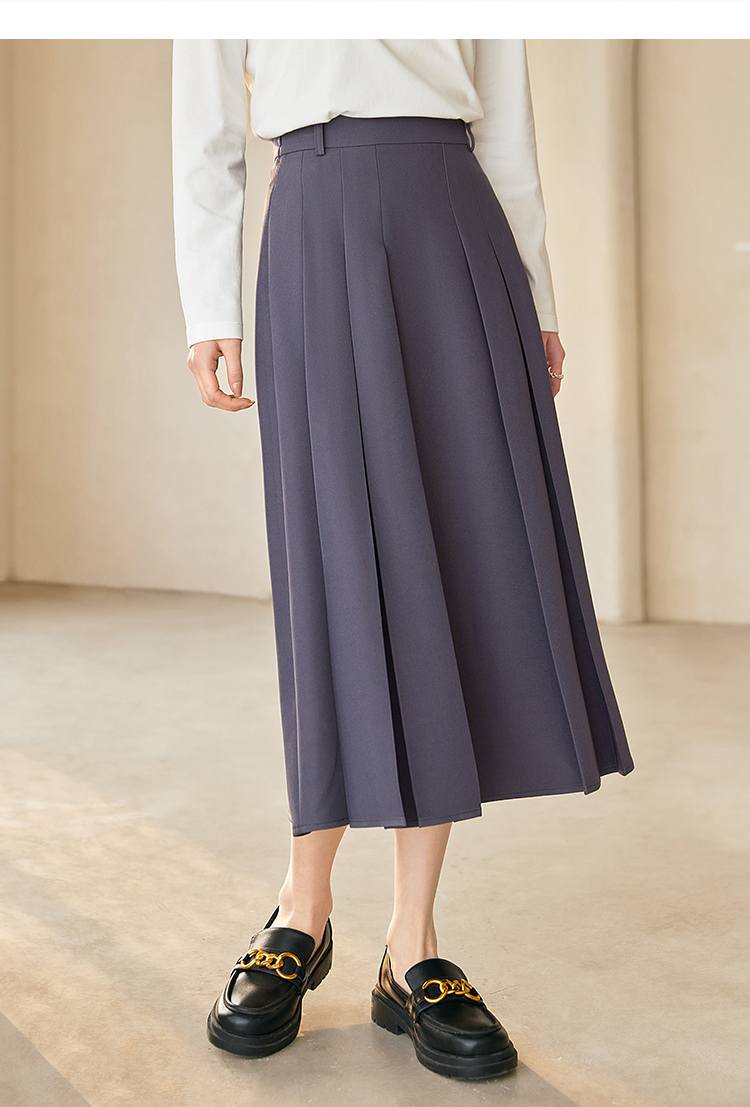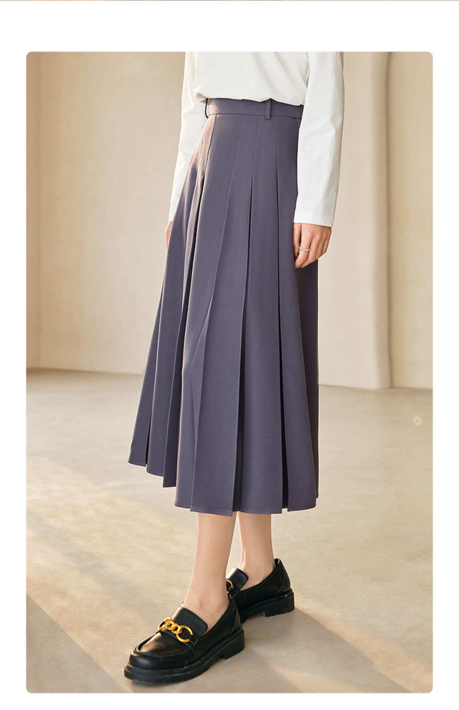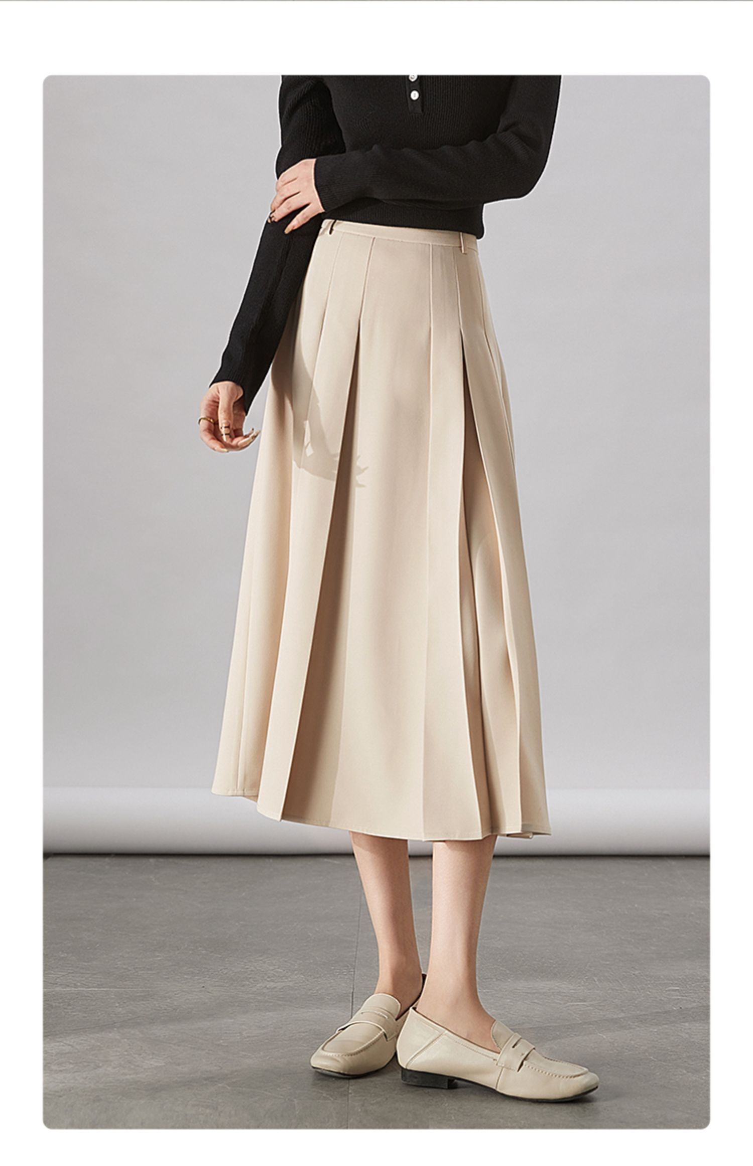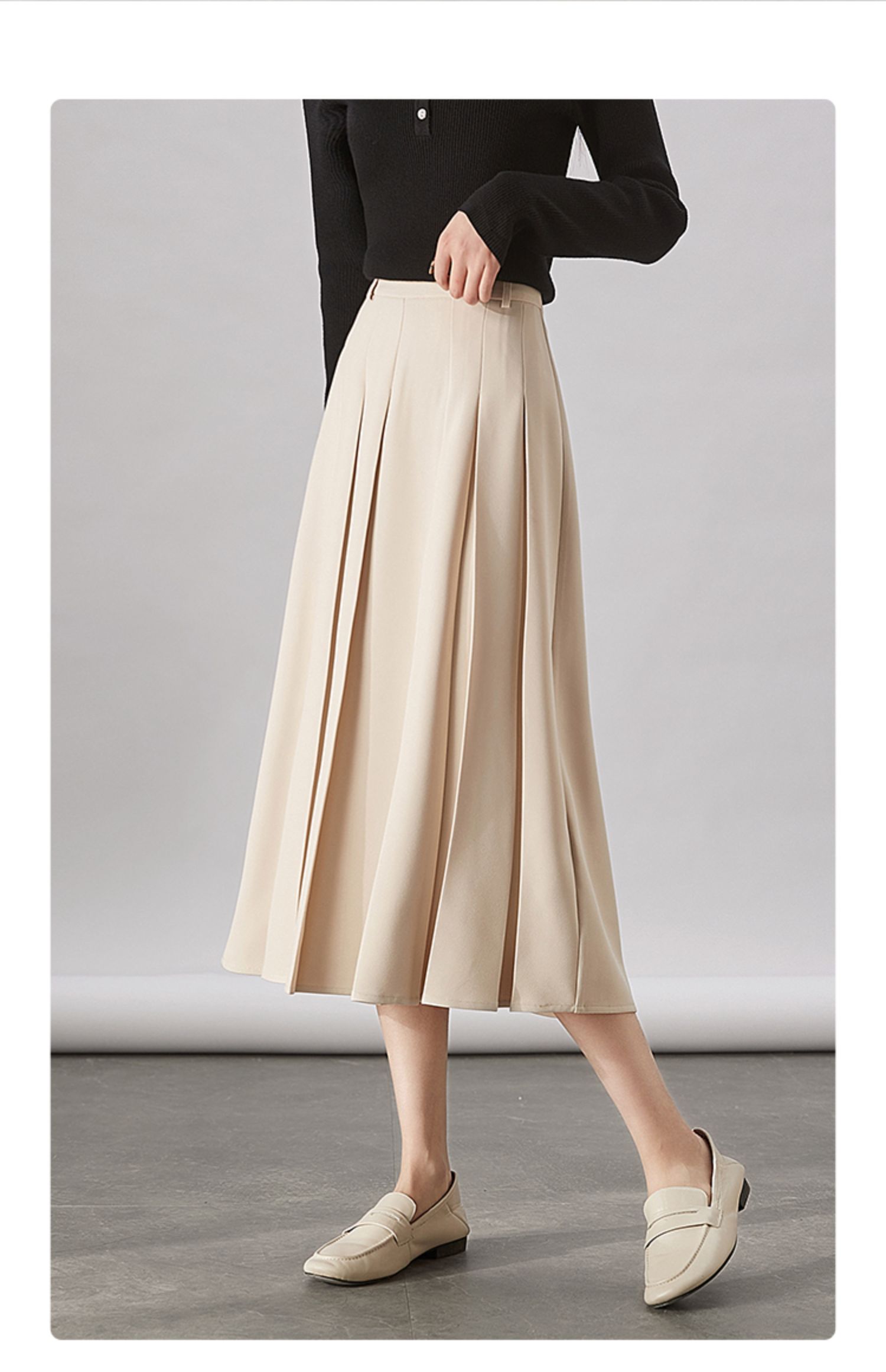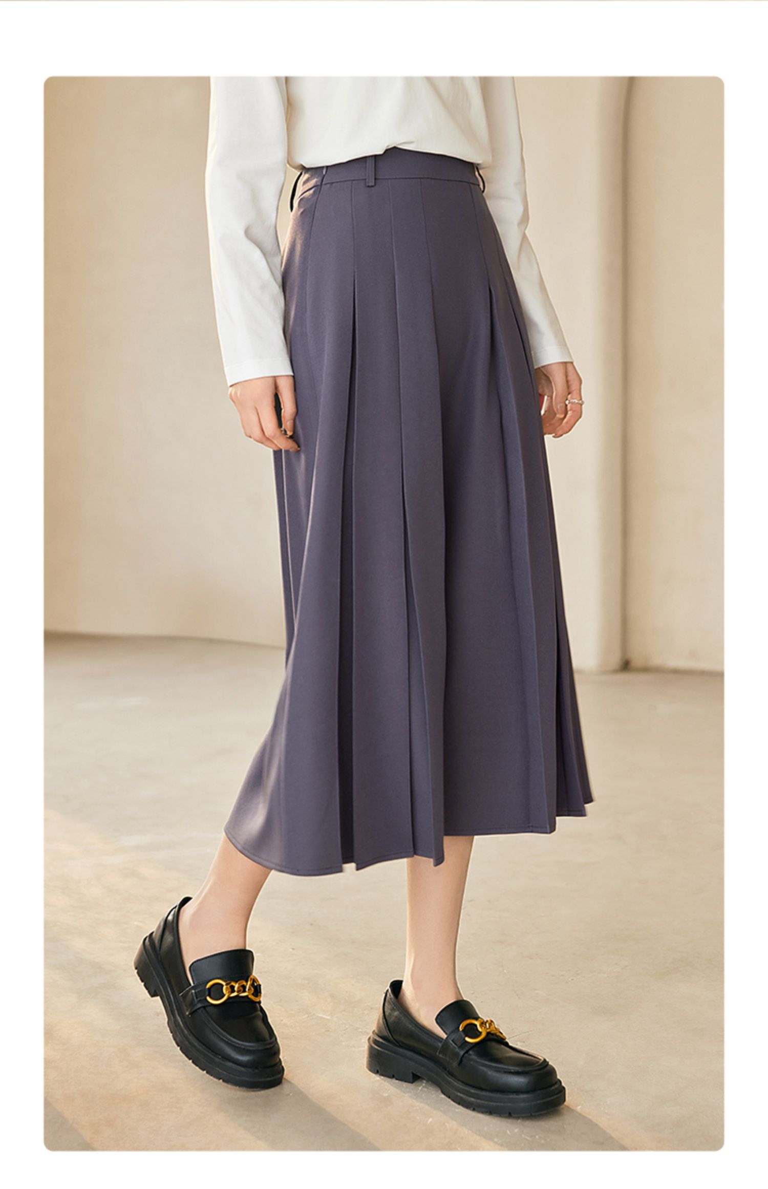 【专属特价】熙世界中长款百褶半身裙2025春新款通勤高腰a字伞裙改良马面裙