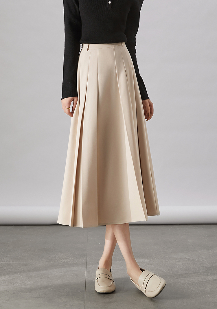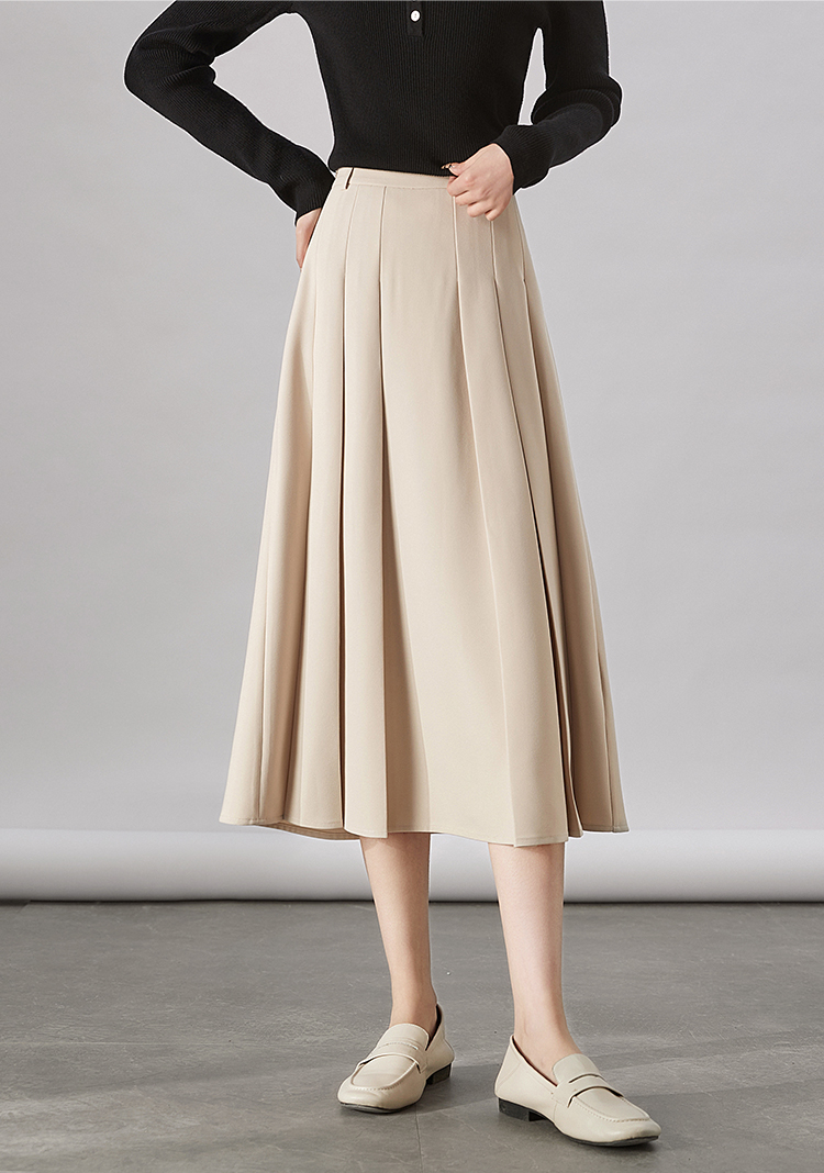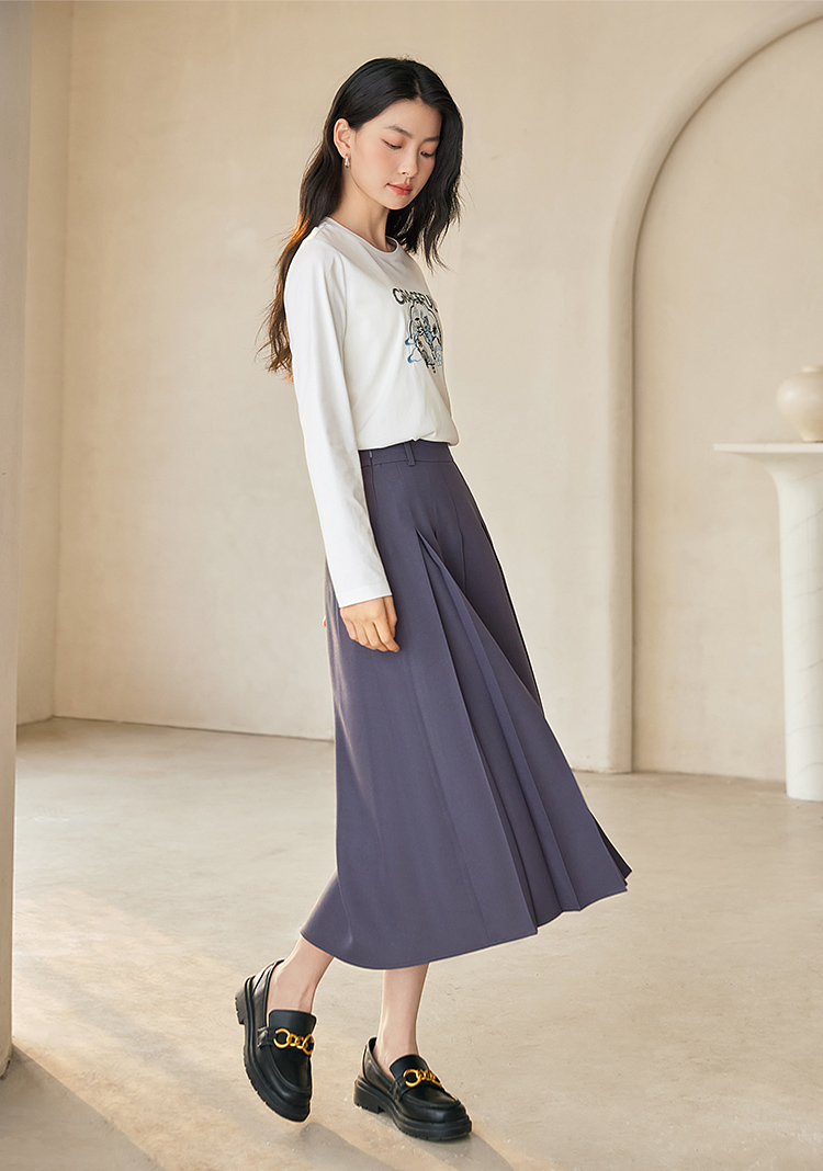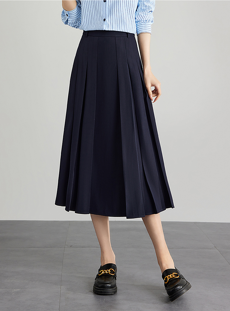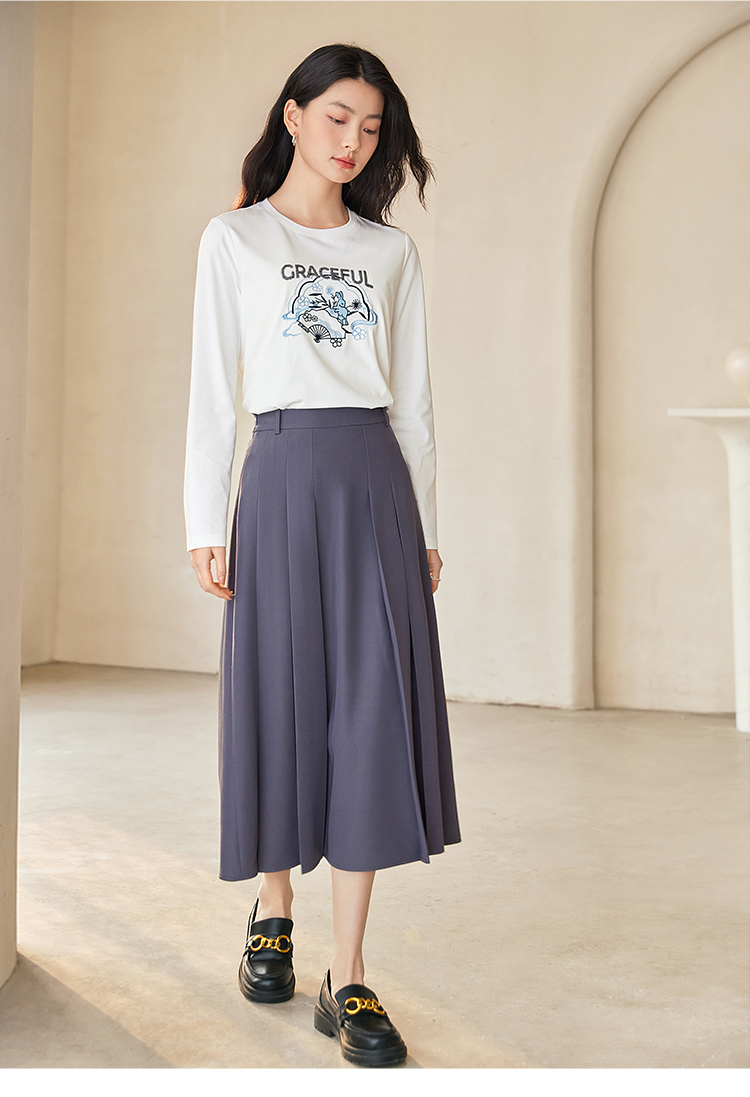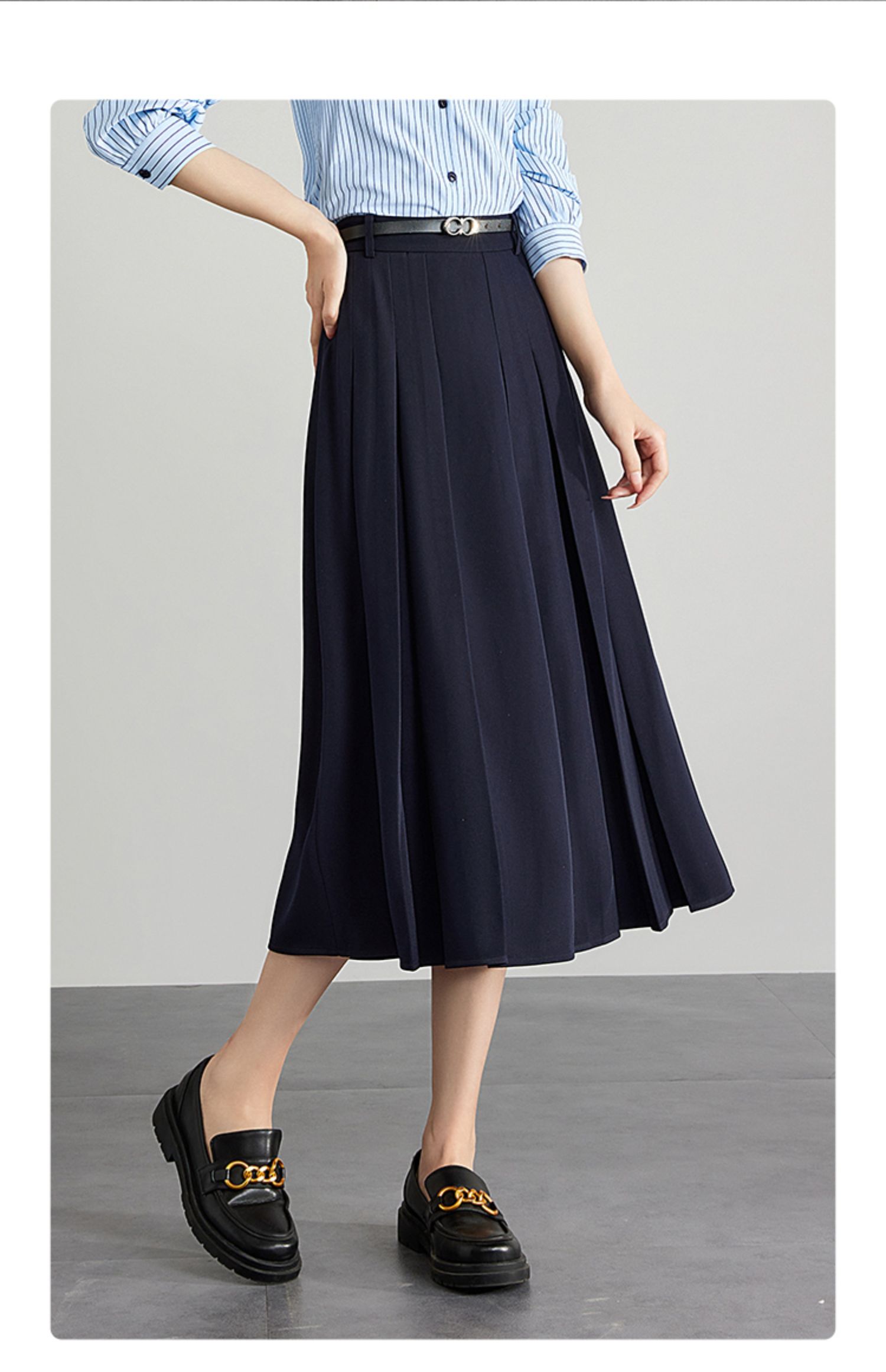 【专属特价】熙世界中长款百褶半身裙2025春新款通勤高腰a字伞裙改良马面裙