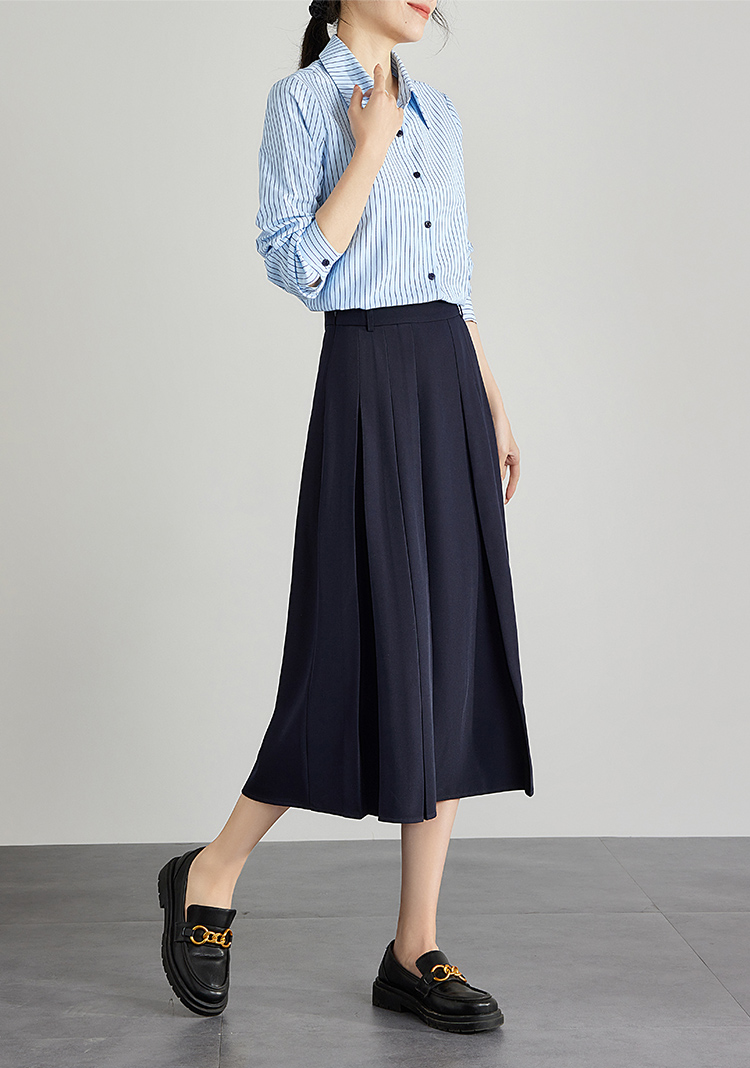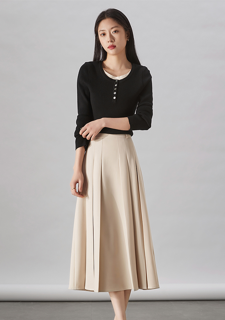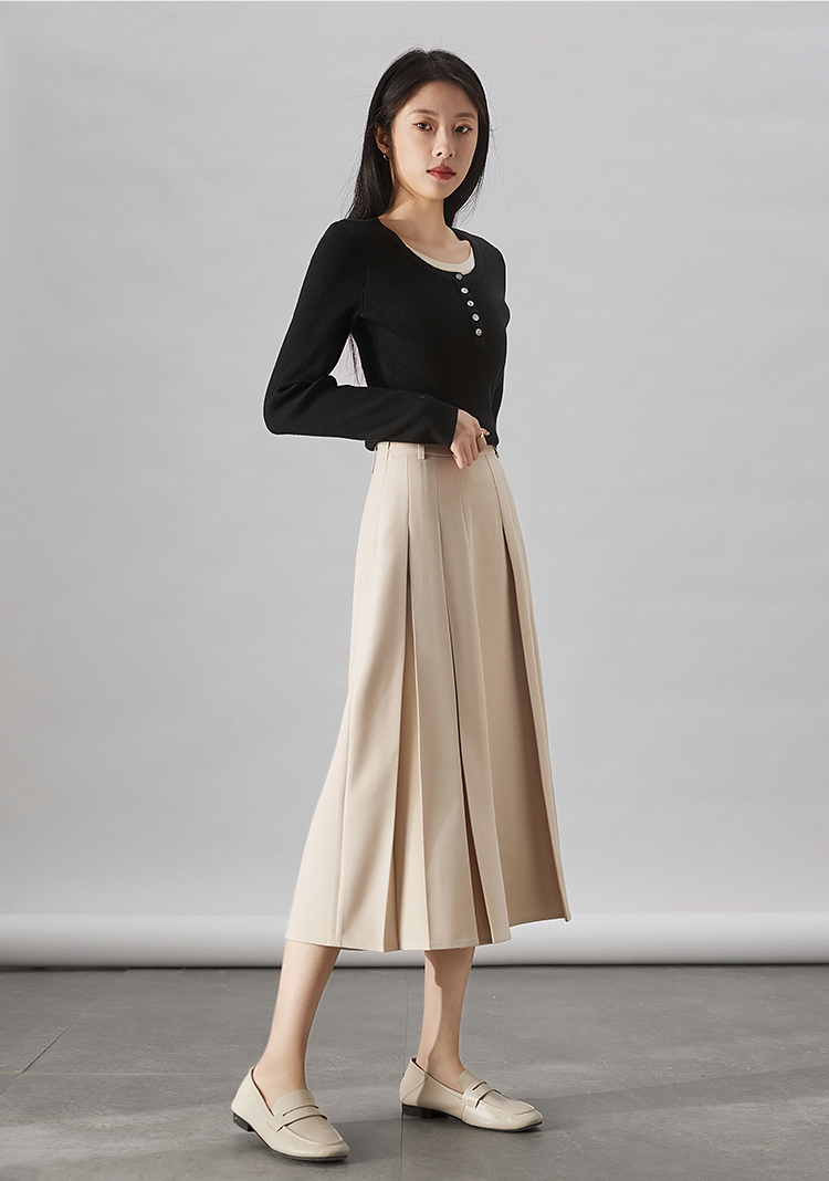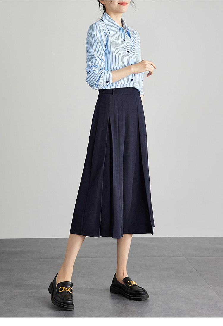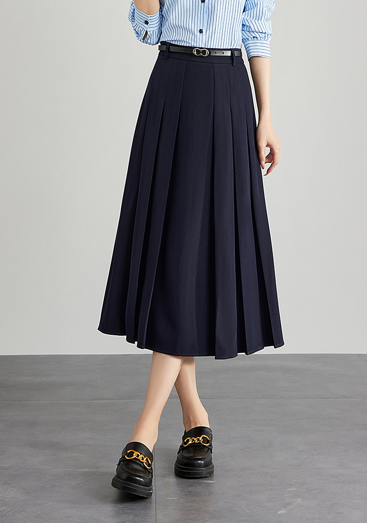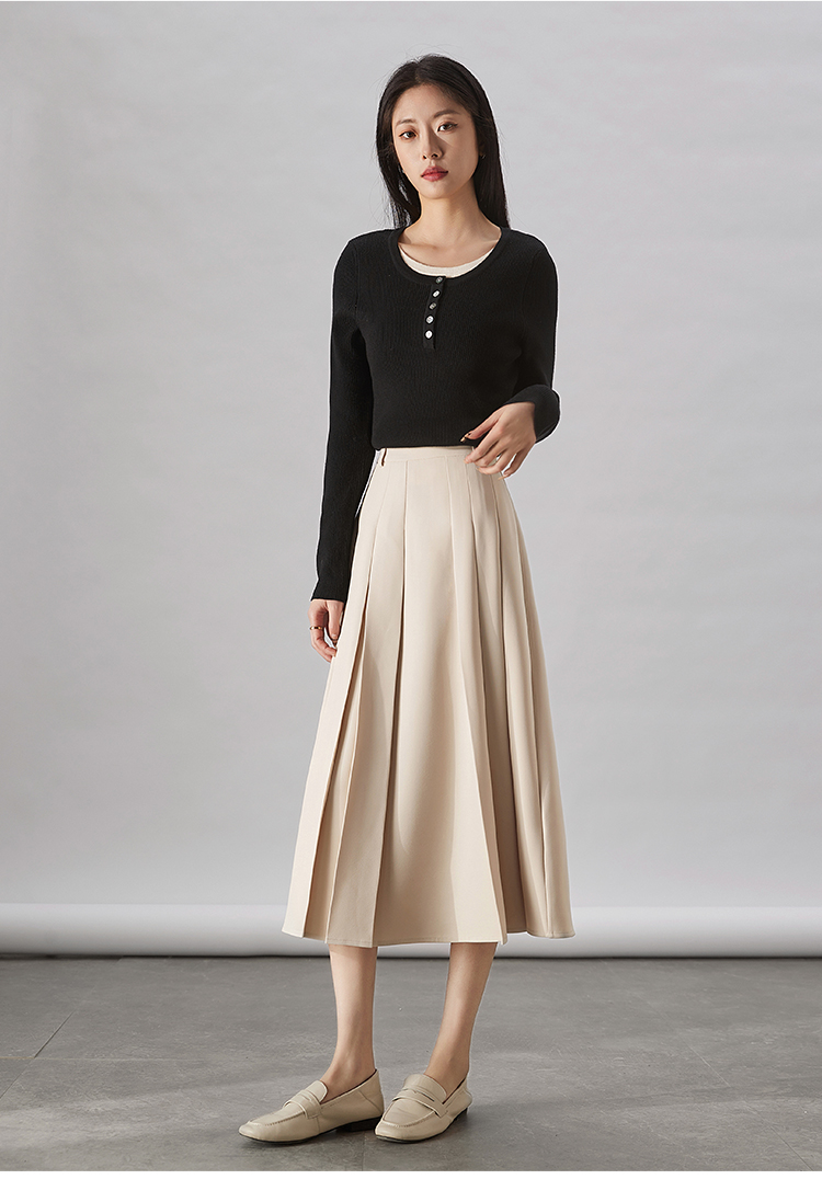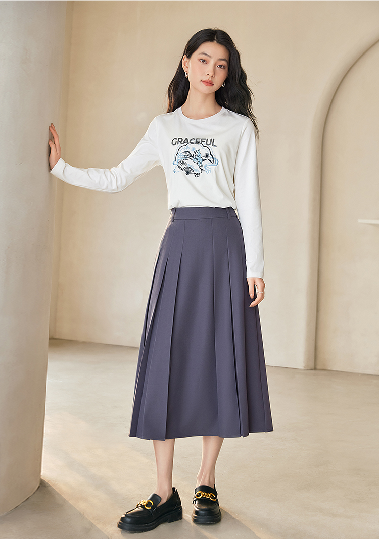 【专属特价】熙世界中长款百褶半身裙2025春新款通勤高腰a字伞裙改良马面裙