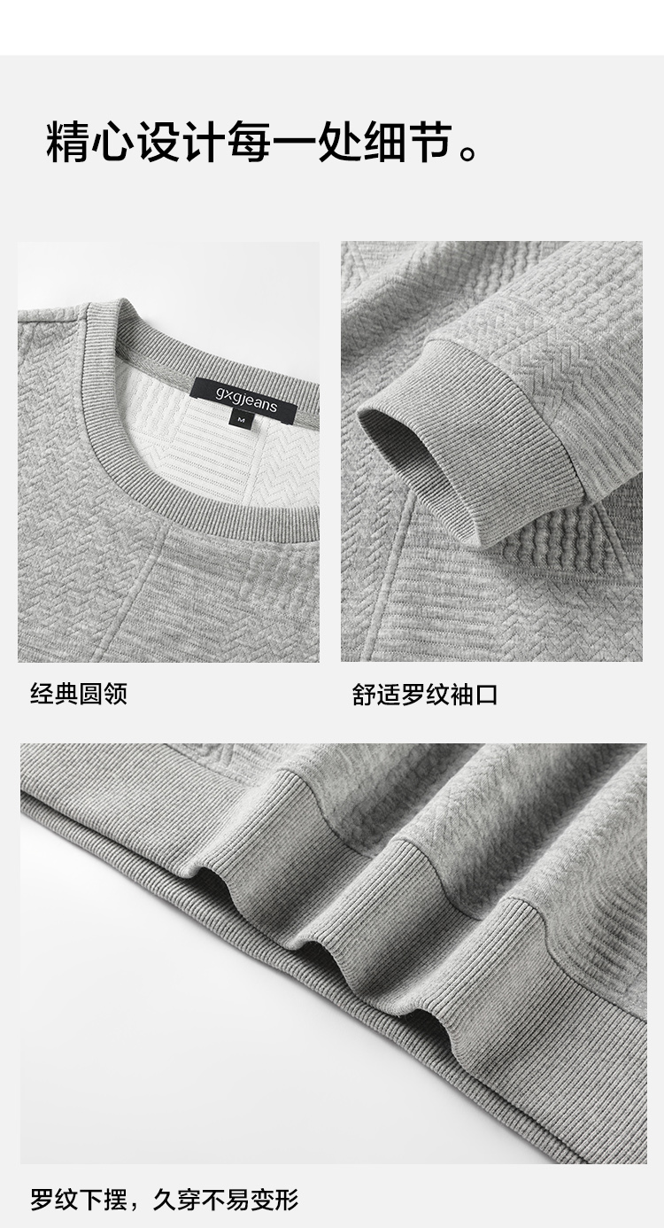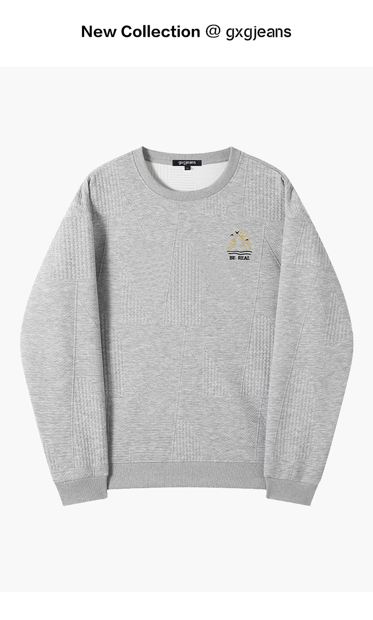 gxgjeans 男装【肌理感面料】男士套头圆领卫衣2025新款绣花舒适百搭男上衣K&C