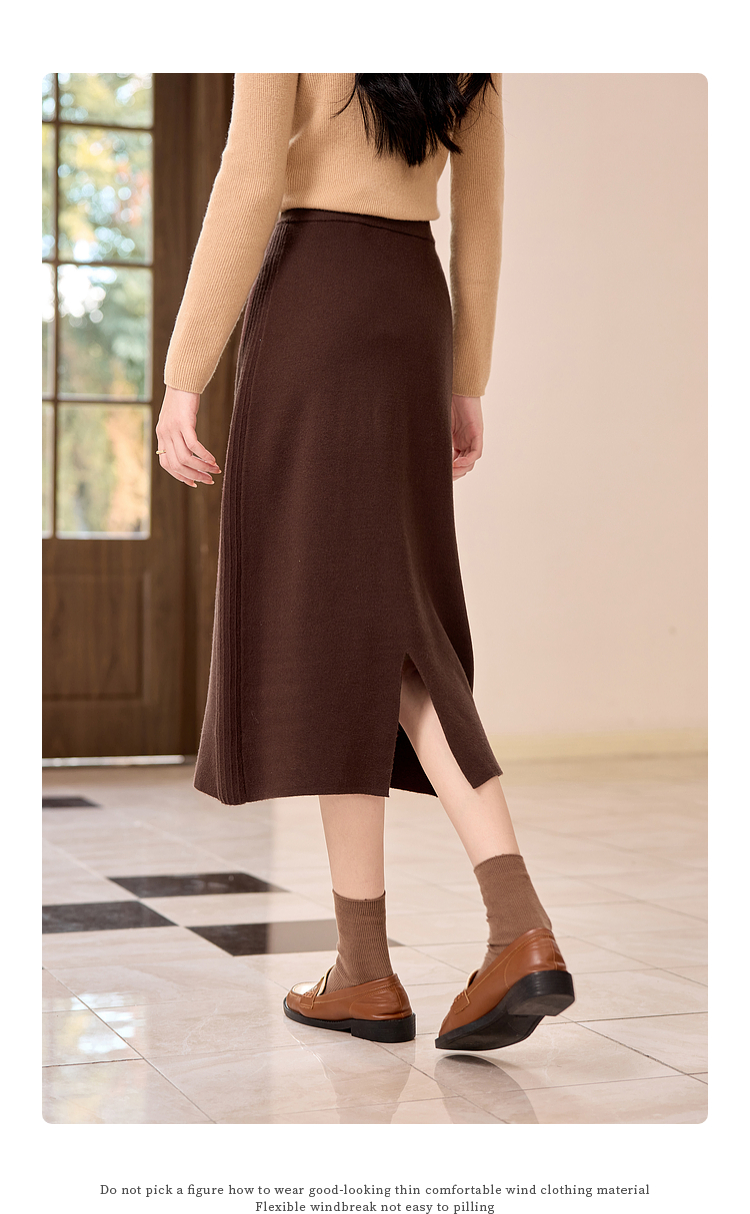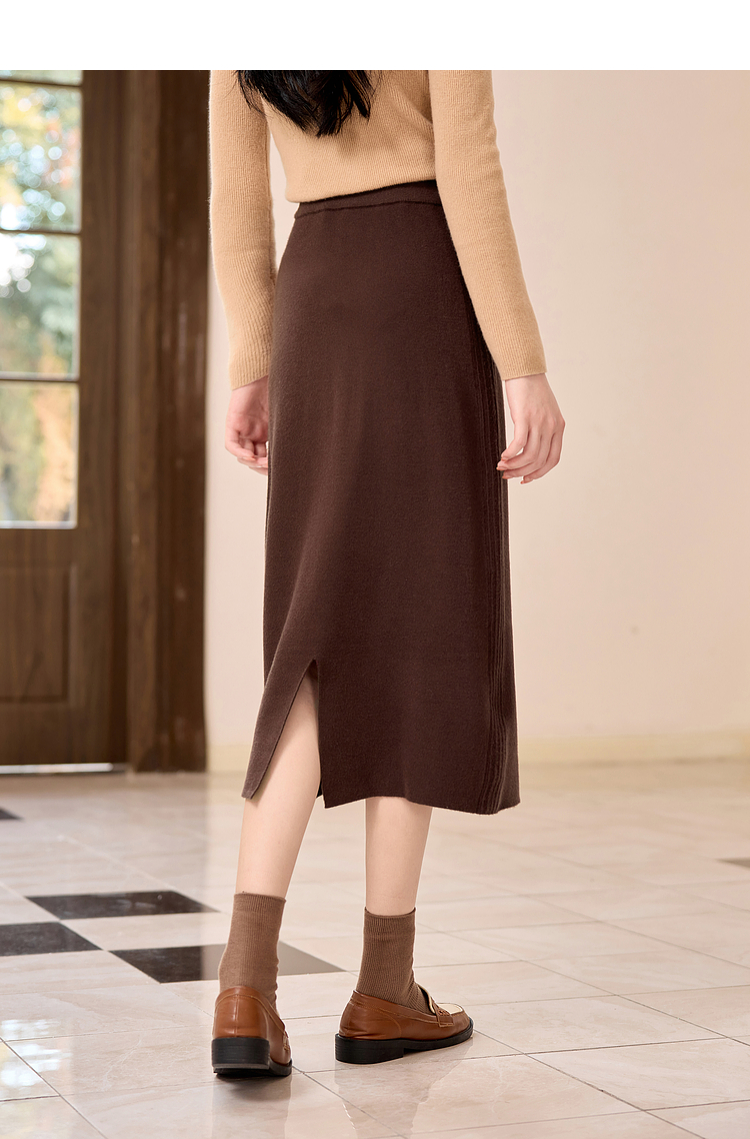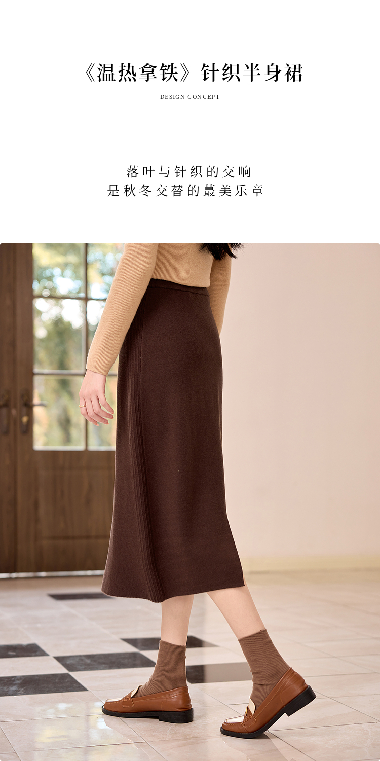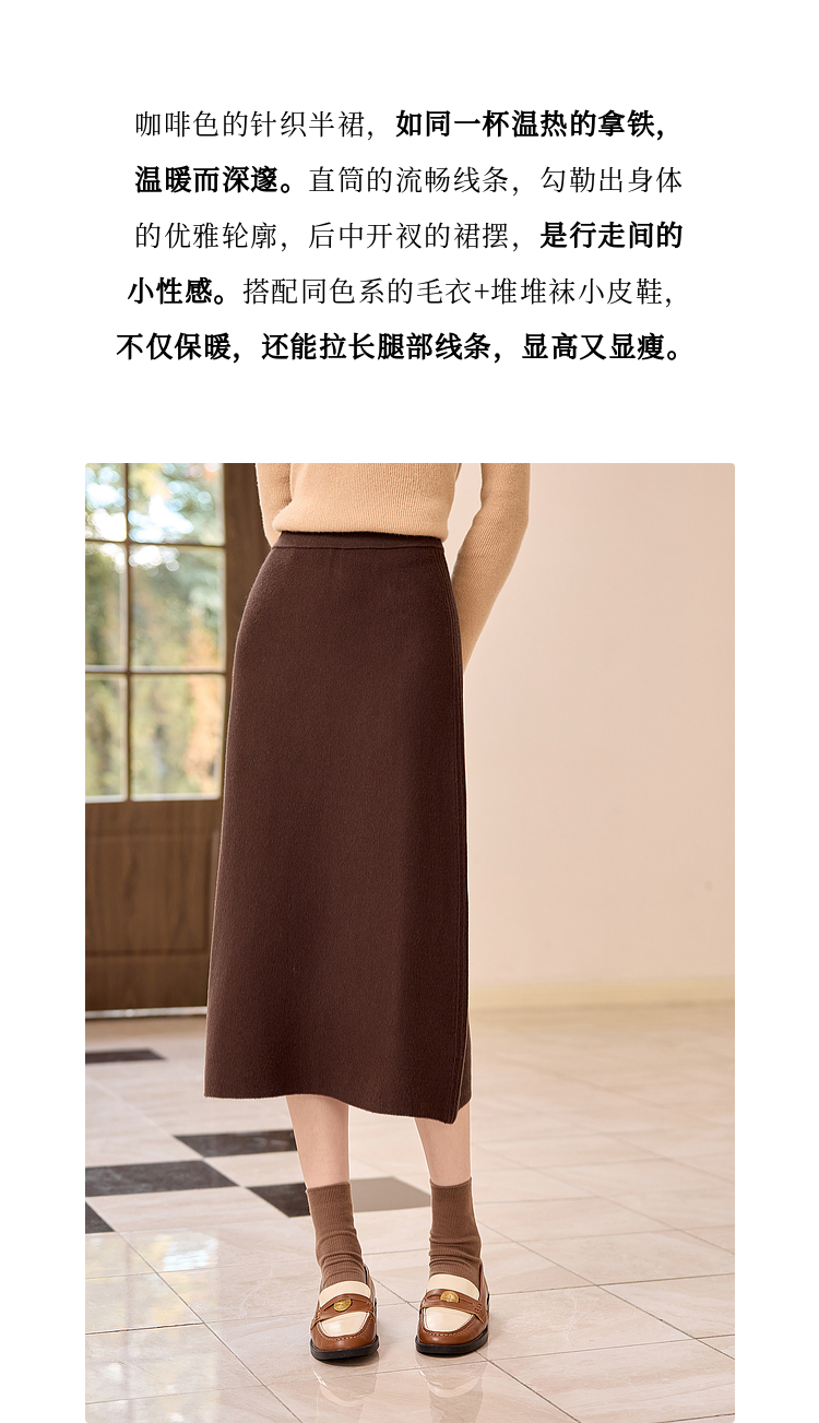 【年终特卖】熙世界咖啡色针织半身裙2025秋冬新款通勤百搭后开叉中长直筒裙