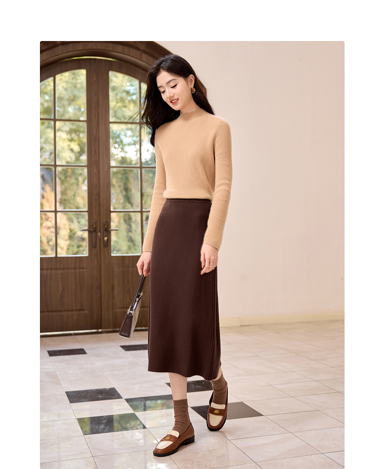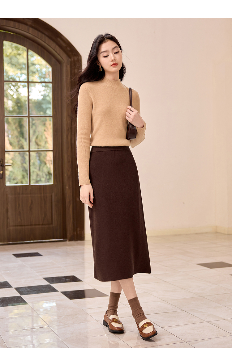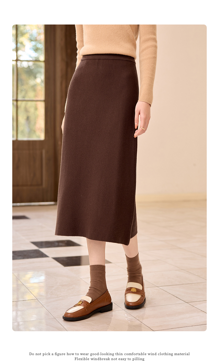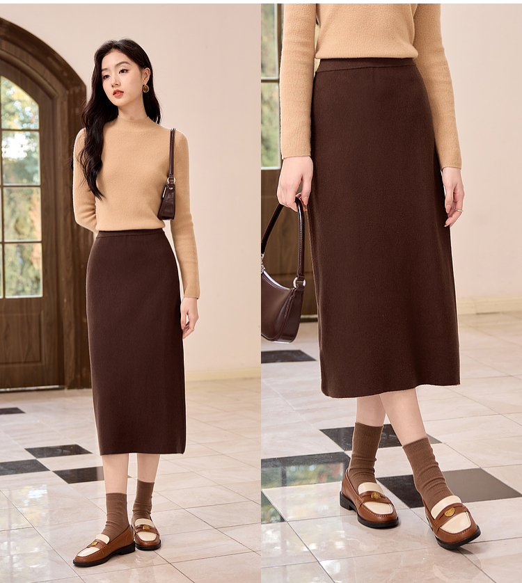 【年终特卖】熙世界咖啡色针织半身裙2025秋冬新款通勤百搭后开叉中长直筒裙