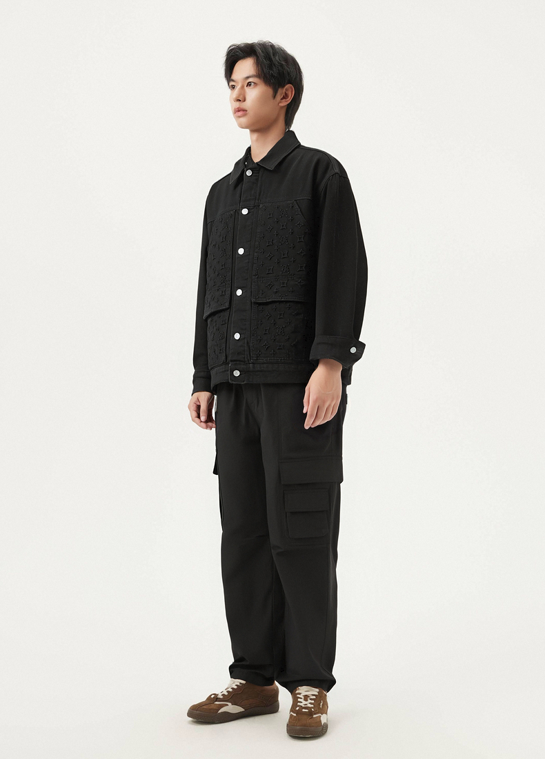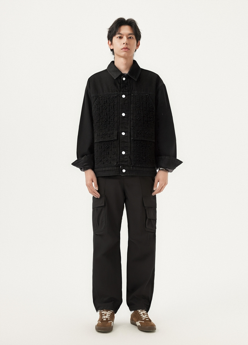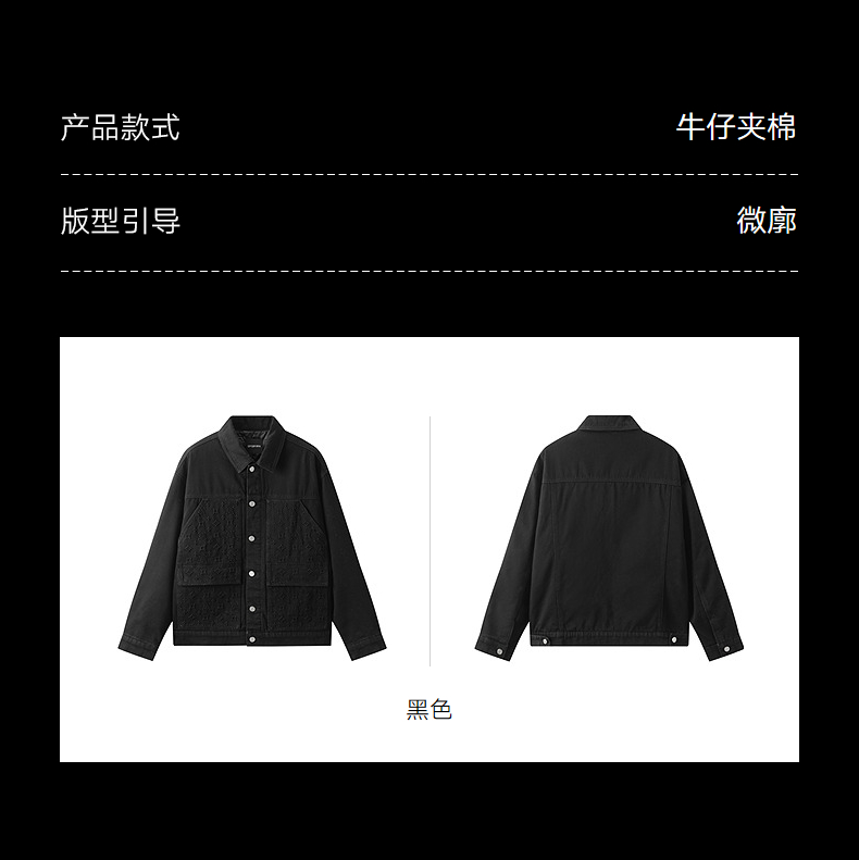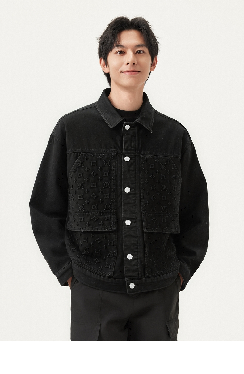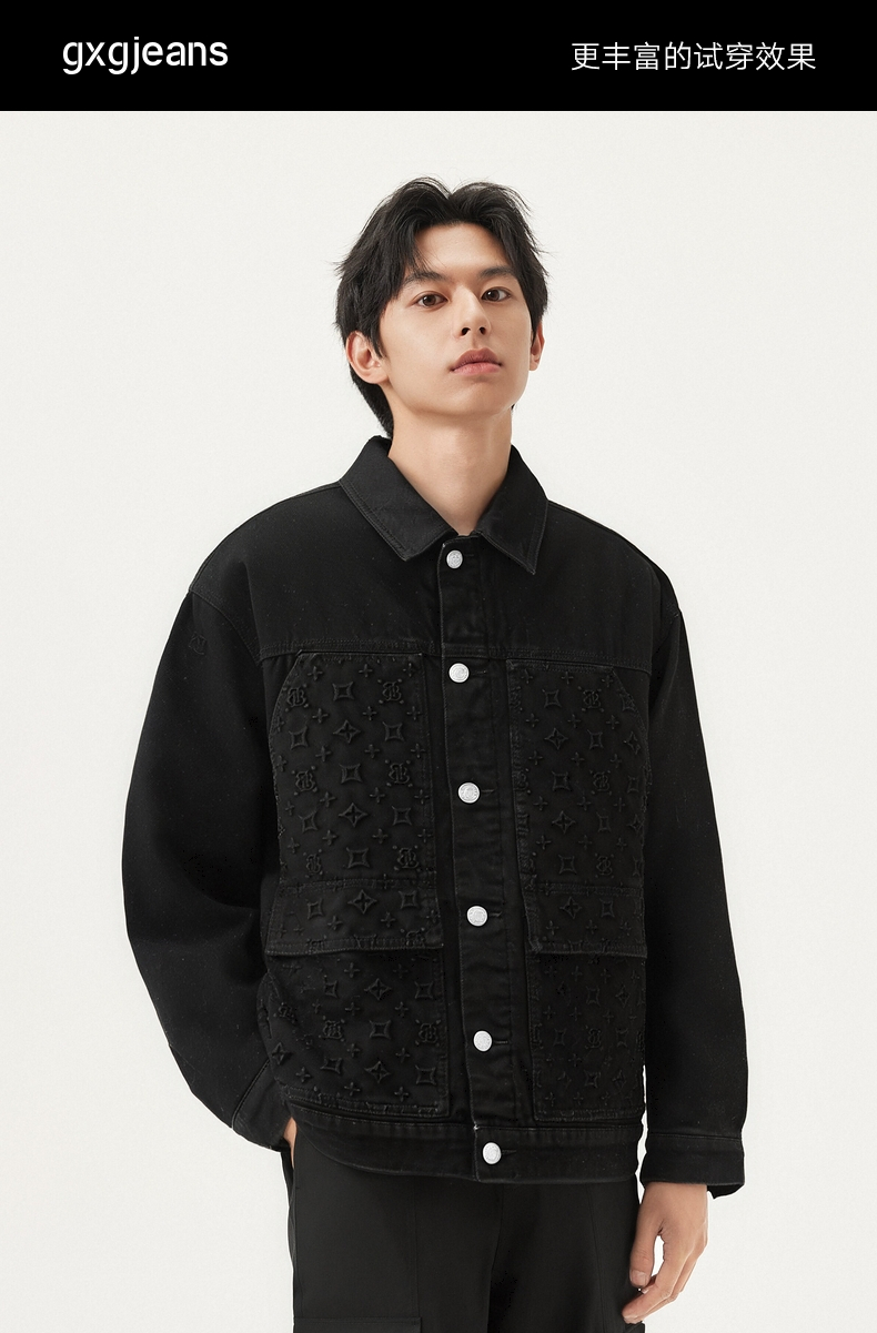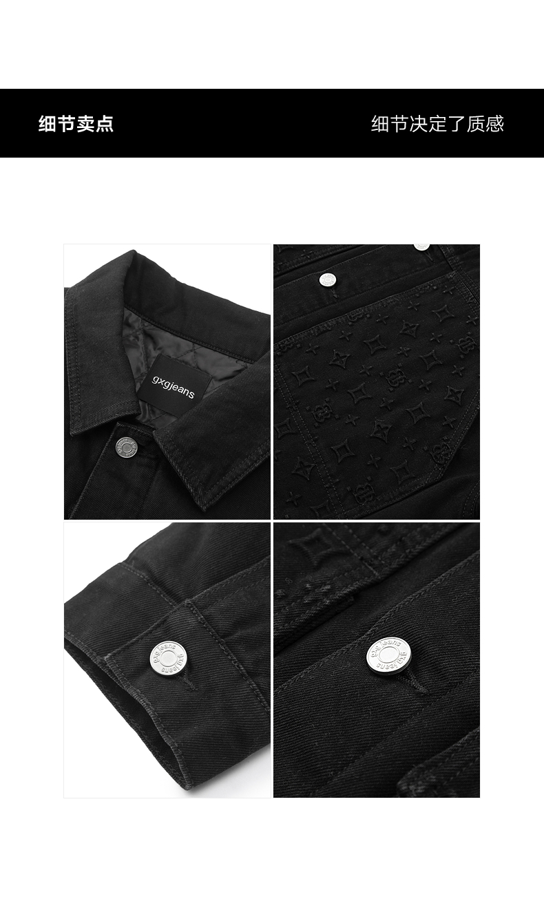 gxg.jeans男装 黑色夹棉复古口袋老花牛仔夹克外套男 25春热卖