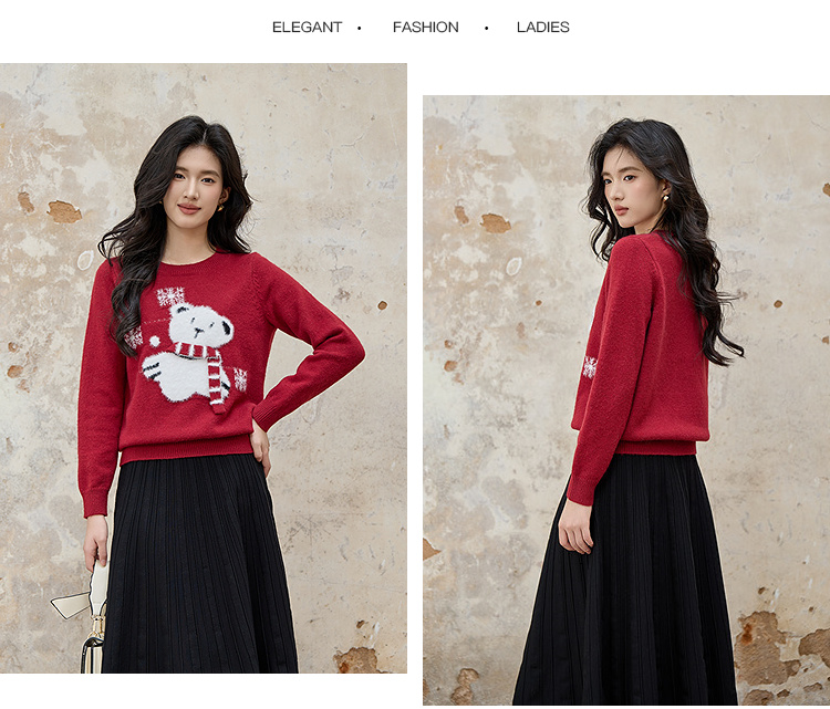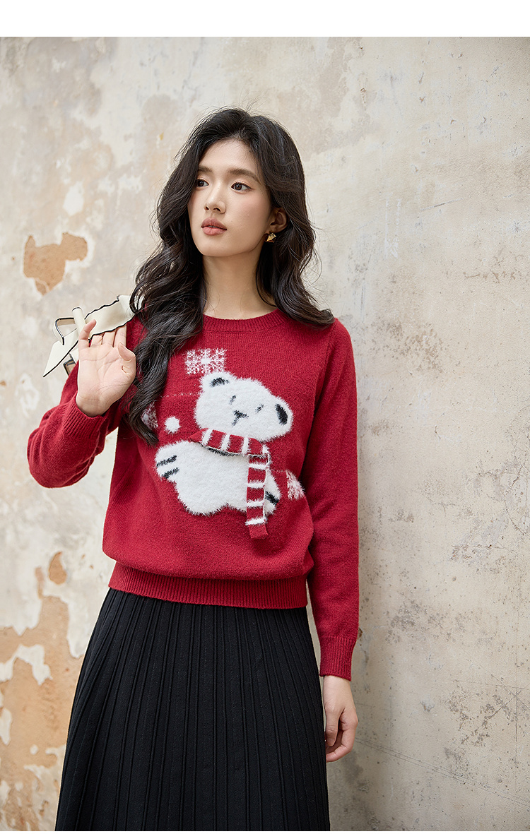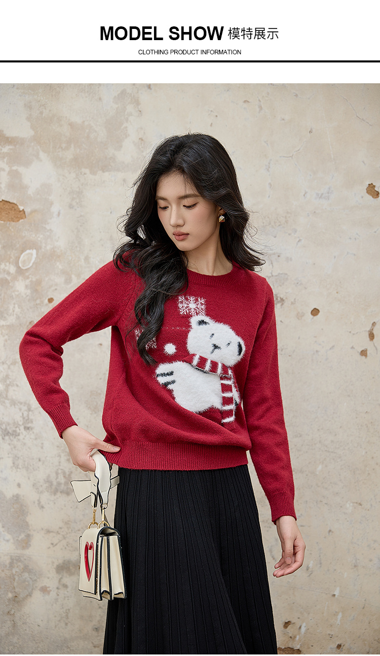 奢姿大码女装2025秋季时尚减龄圆领针织衫胖妹妹可爱卡通小熊毛衣9553694229