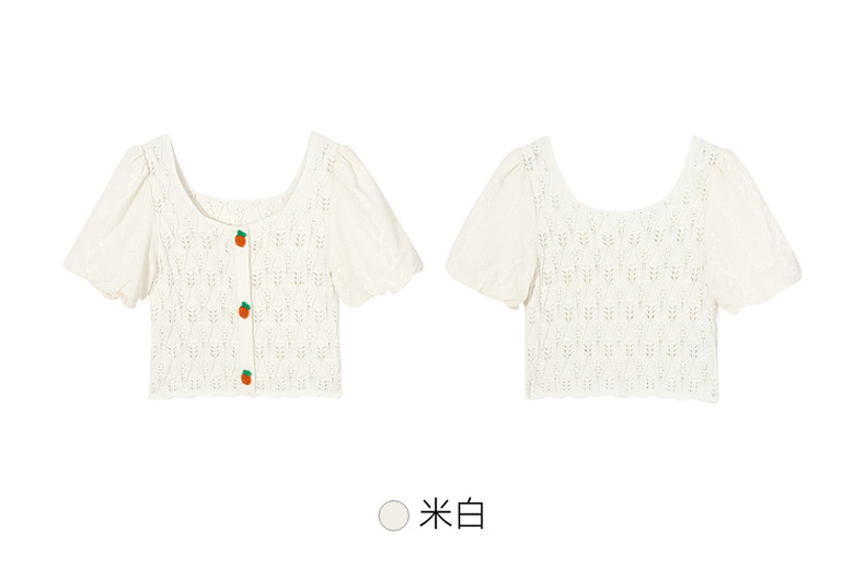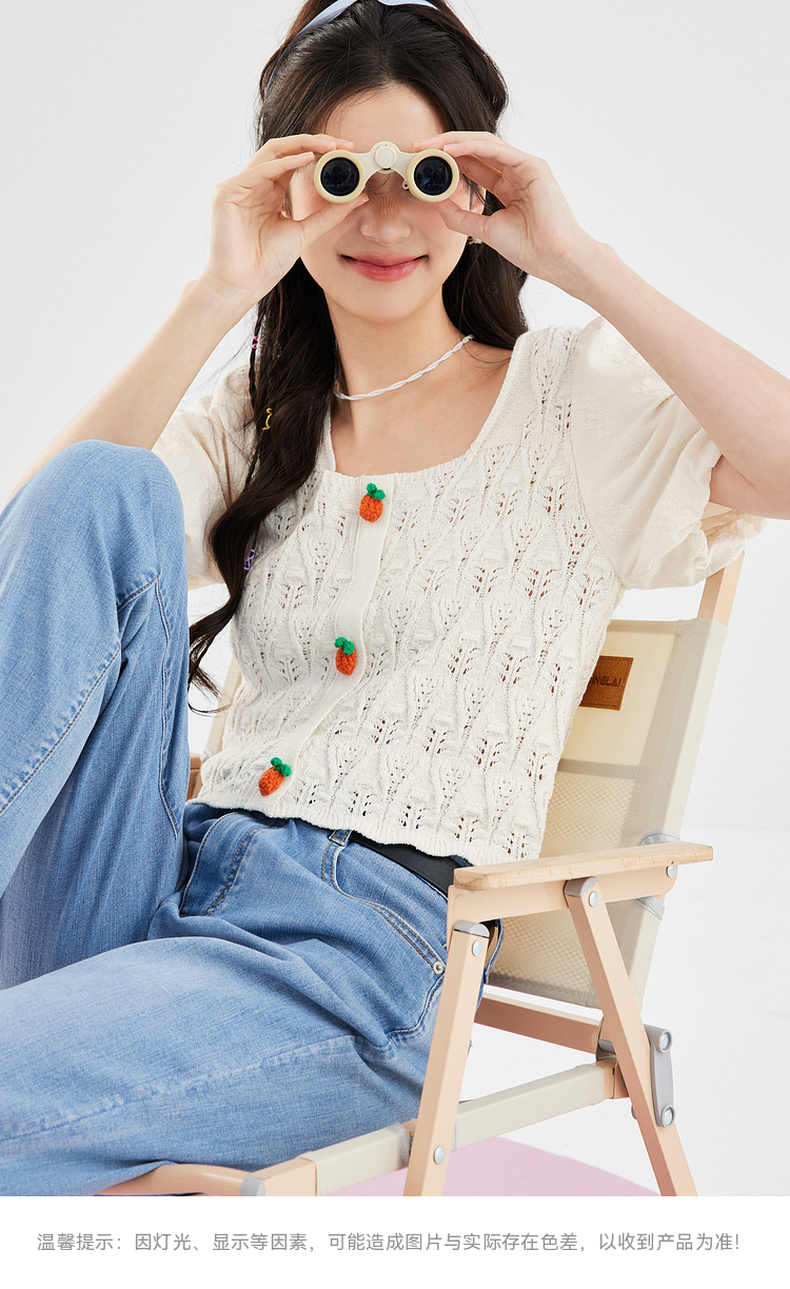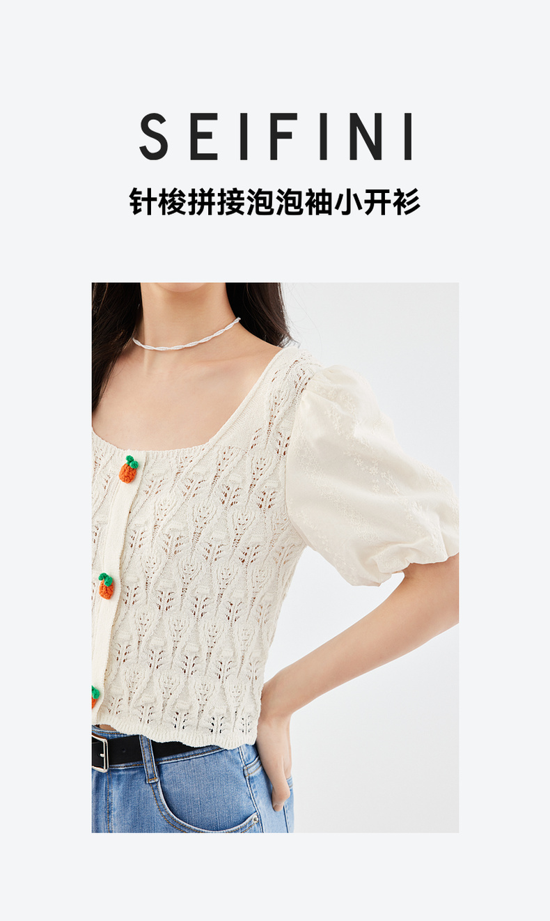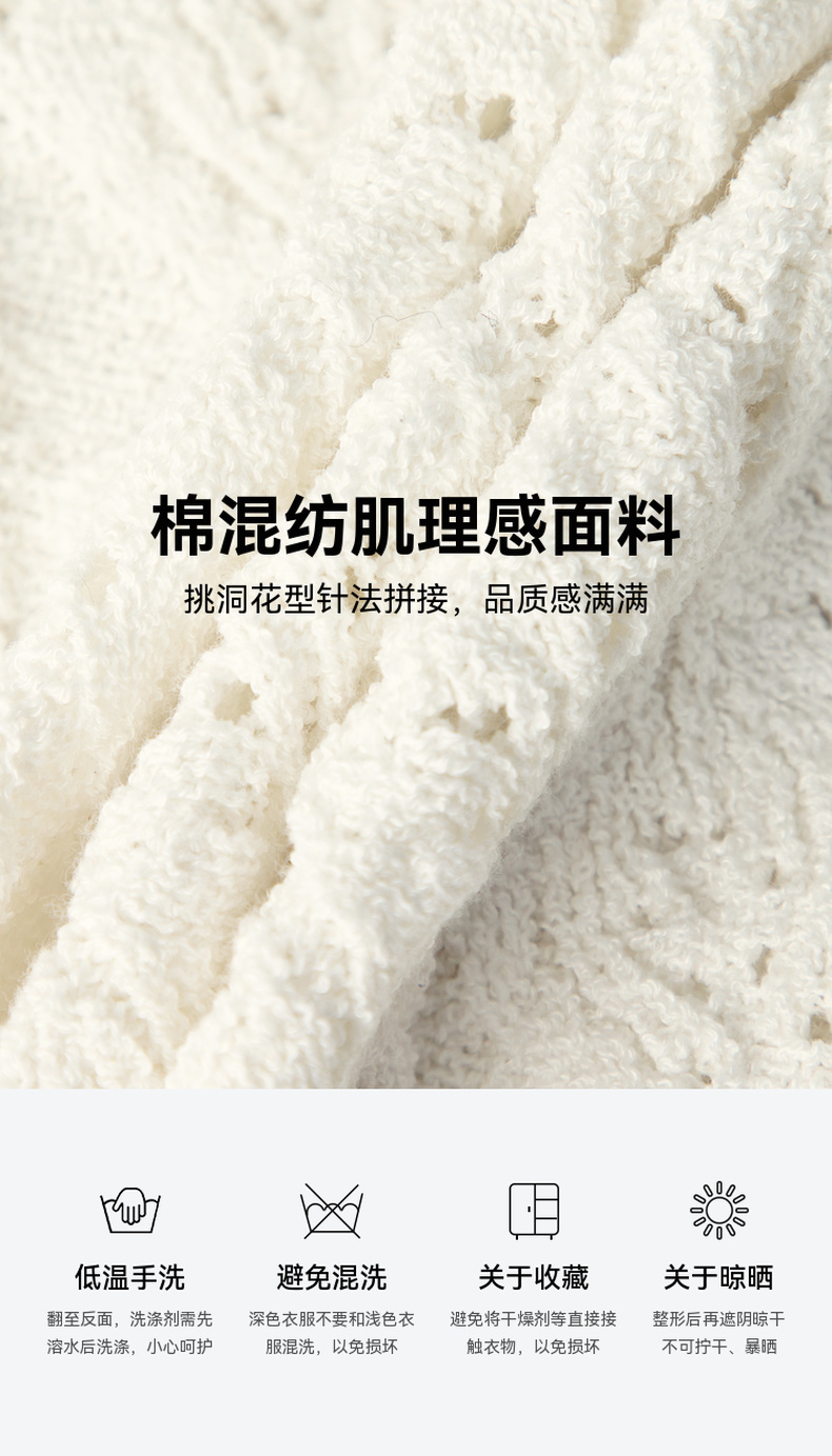 【严选】诗凡黎白色方领镂空针梭拼针织衫2024夏新款设计感流行上衣女SF4330771